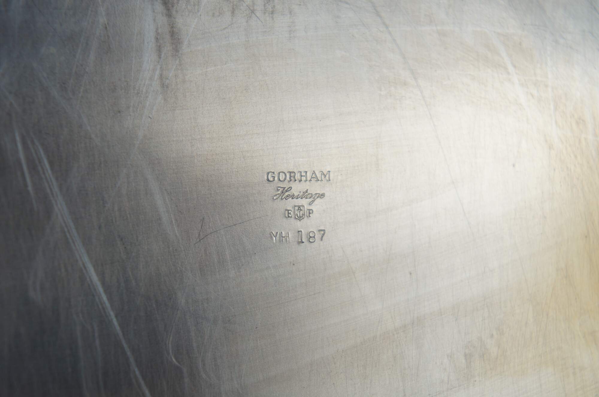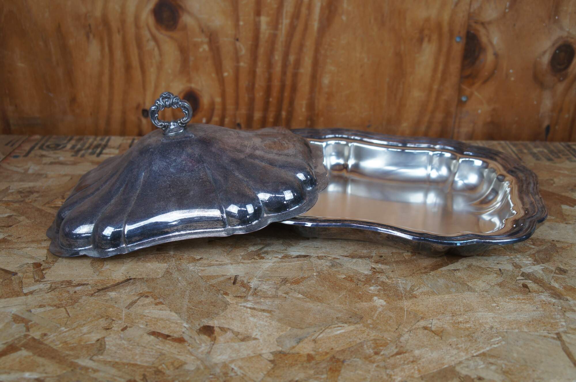 Vintage Gorham scalloped silver plate Heritage YH 187 covered serving entree or casserole dish.