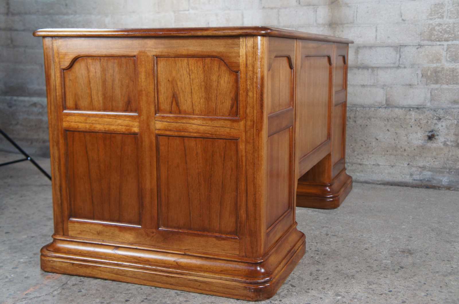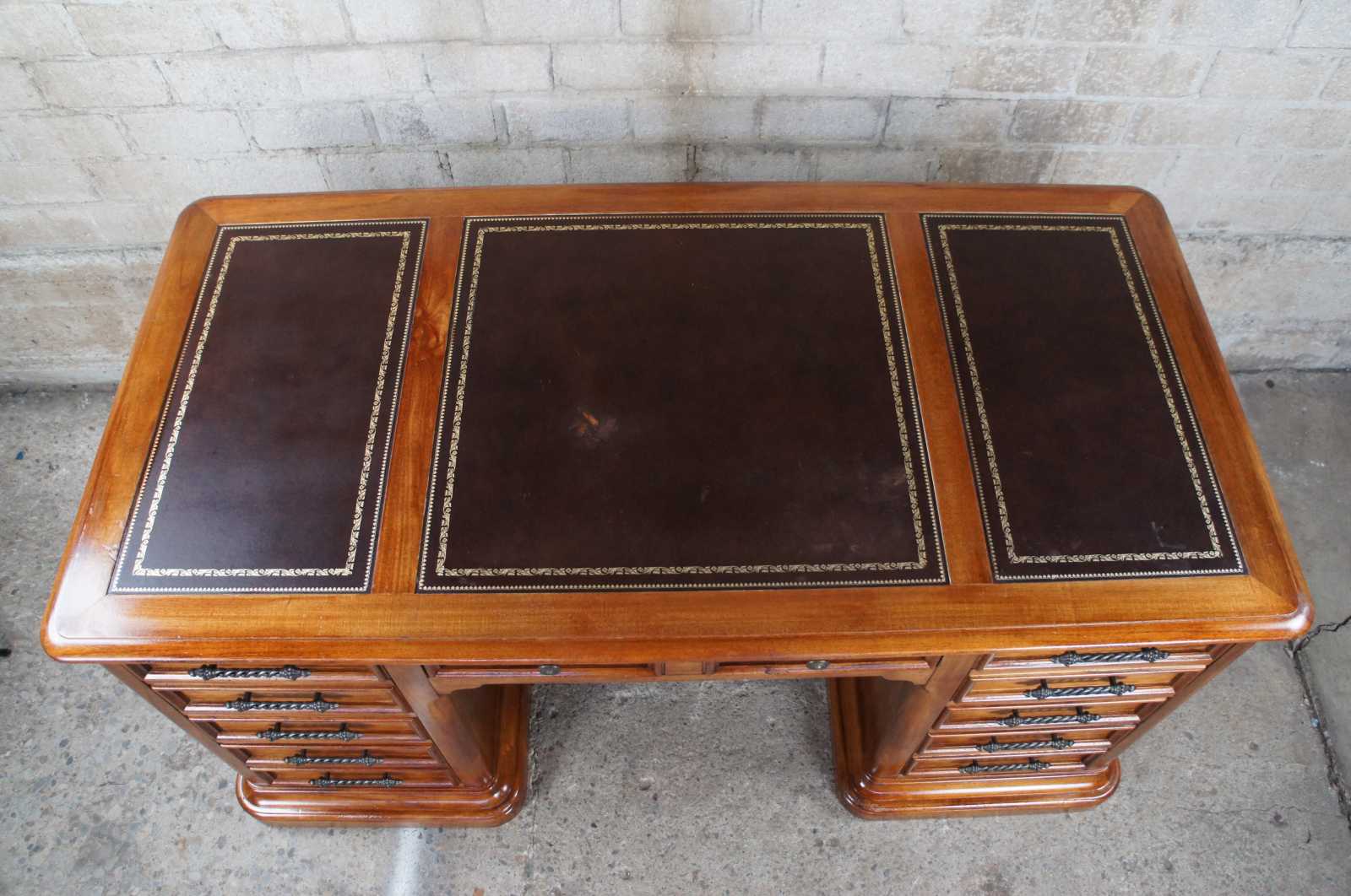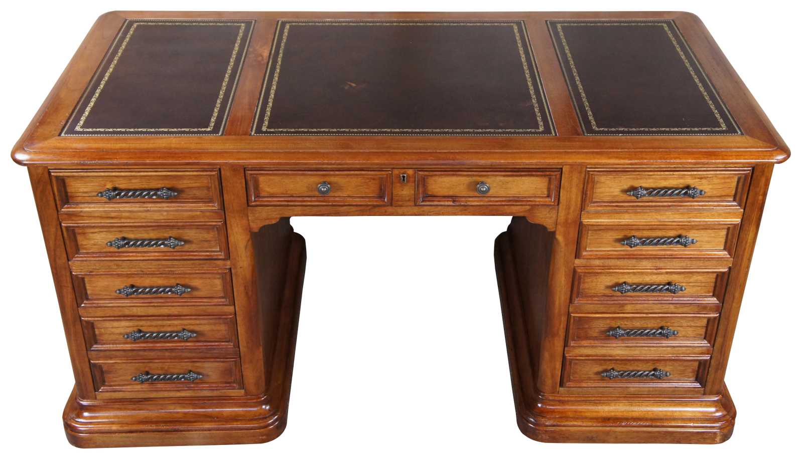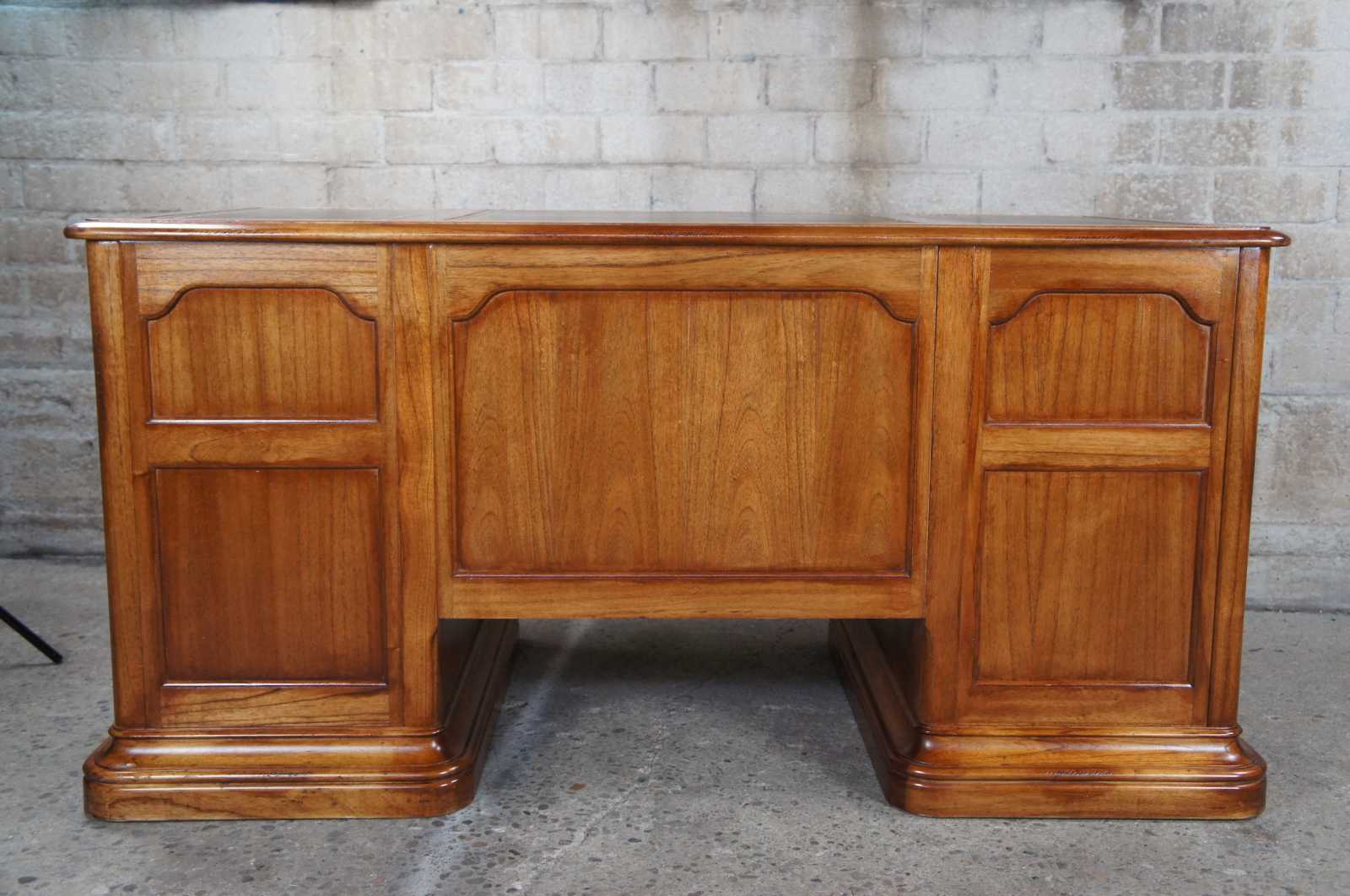 Traditional Vintage Hekman Oak Tooled Leather Top Executive Office Desk 60"