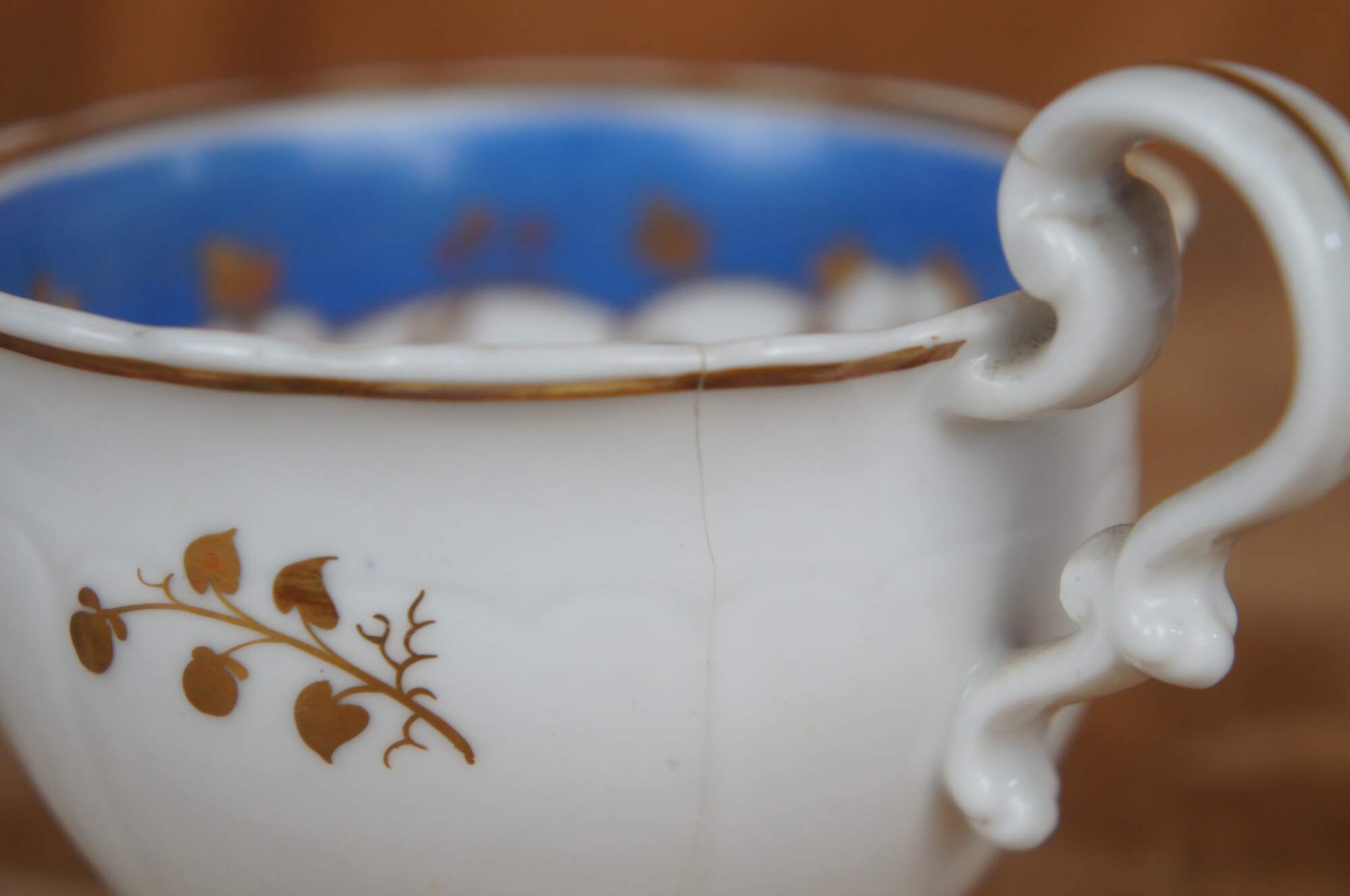 2 Antique 19th Century English Samuel Alcock Blue Gold Floral Cups & Saucers
