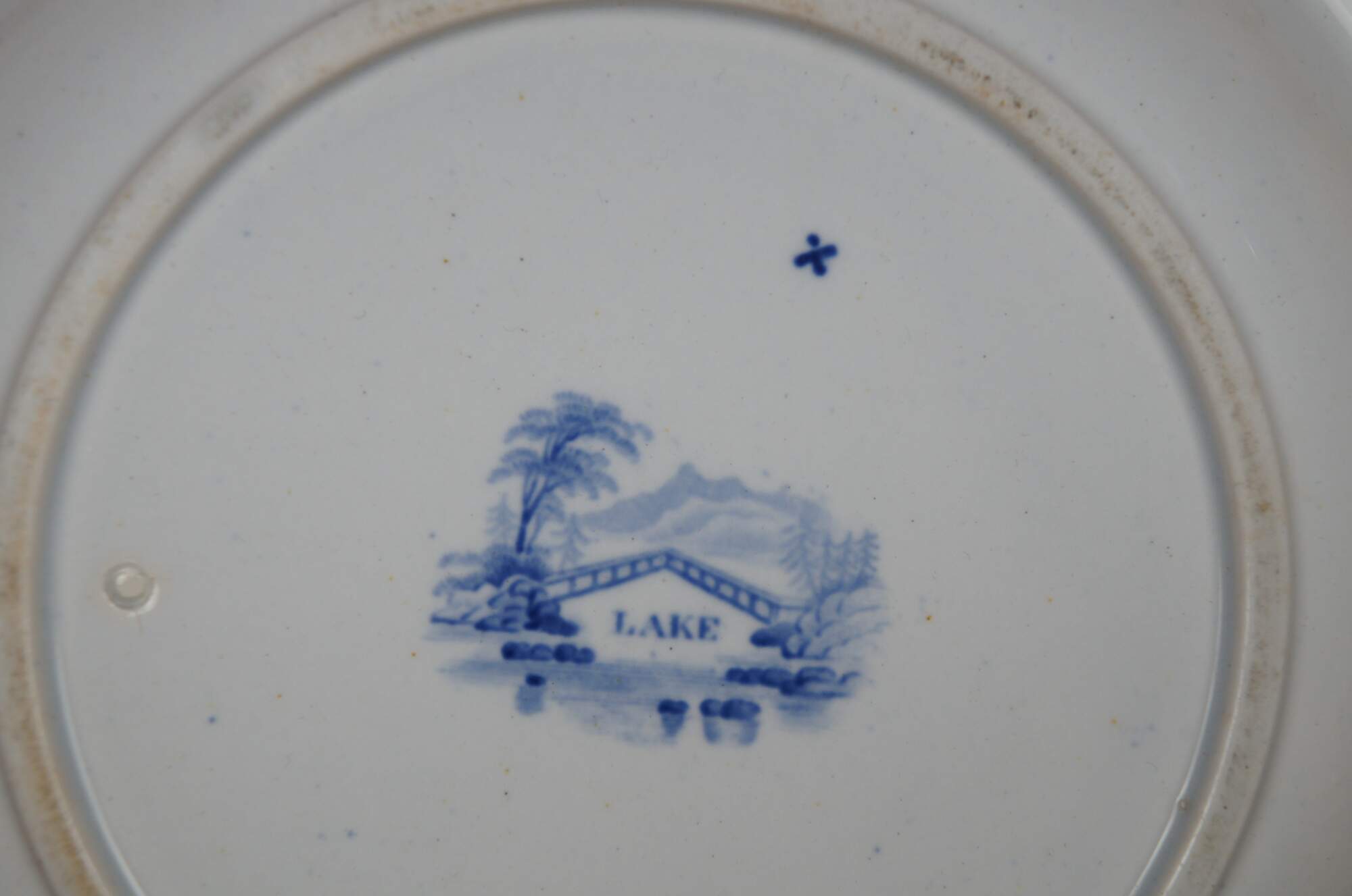 Antique 19th century English transferware shallow bowl or soup plate featuring a nautical theme with boats / fishermen / Tipi's on the lake.