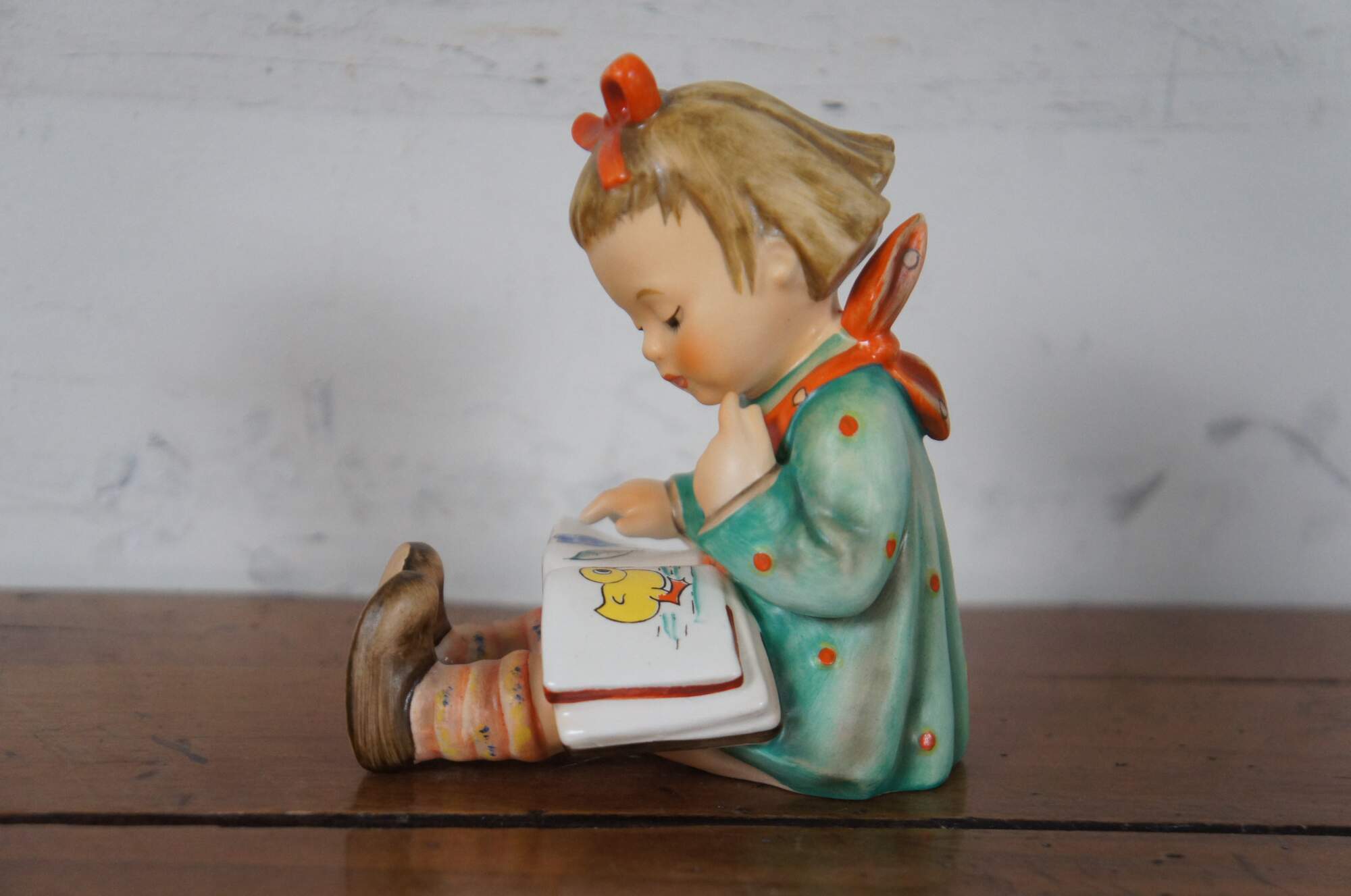 Goebel M.I. Hummel porcelain figurine number 8 titled Bookworm; made in West Germany with the stamped TMK 6 (1979-1991) and marked CH 81. Circa 1981.