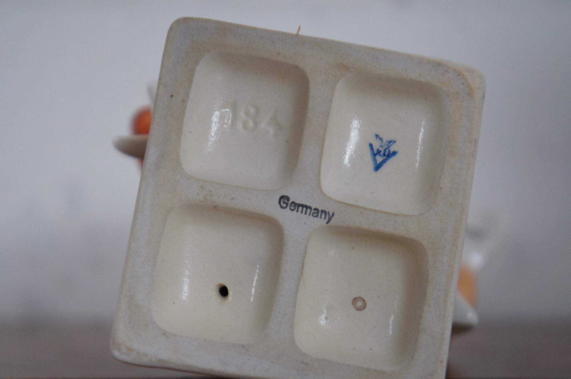 Goebel M.I. Hummel porcelain figurine number 184 titled Latest News Munchener Presse; made in Germany with the stamped TMK2 Full Bee mark (1950-1955).