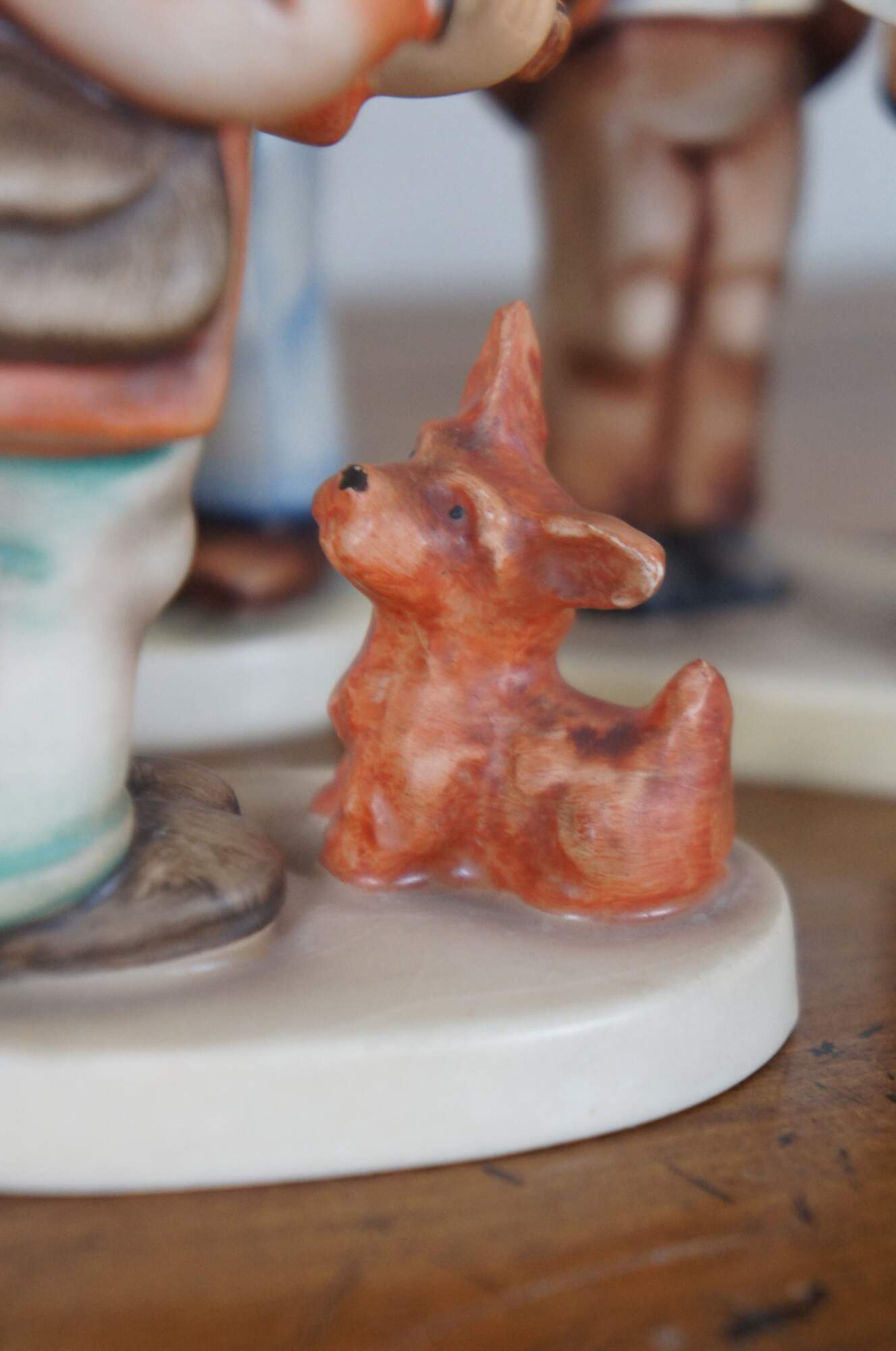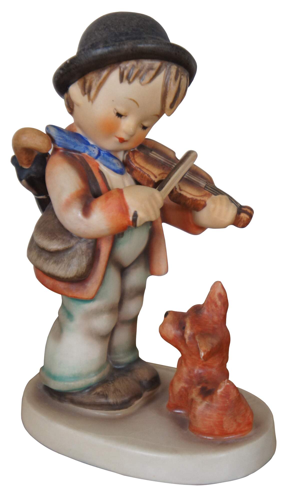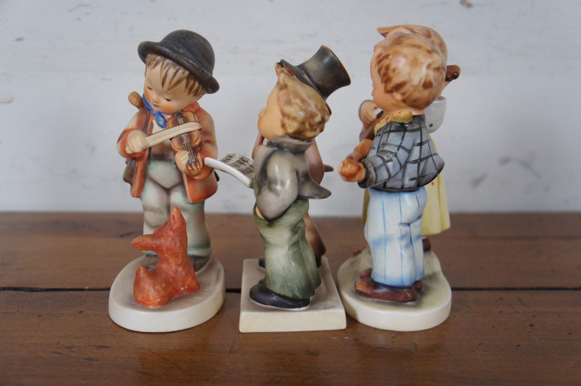Lot of 3 assorted Goebel M.I. Hummel porcelain musician figurines – number 130 / 1 titled Duet; number 150 / 0 titled Happy Days; and number 1 titled Puppy Love – made in West Germany with the TMK3 Stylized Bee mark (1957-1972).