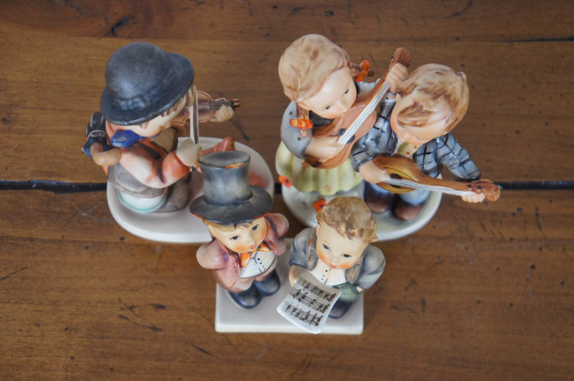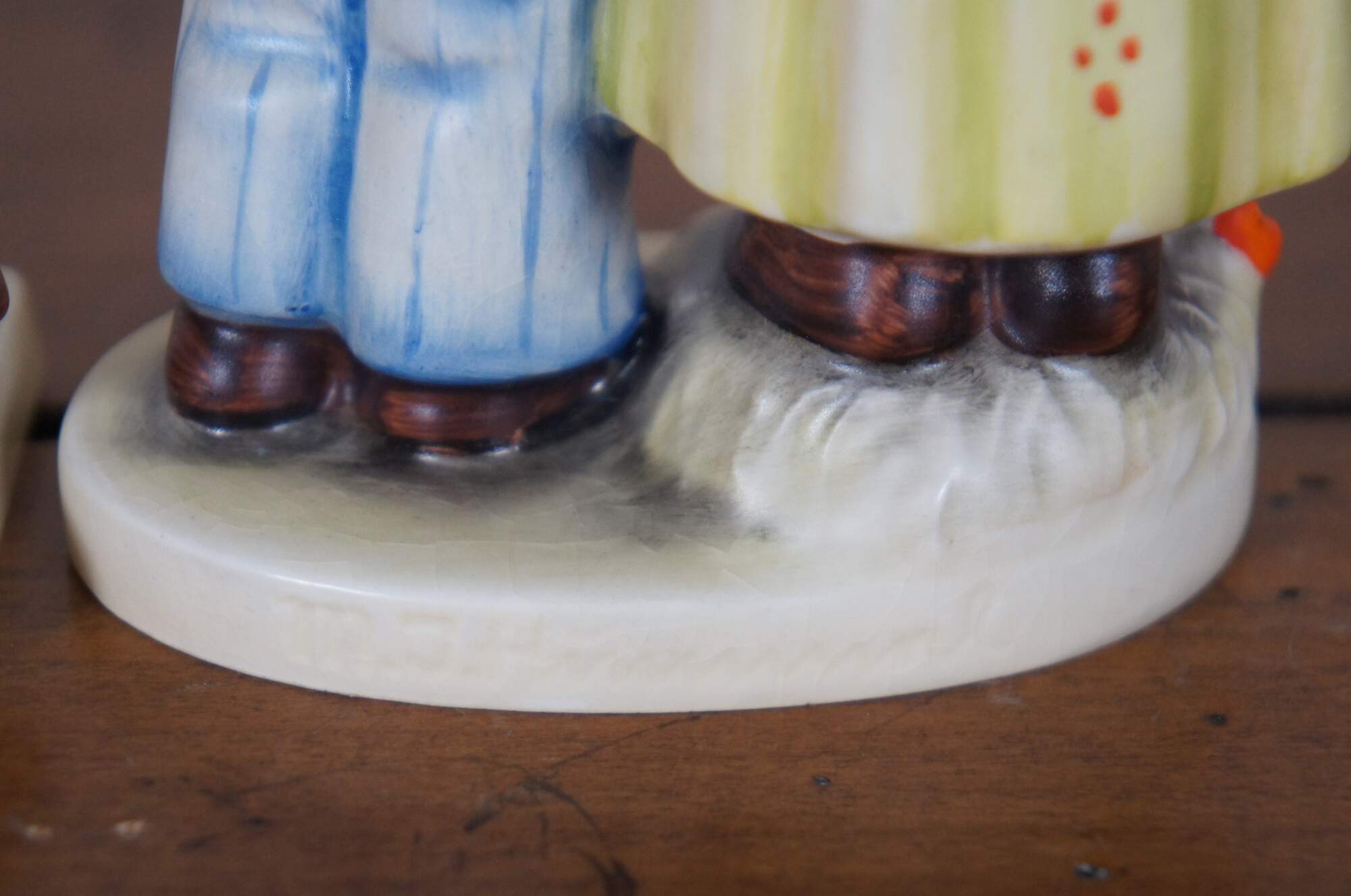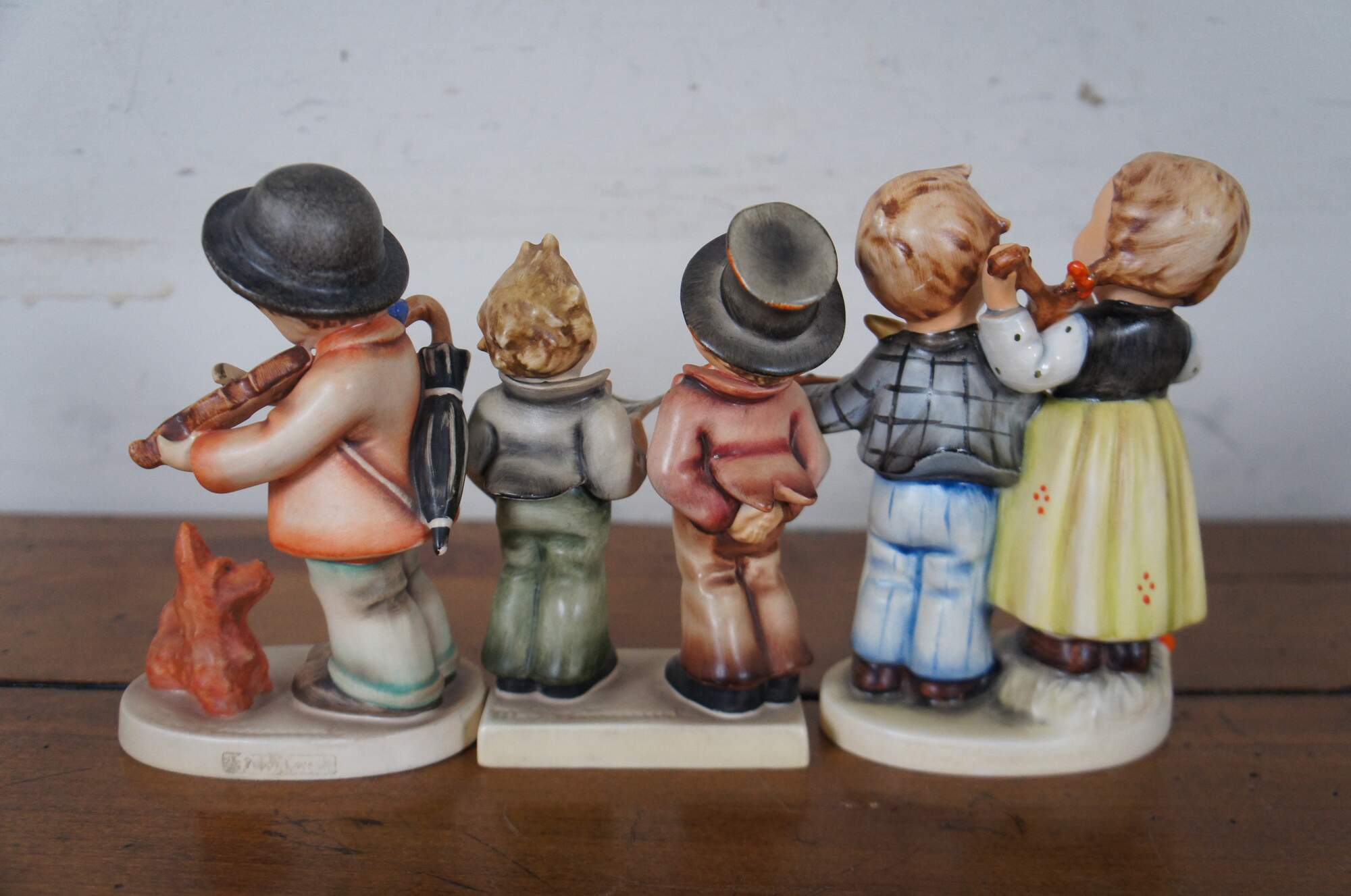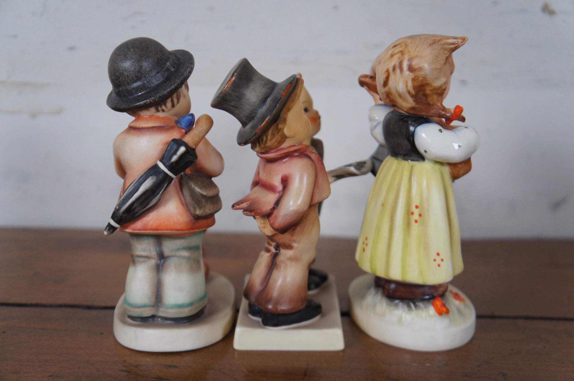 Lot of 3 assorted Goebel M.I. Hummel porcelain musician figurines – number 130 / 1 titled Duet; number 150 / 0 titled Happy Days; and number 1 titled Puppy Love – made in West Germany with the TMK3 Stylized Bee mark (1957-1972).