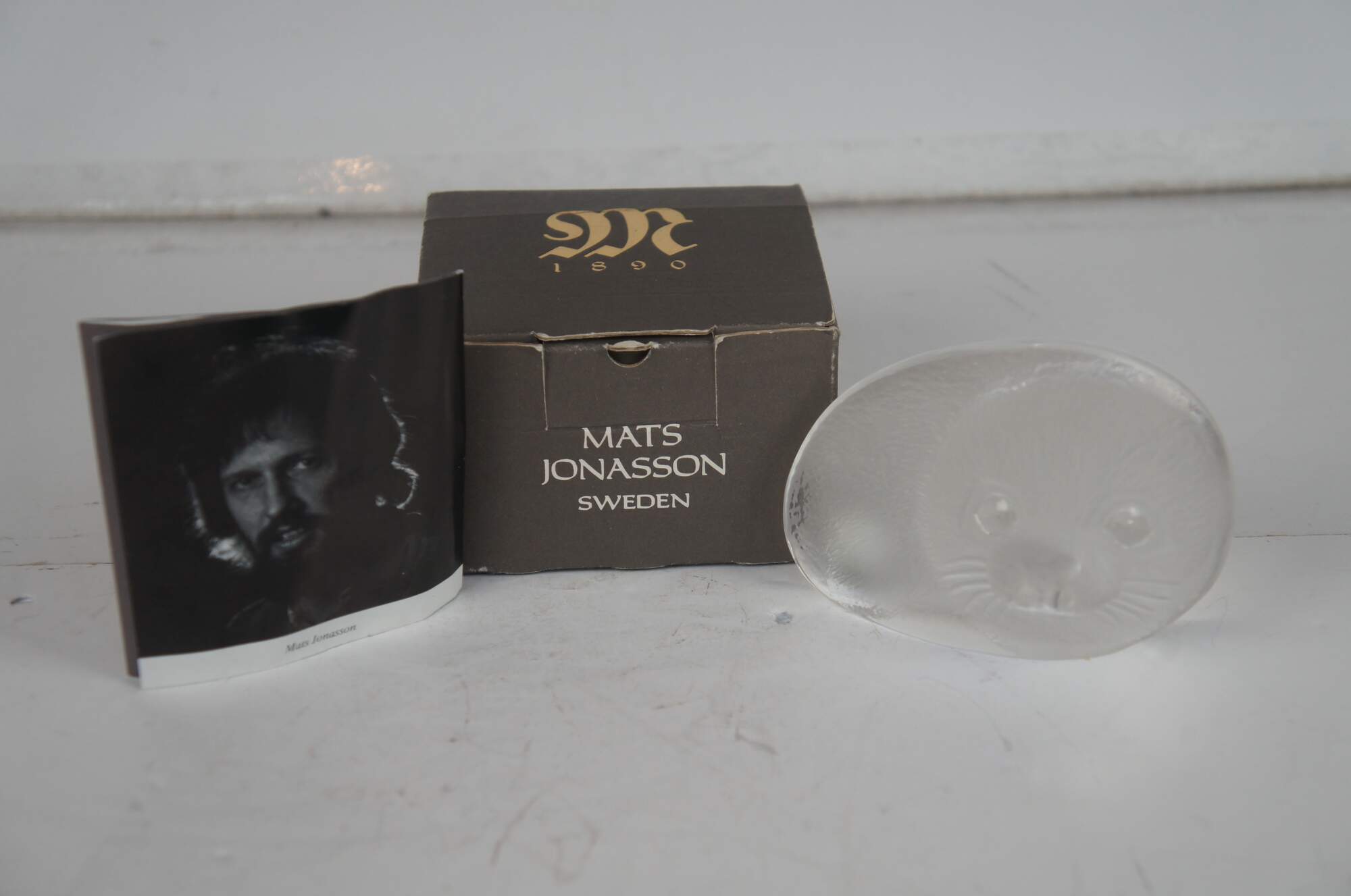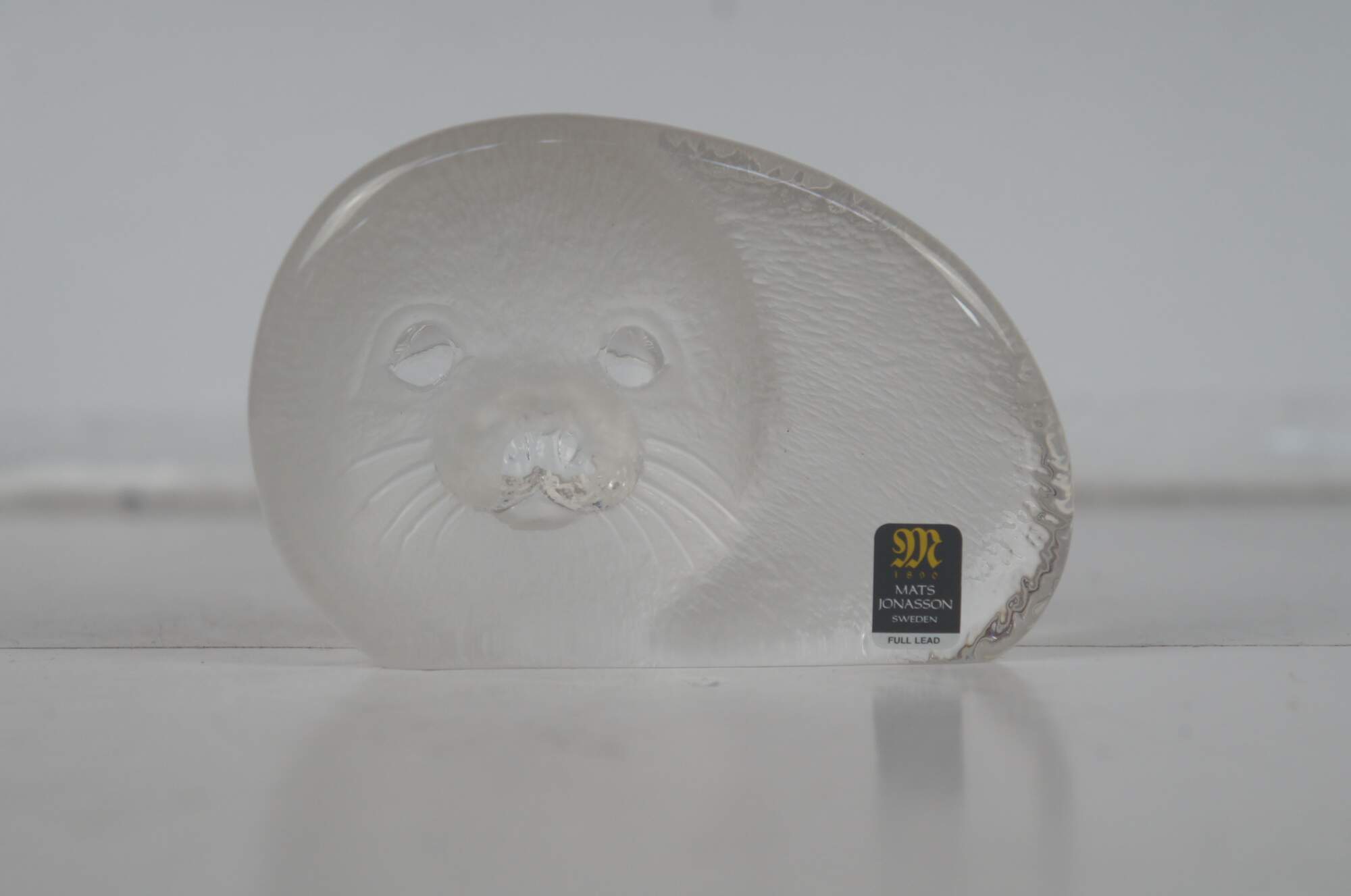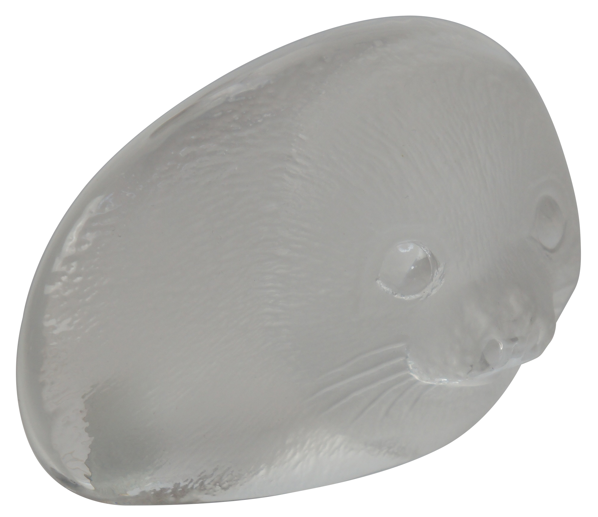 Vintage Mats Jonasson full lead crystal seal pup figurine paperweight, made in Sweden.