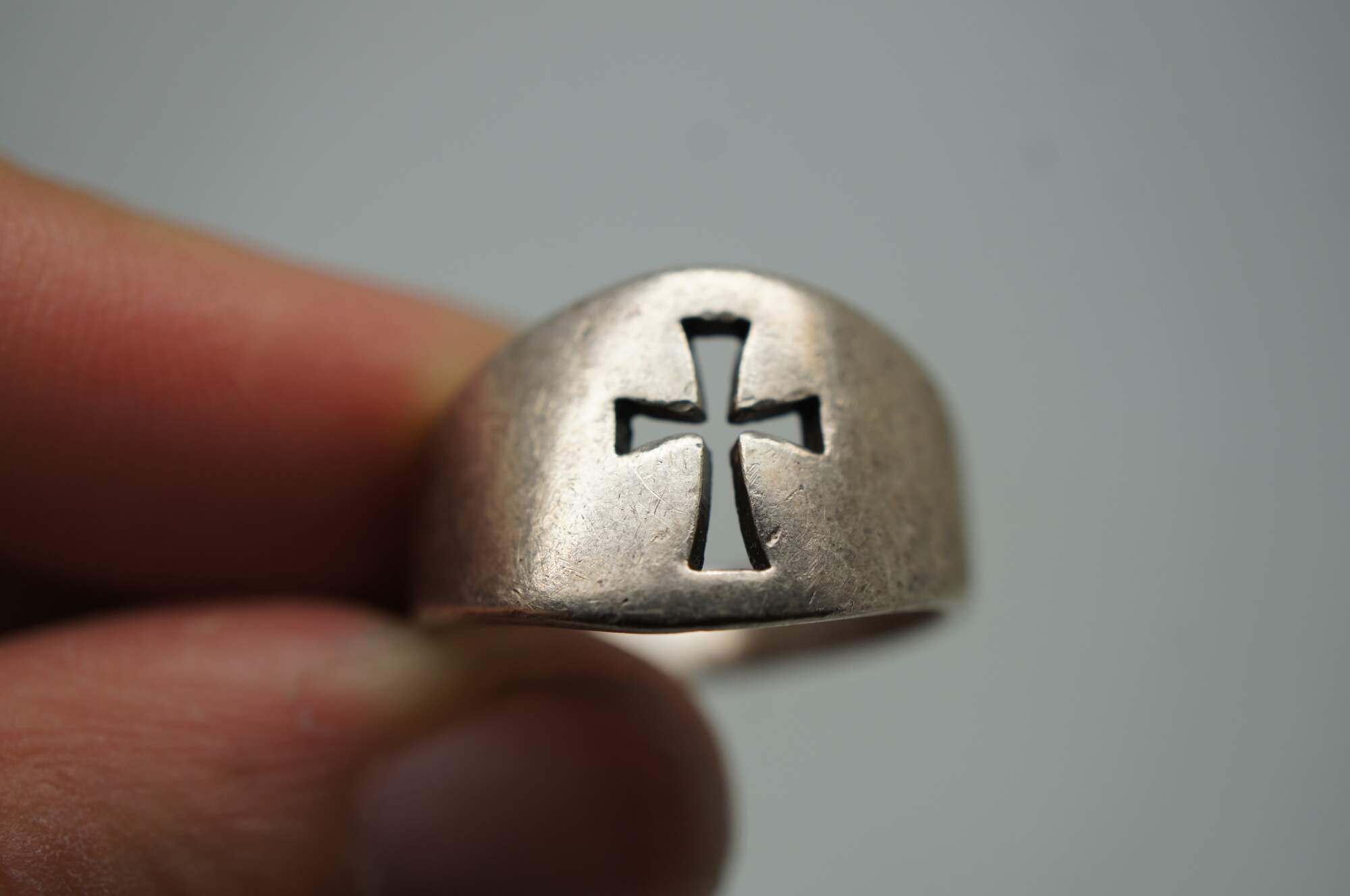Vintage James Avery sterling silver ring featuring a cut out Christian cross.