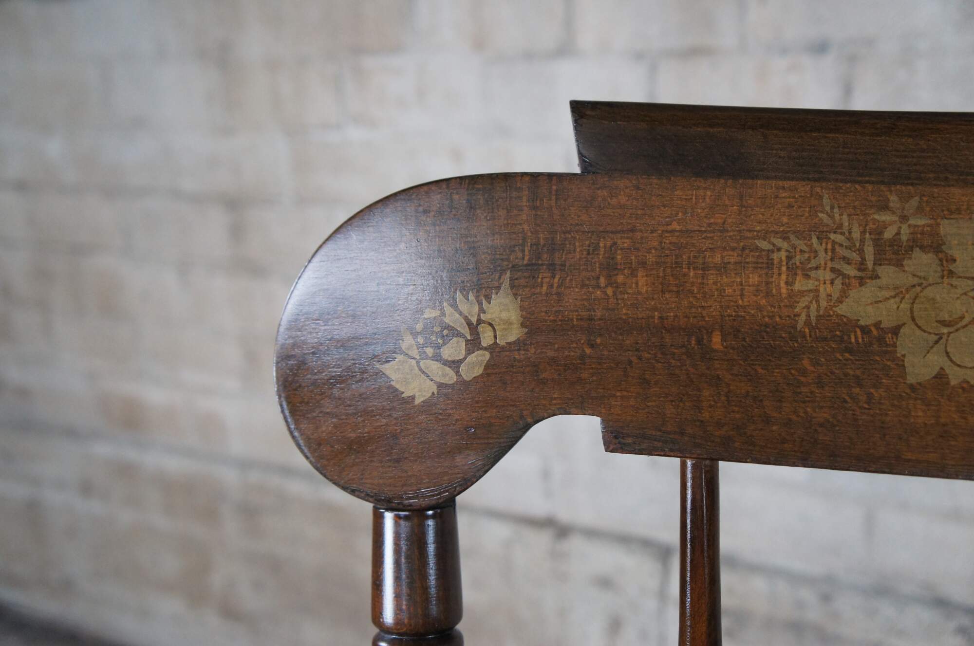 Vintage Windsor style Hitchcock inspire oversized rocking chair, circa mid 20th century. Made from maple with a stenciled crest, spindle back, contoured seat and scrolled arms.