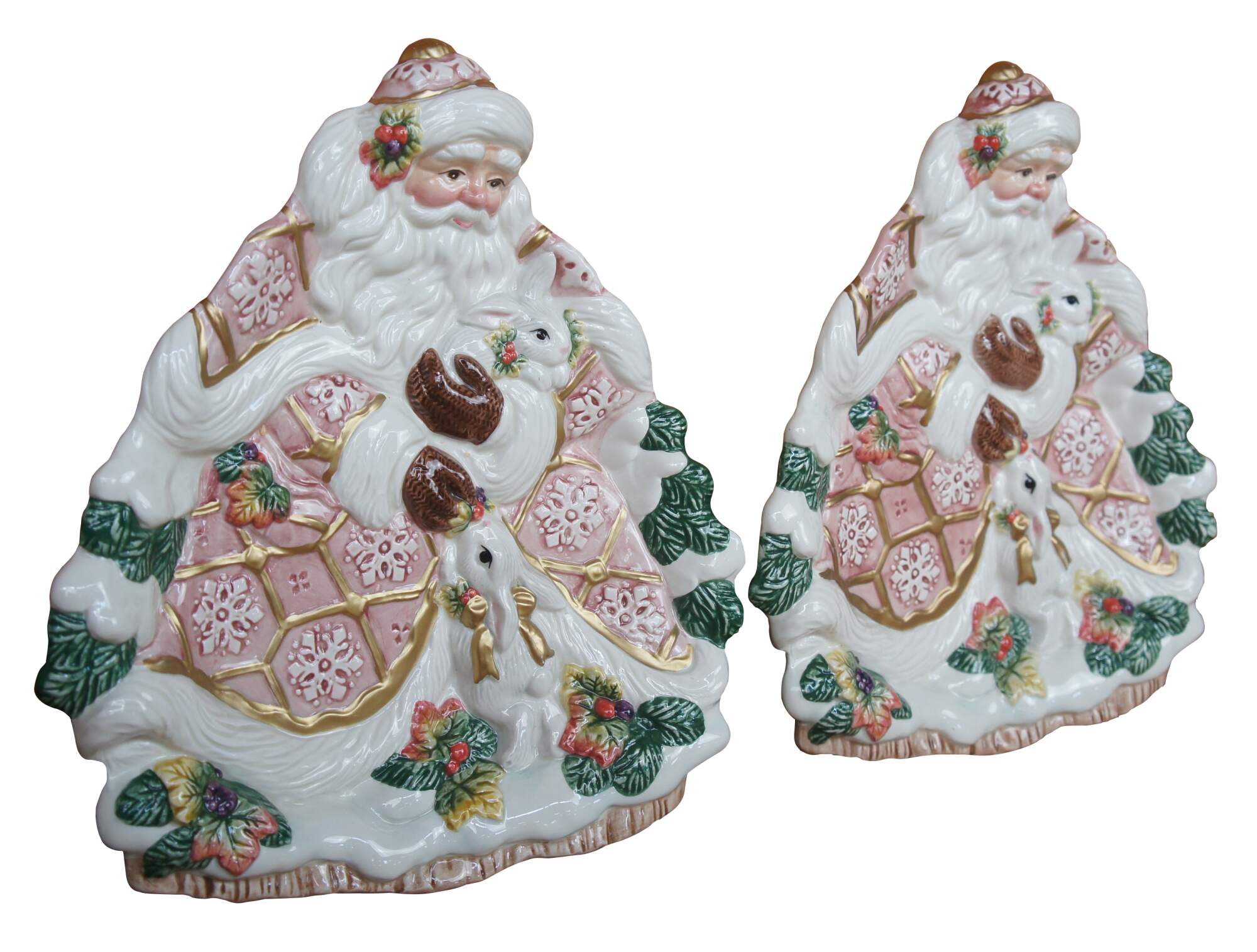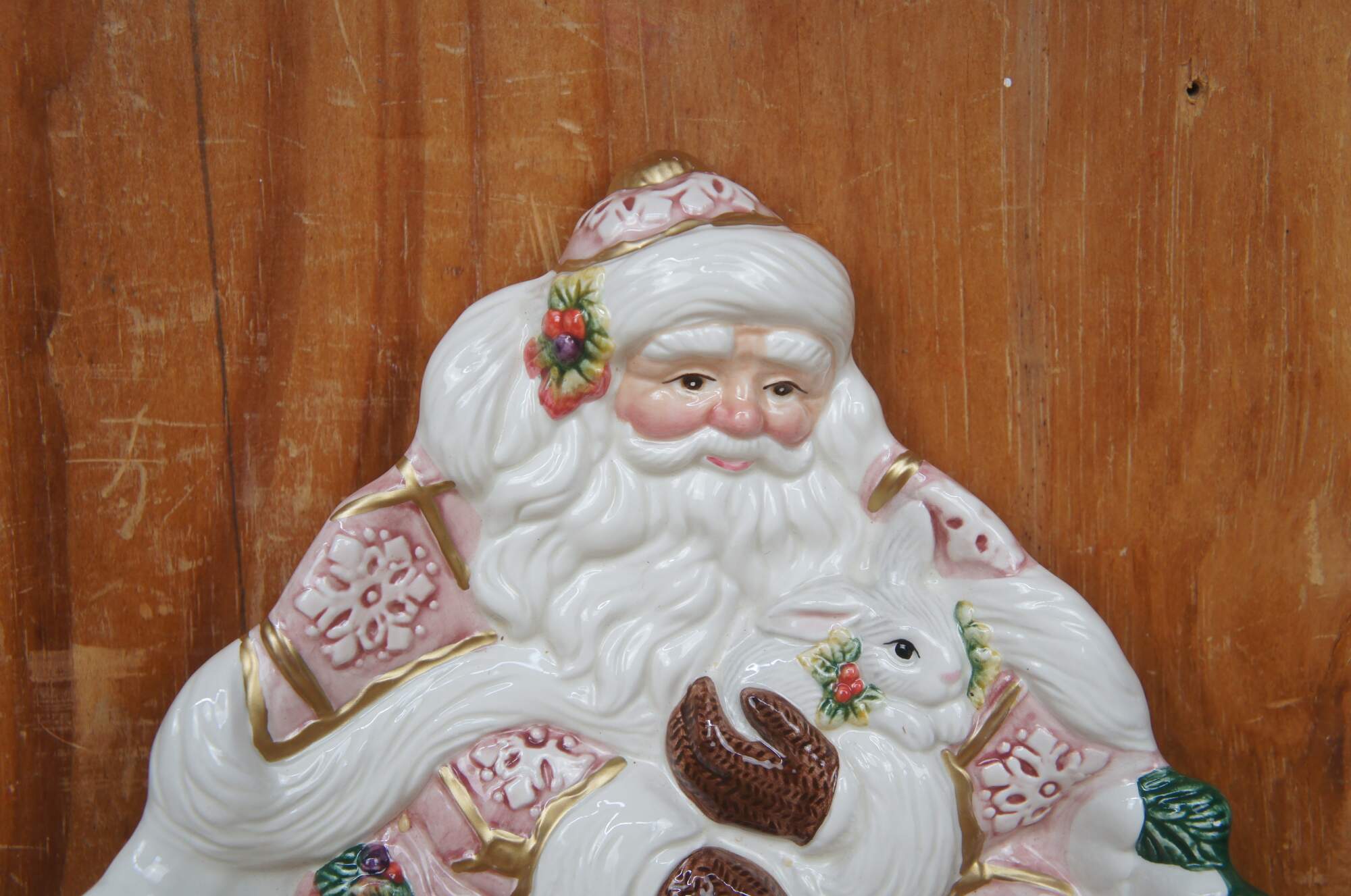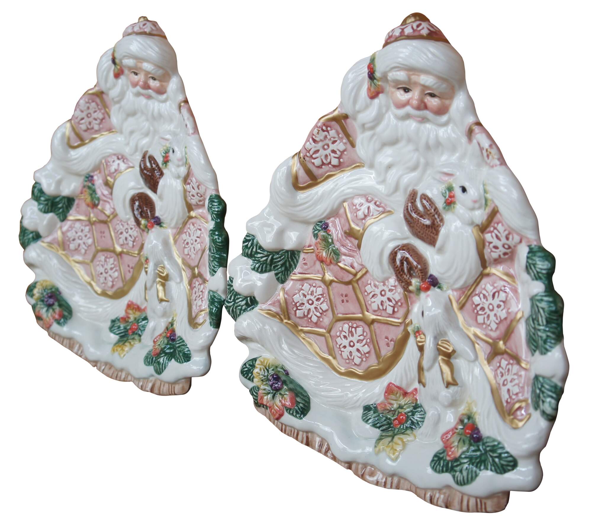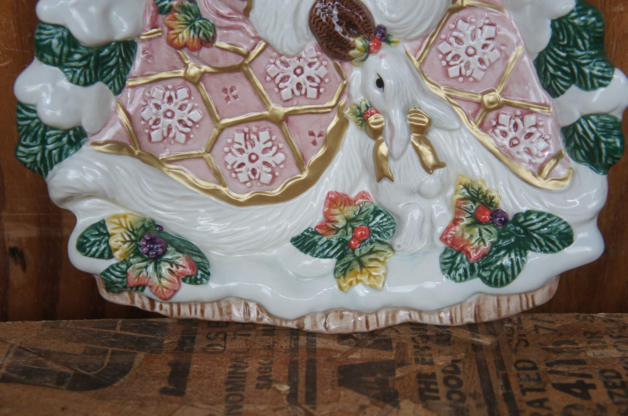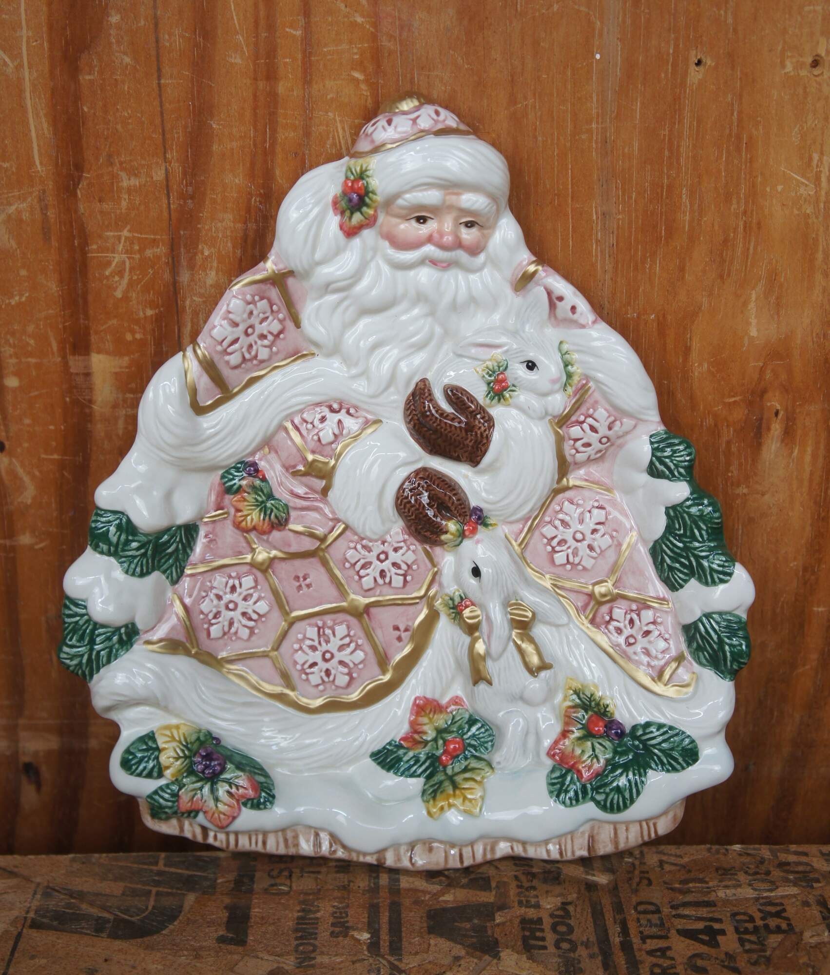 2 vintage 1996 Christmas platters or plates by Fitz and Floyd featuring Santa and rabbits.