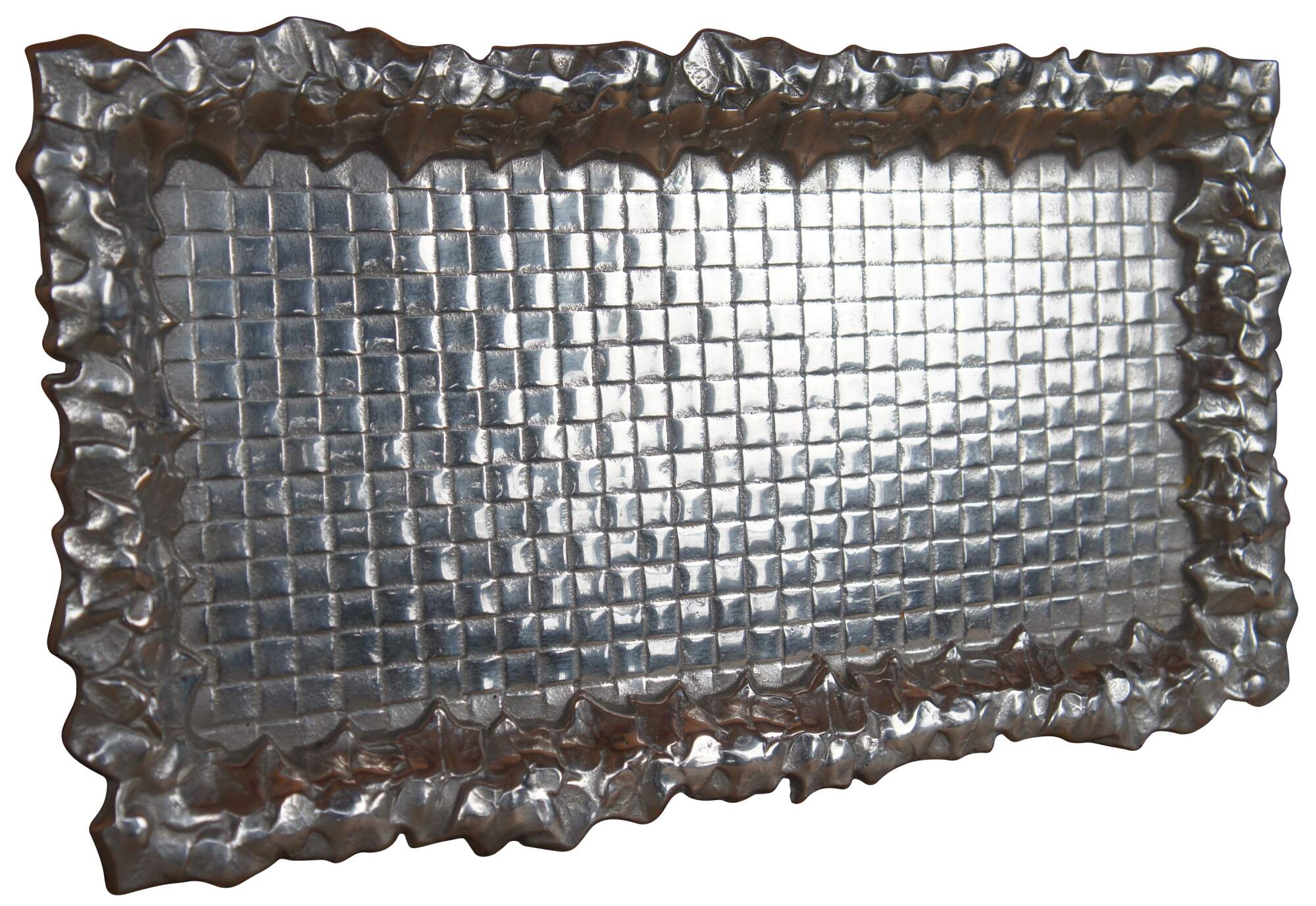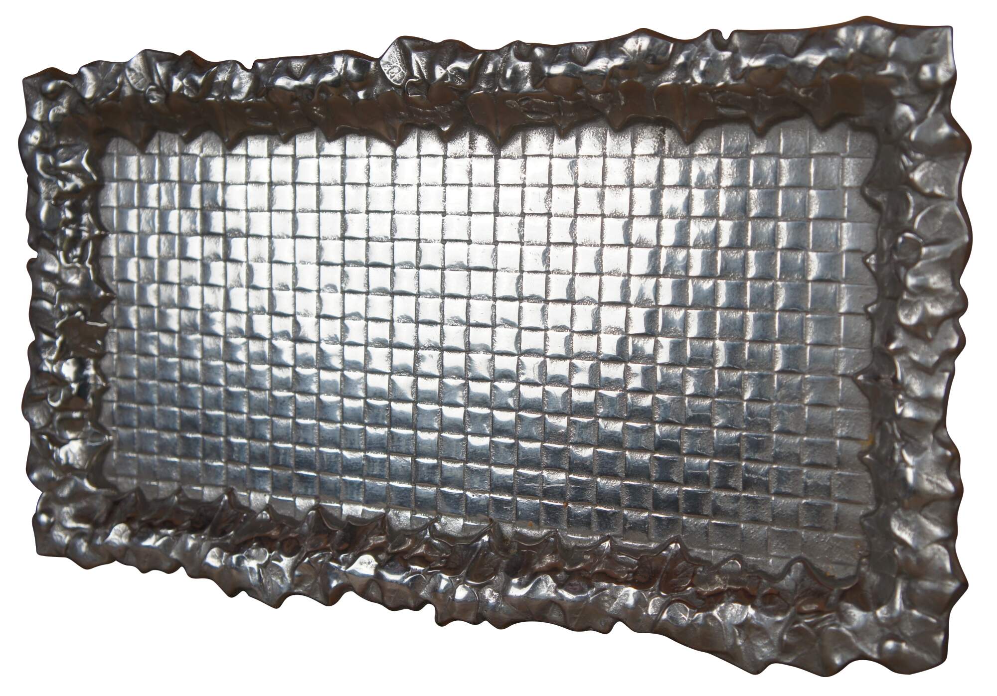 Wilton Armetale rectangular metal tray with basketweave and border of ivy in high relief.