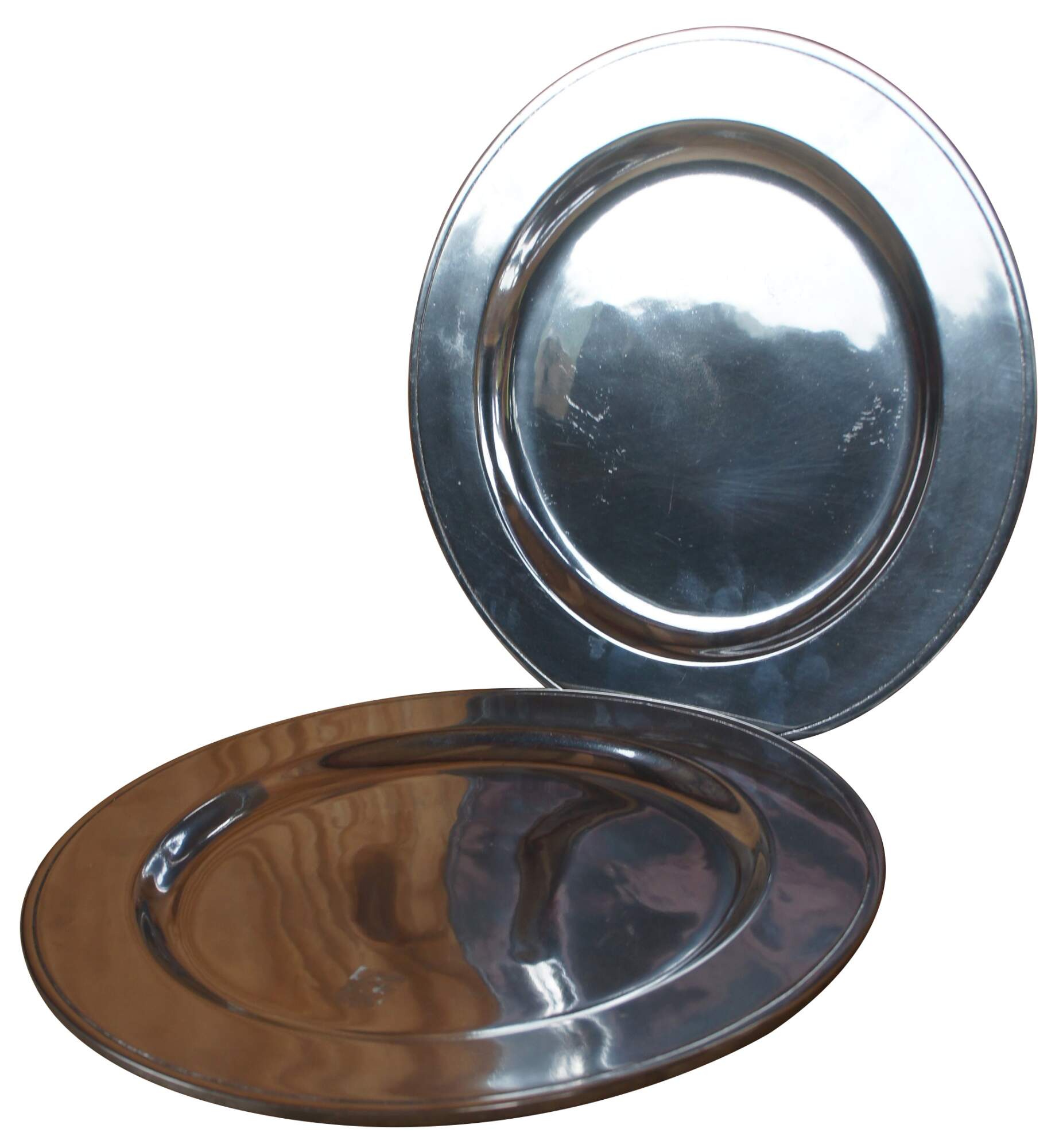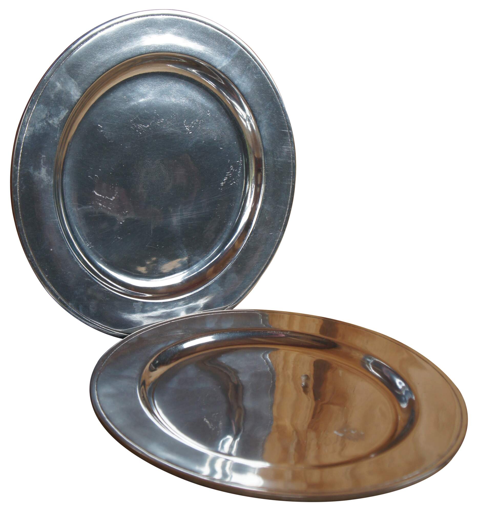 2 Wilton Armetale metal dinner plates or chargers with polished finish.
