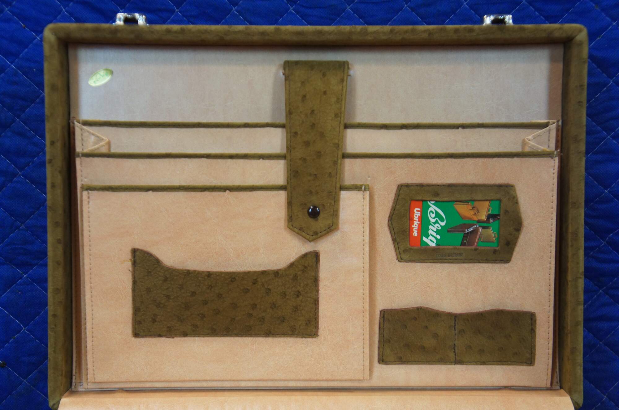 Rare vintage never used Brig Ubrique beige ostrich skin suede leather briefcase; keys included. Made in Spain.