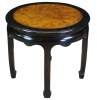 Vintage Century Furniture Chin Hua collection table. Made of burl wood and black lacquer featuring round form with chinoiserie / Ming styling.