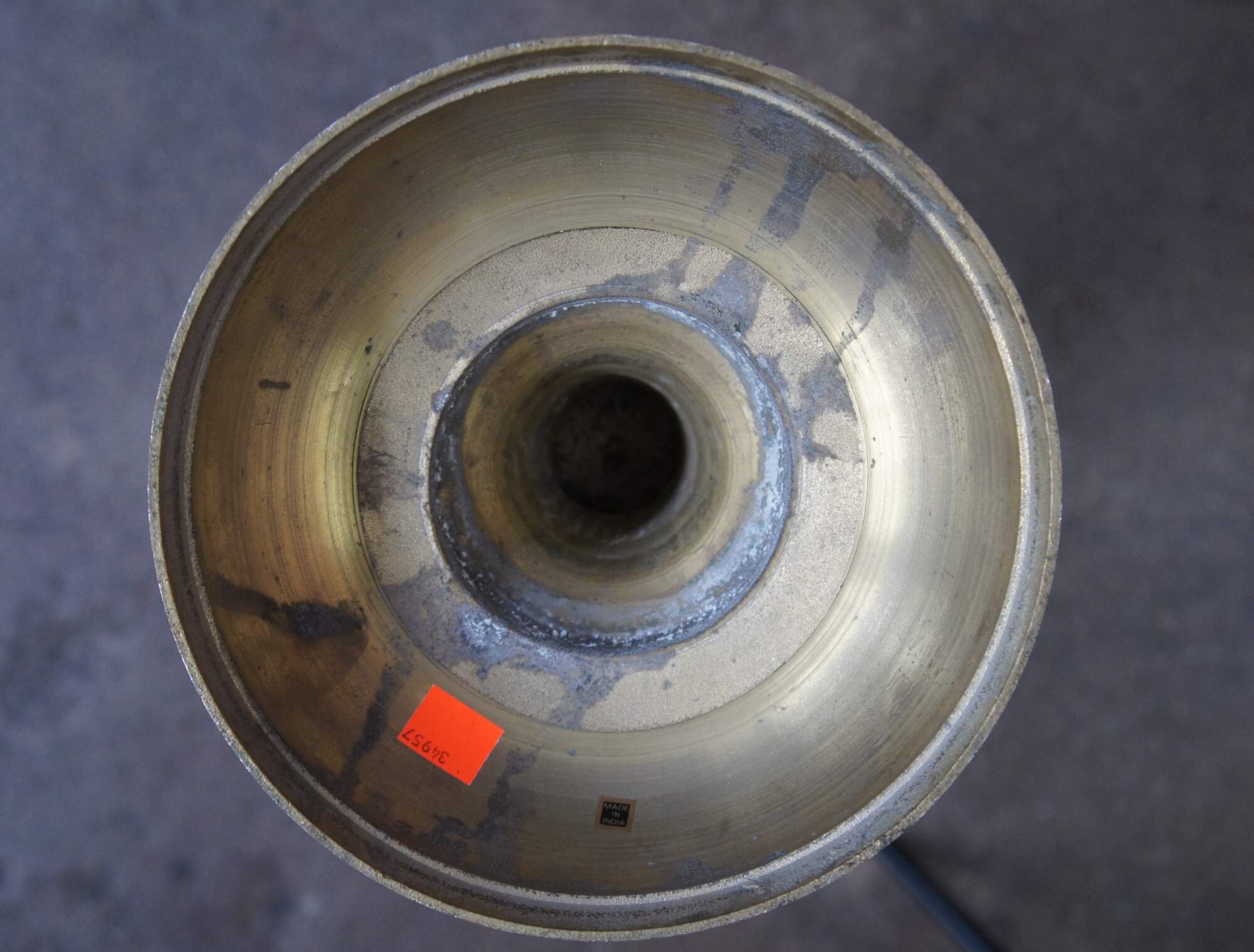 Good overall, small chips to enamel and tarnish to brass