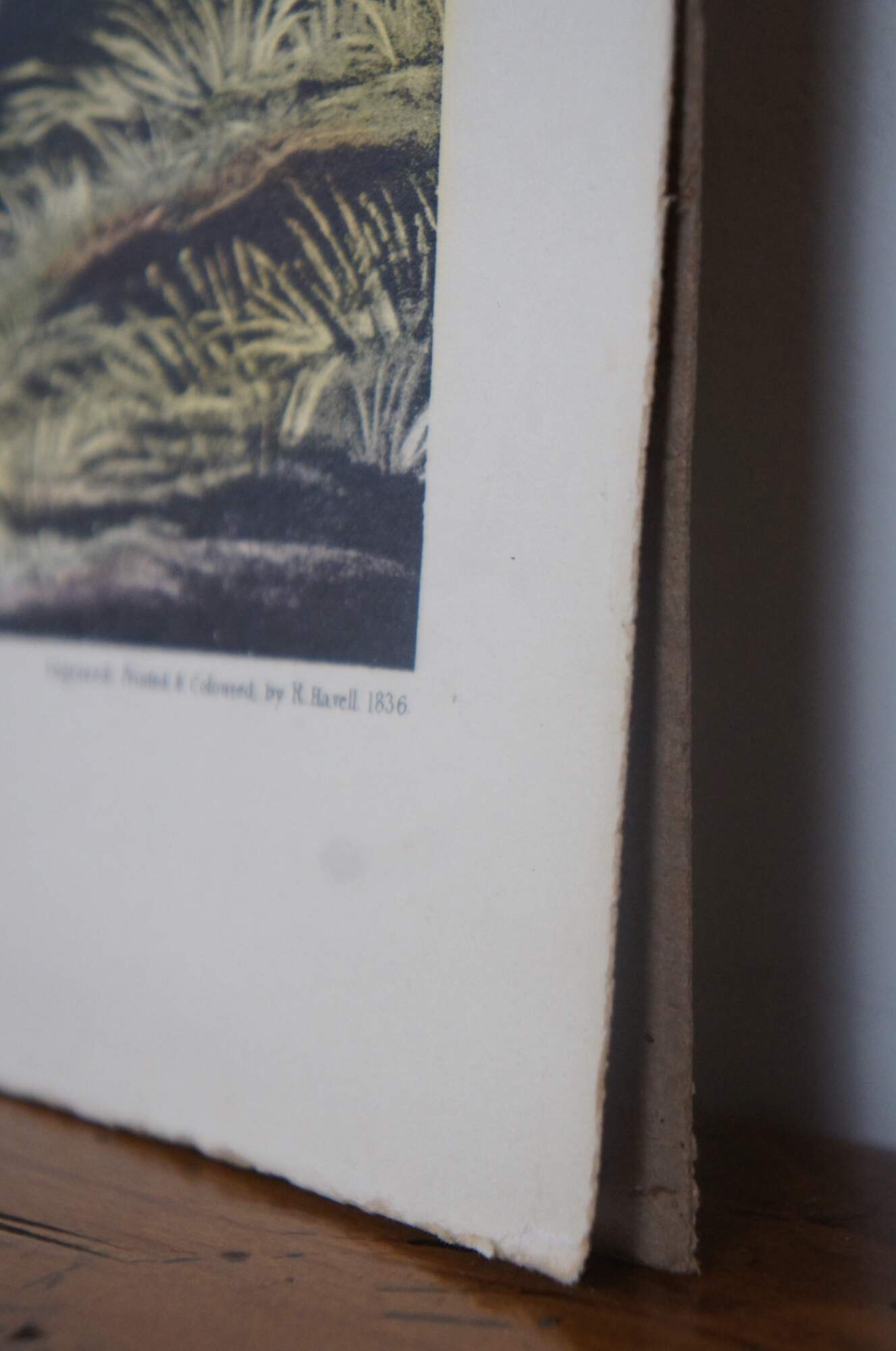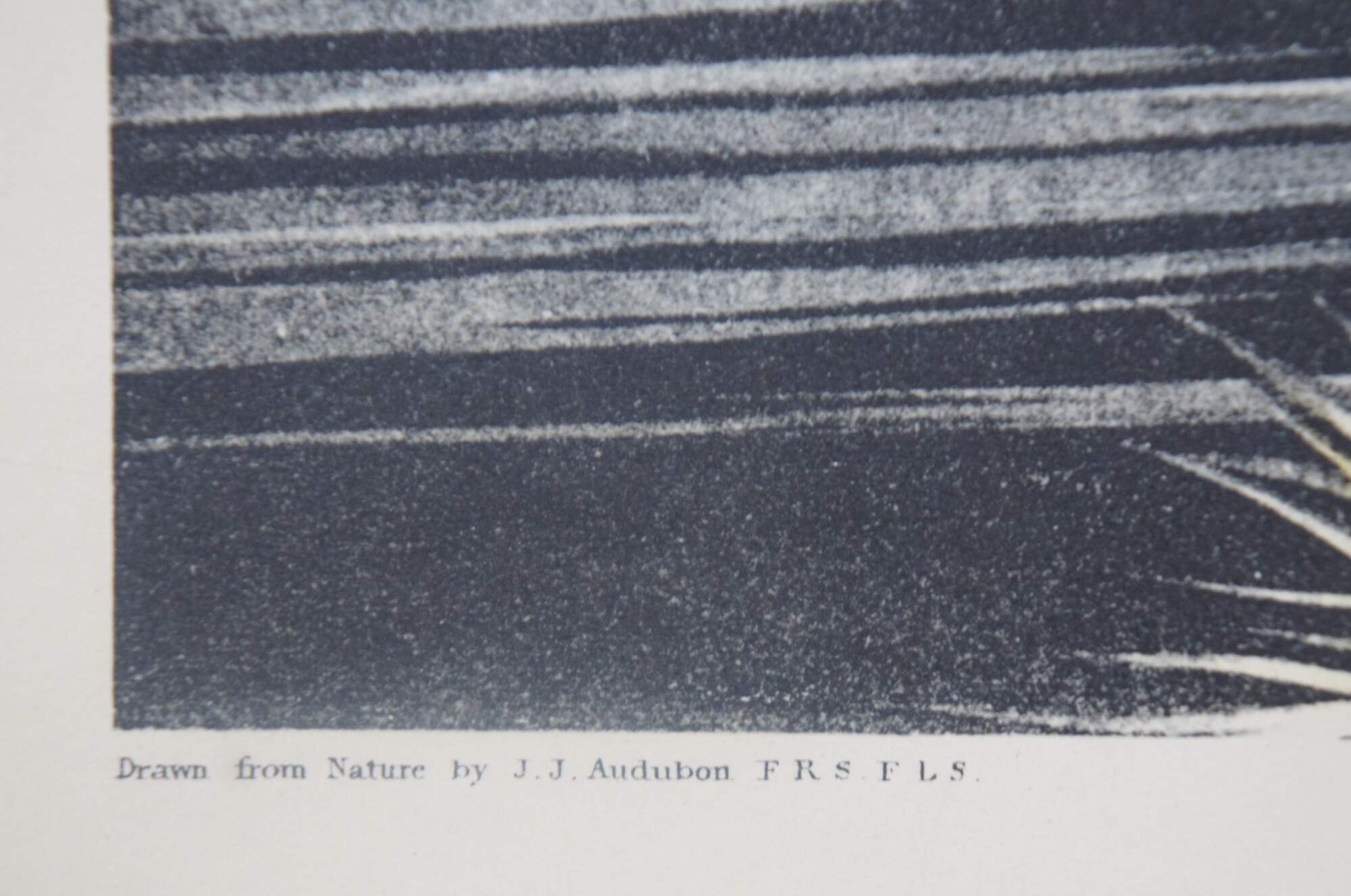Unable to find a publisher in Philadelphia for his proposed book of bird drawings, Audubon traveled to England and Scotland in 1826 in search of support. Abroad, he met luminaries in the scientific community, including the botanist William Roscoe, who helped him exhibit his drawings in Manchester; the ornithologist William Swainson; the naturalist William MacGillivray, who later edited the text for The Birds of America; and William Home Lizars, an engraver in Edinburgh who, impressed by Audubon's work, agreed to print the massive folio. However, when Lizars was only able to complete the first ten plates, Audubon approached the established London engraver Robert Havell, who together with his son Robert, Jr., took up the project. Ultimately, The Birds of America was issued serially in five-plate sets, for a total of 435 plates, over the course of a decade.”