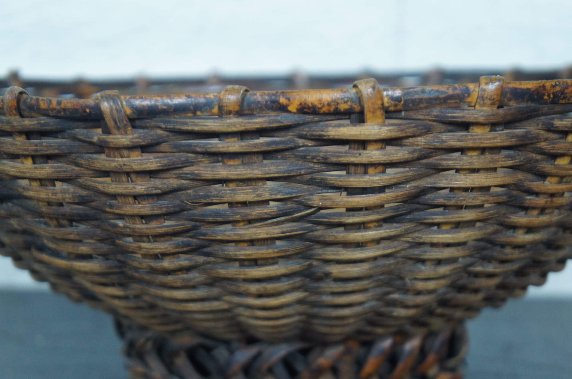 Antique rustic footed basket with no handle, excellent for use as a centerpiece or fruit bowl.
