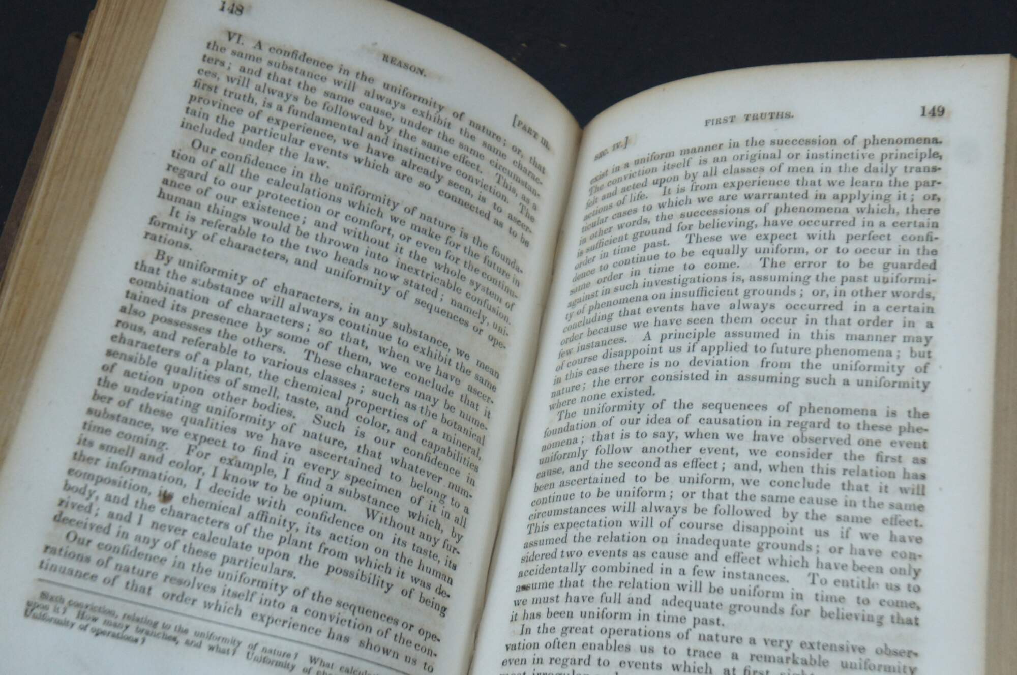 Antique hard cover copy of Abercrombie’s Intellectual Philosophy, aka “Inquiries Concerning the Intellectual Powers and the Investigation of Truth” by John Abercrombie, M.D.F.R.S. Published by Otis, Broader and company 1847.