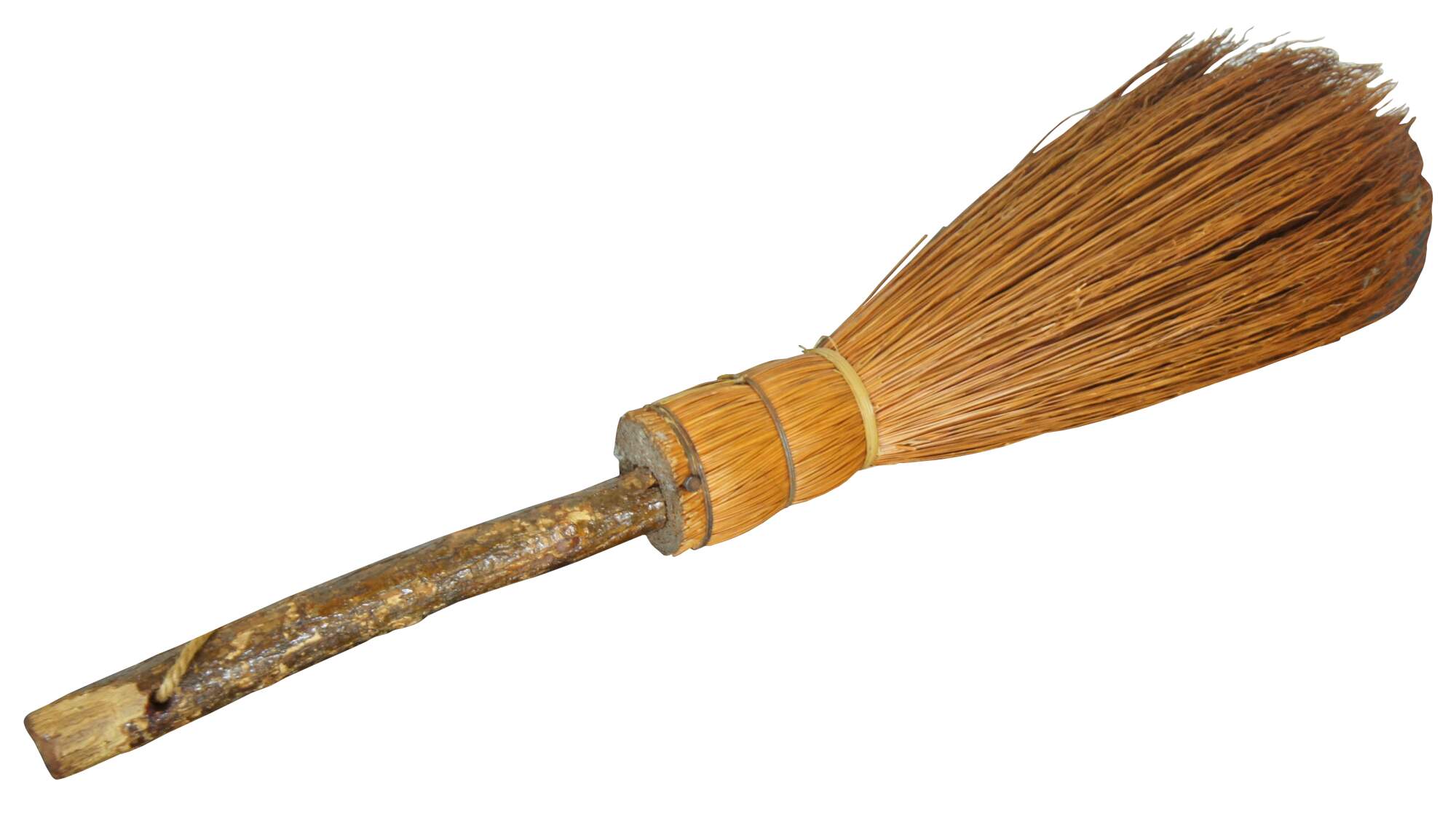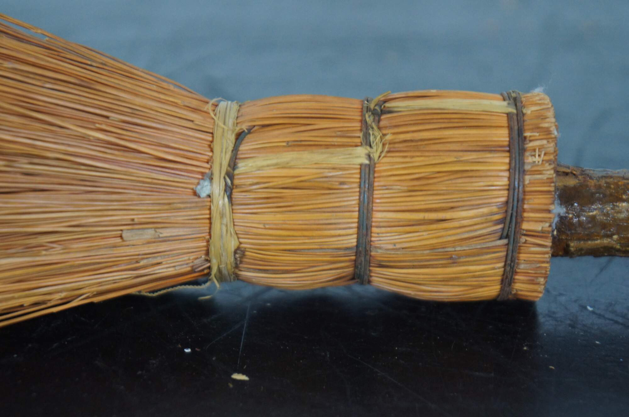 Vintage hand made straw and wood broom with a textured wood handle, fashioned by Berea College Student Industries of Berea, Kentucky.