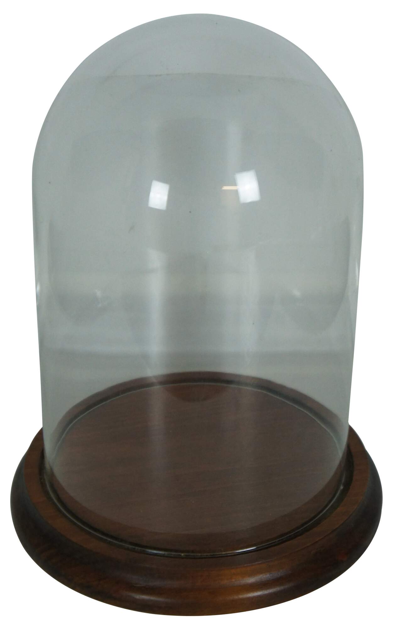 Vintage glass bell apothecary display dome with wooden base. Great for the display of dolls, clocks, taxidermy or other collectibles.