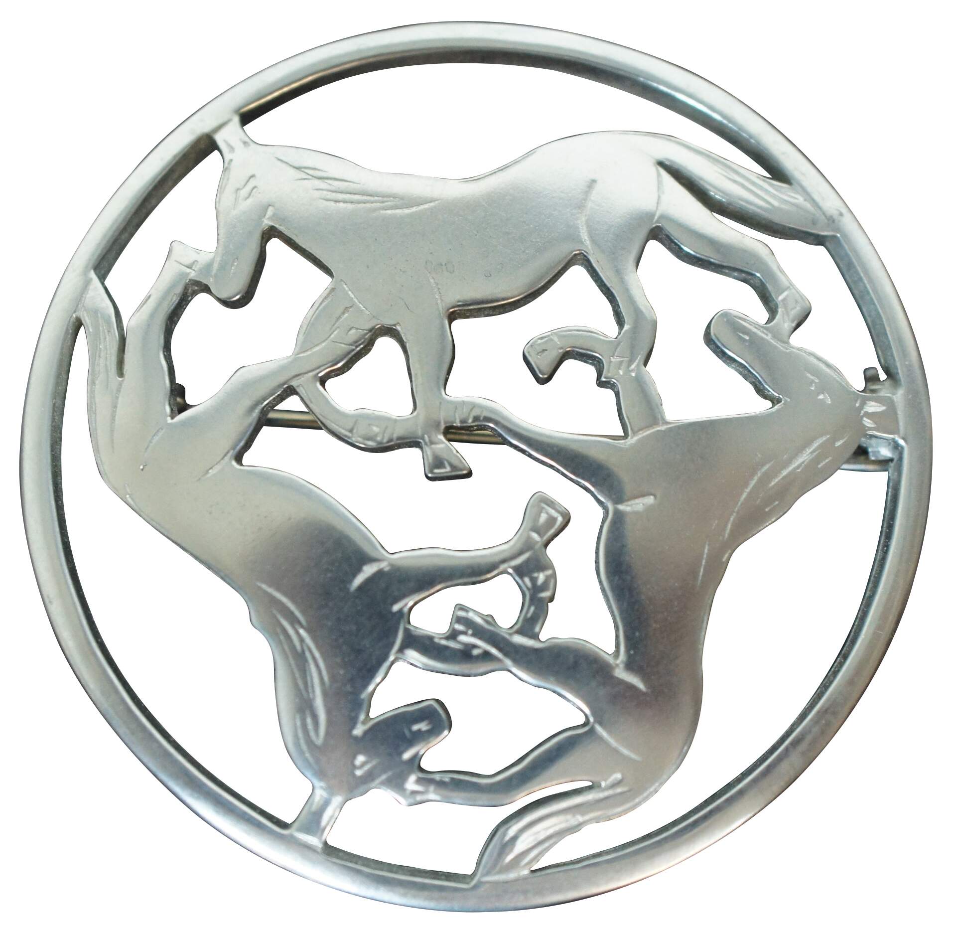 Bramberry Designs Celtic Collection handcrafted pewter brooch or pin featuring a design of three horses in a circle. Includes original box.