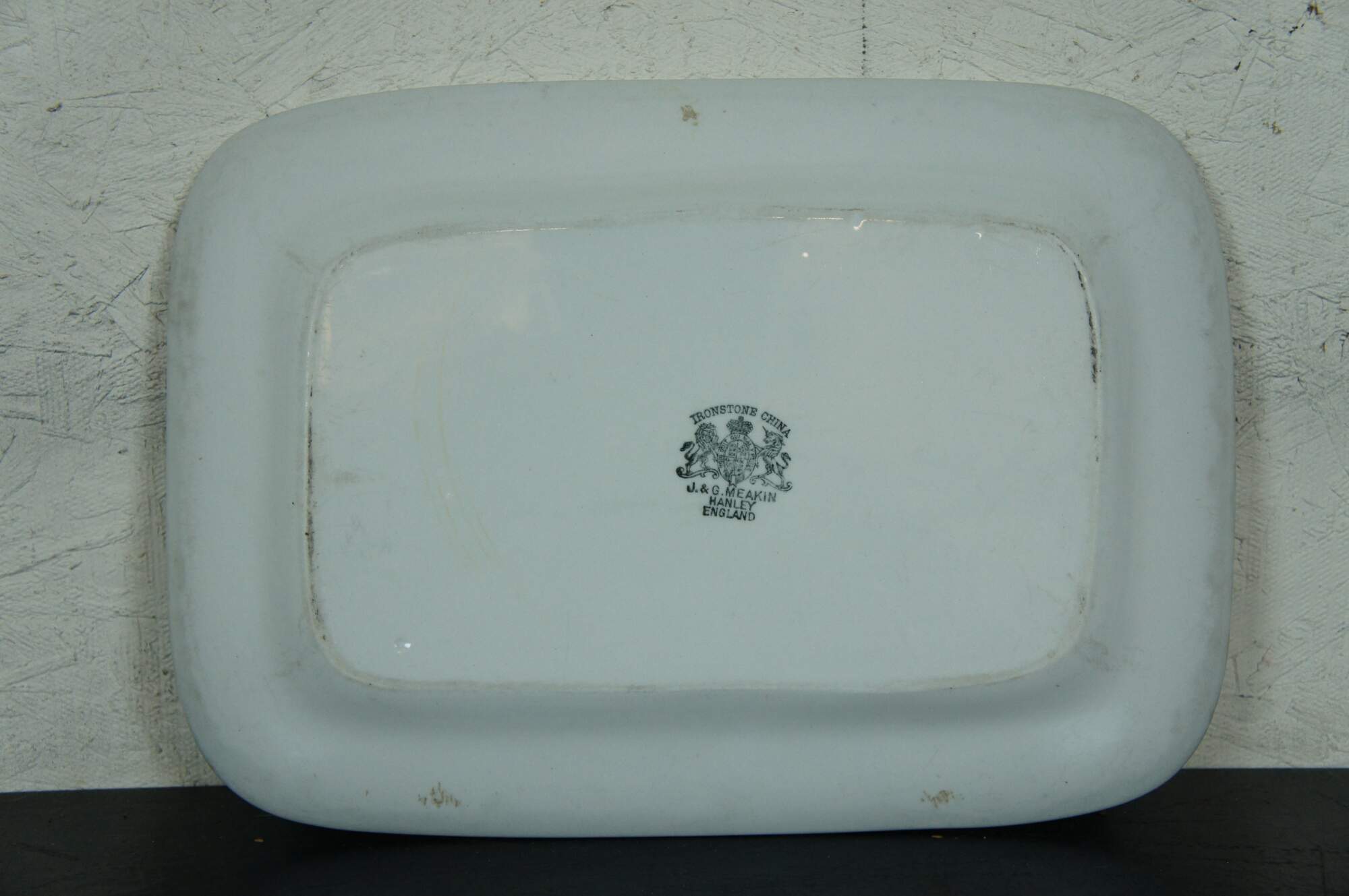 Antique white rectangular ironstone china platter by J&G Meakin of Hanley, England.