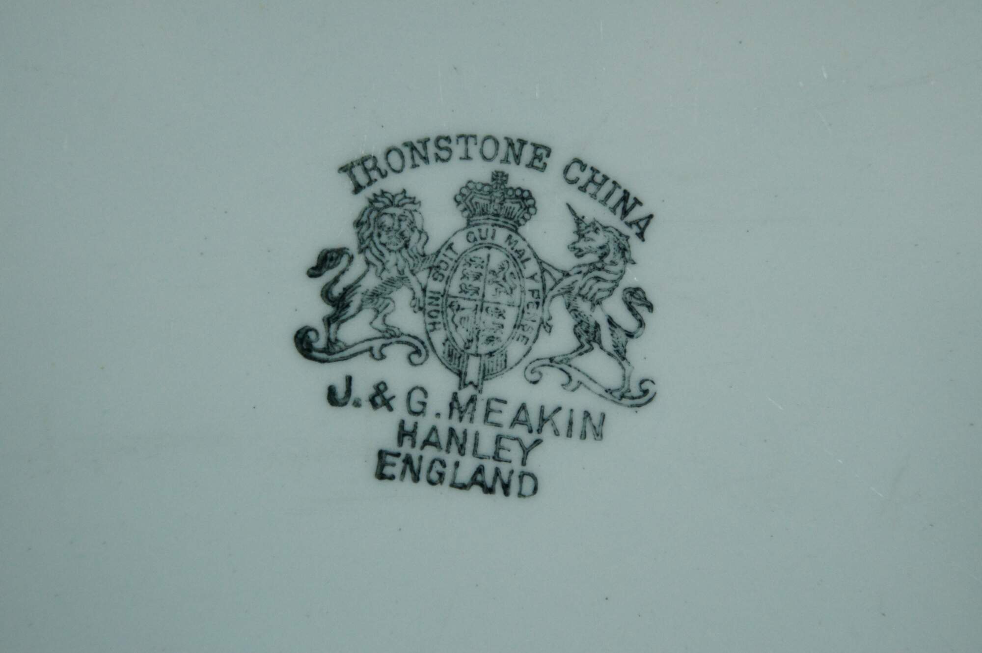 “J. & G. Meakin was an English pottery manufacturing company founded in 1851[1] and based in Hanley, Stoke-on-Trent, Staffordshire. In the 19th century, J. & G. Meakin was known for the vast quantities of cheap ironstone china it produced for the domestic English market and for export to Australia, Canada, New Zealand and the United States.