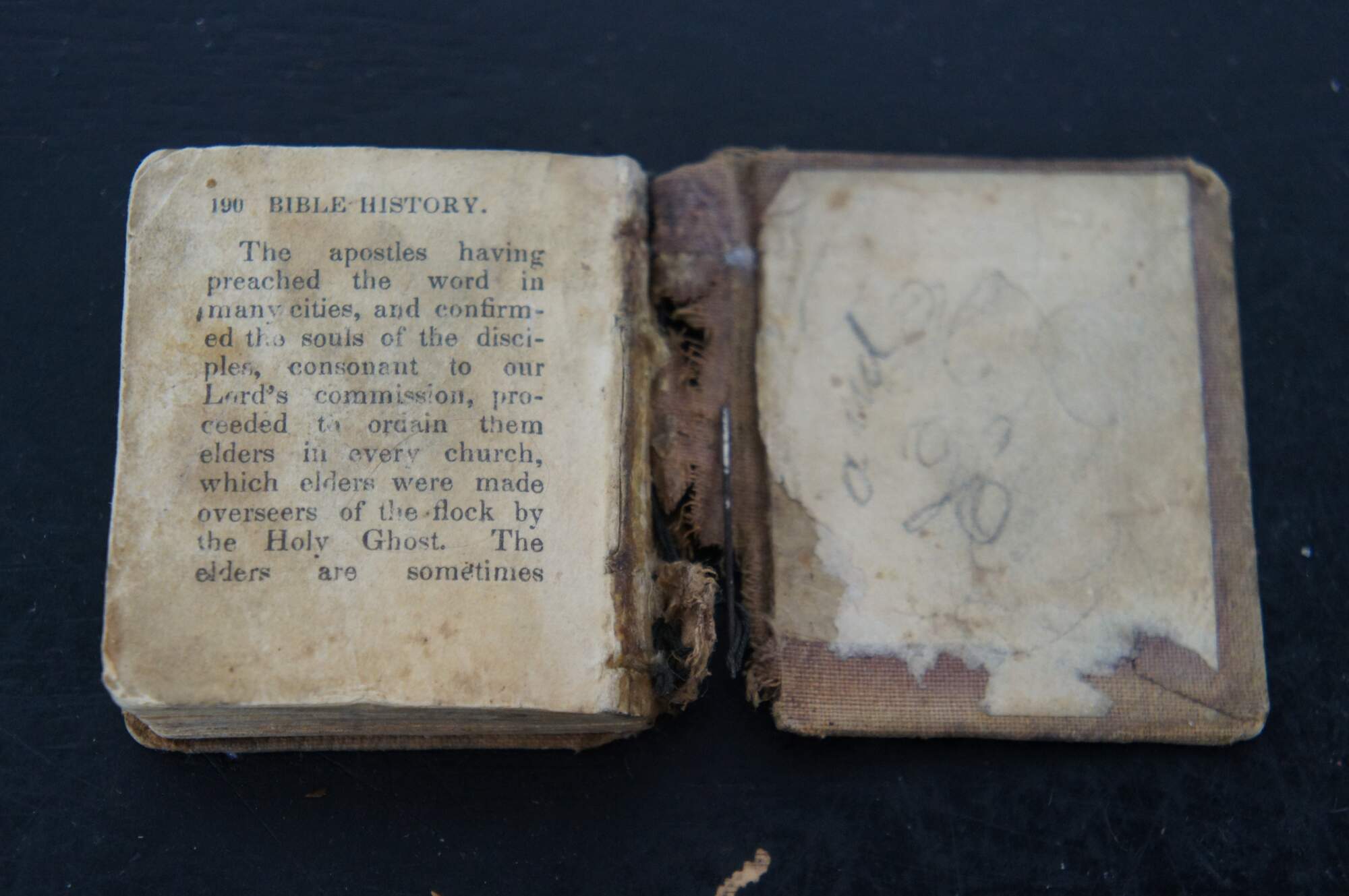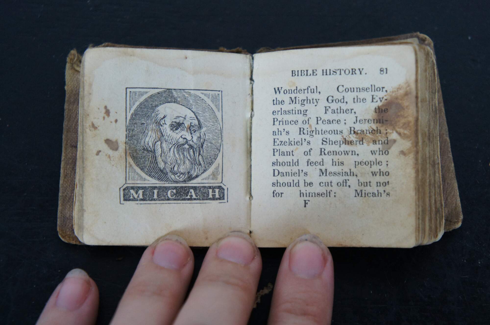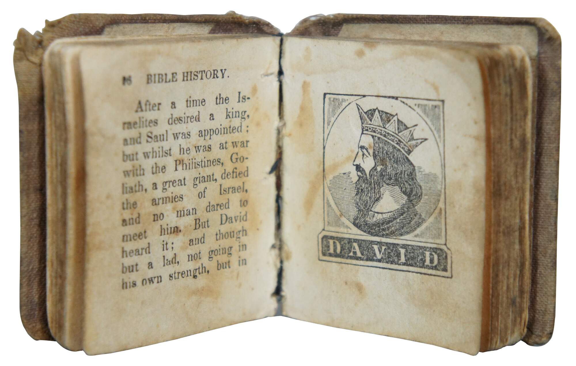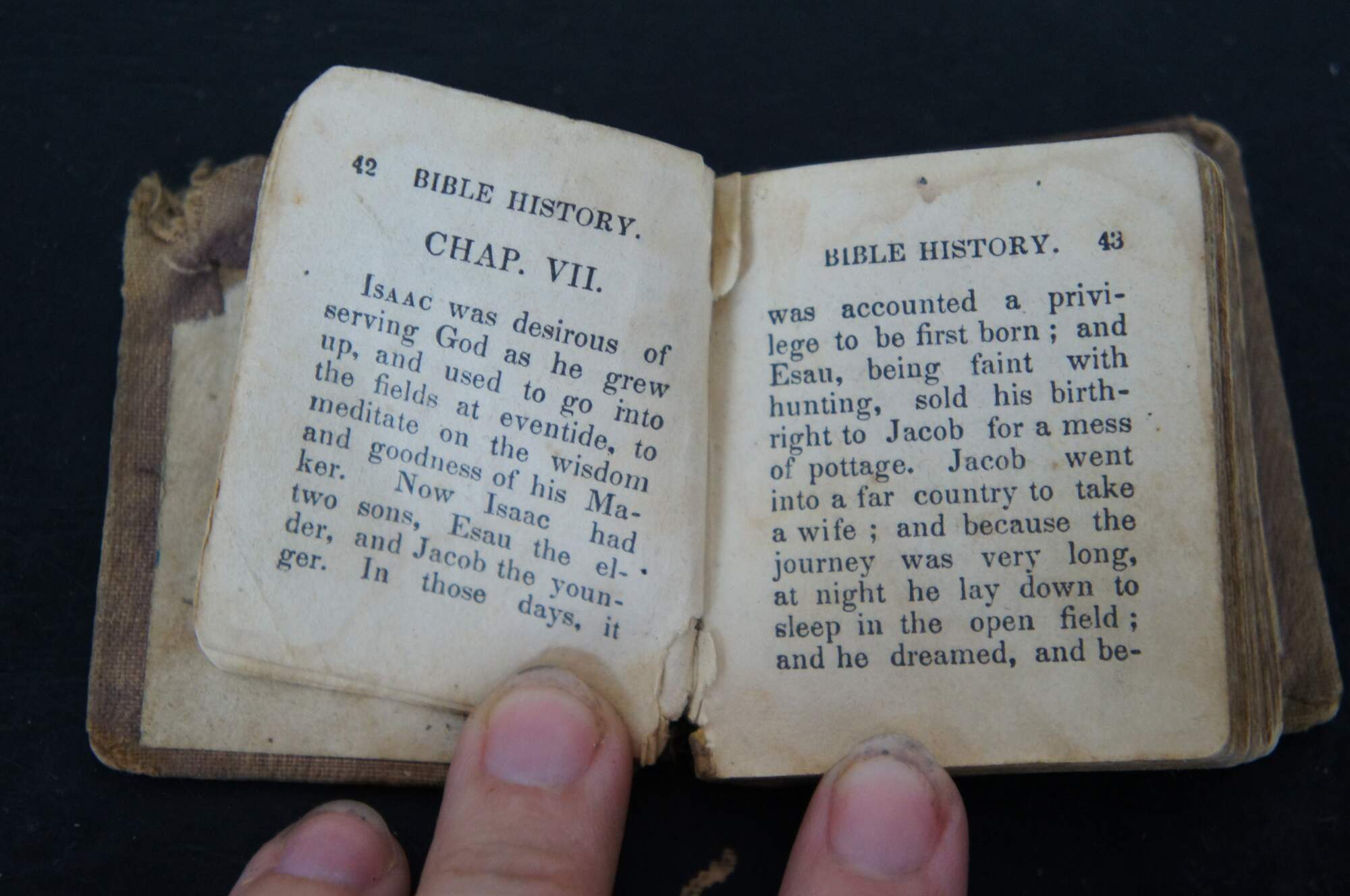 Antique miniature hard back, cloth cover book of Bible History, circa 1820s-1830s.