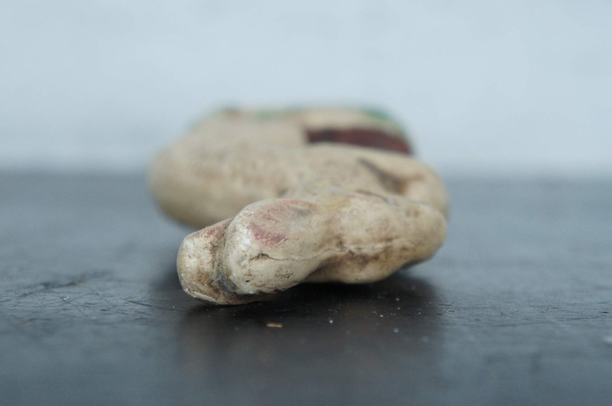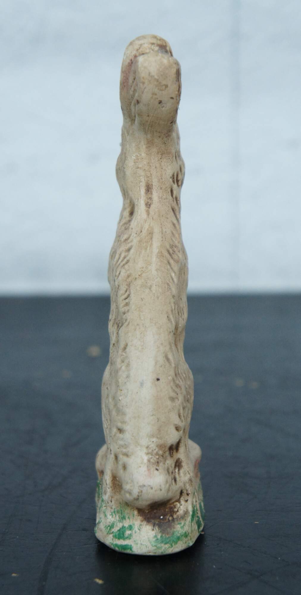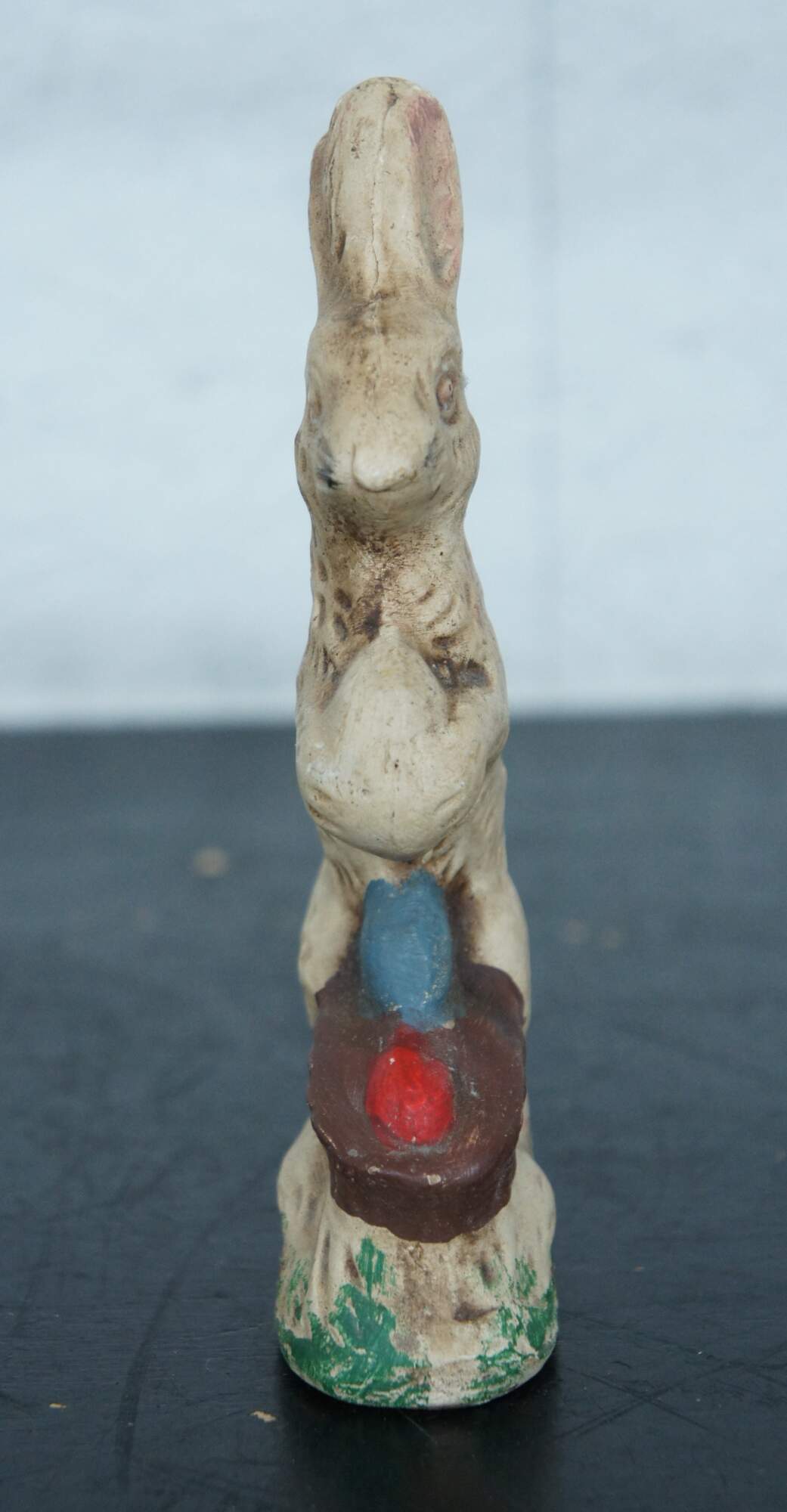 Early to mid 20th century chalkware Easter Rabbit with a basket of eggs, shaped as if formed in a chocolate mold.