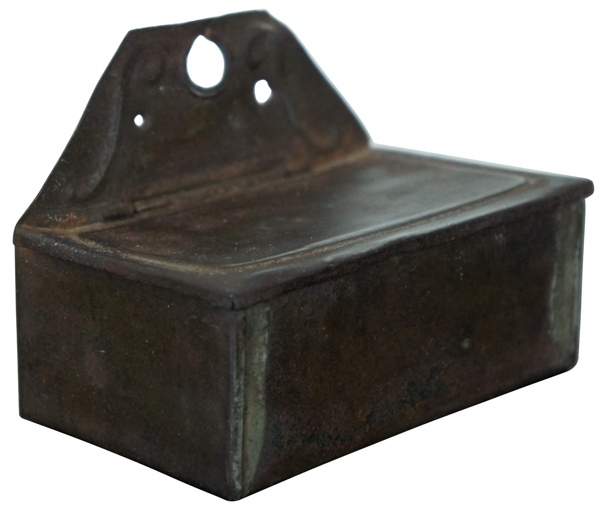 Antique folk art wall hanging match safe with simple scroll work accents.