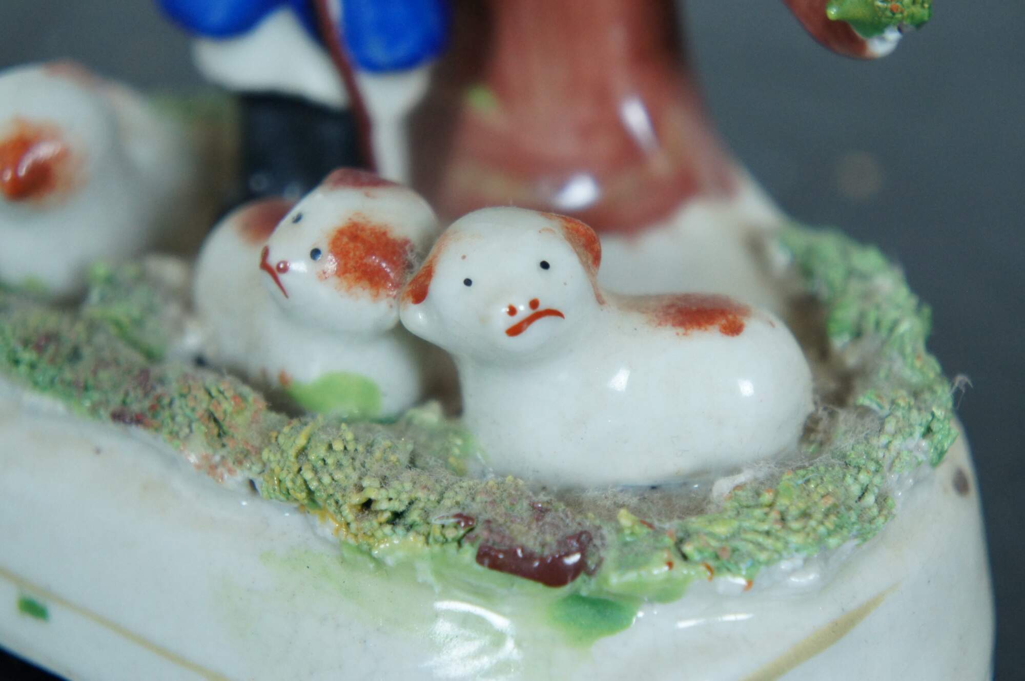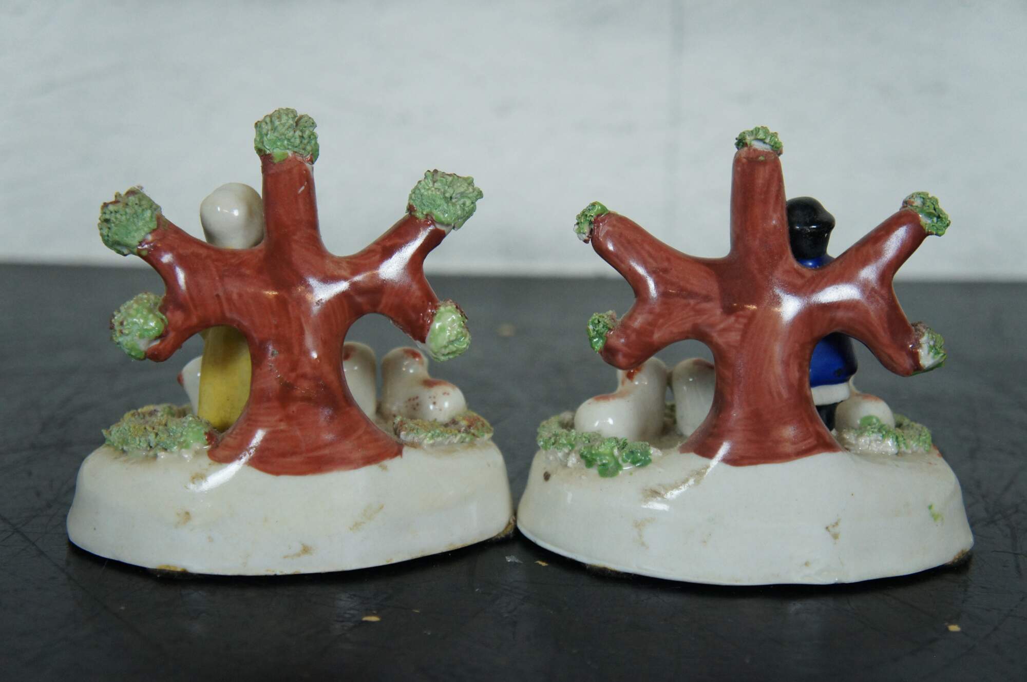 2 Antique Dudson English Staffordshire Pearlware Bocage Shepherd Figures 5"
