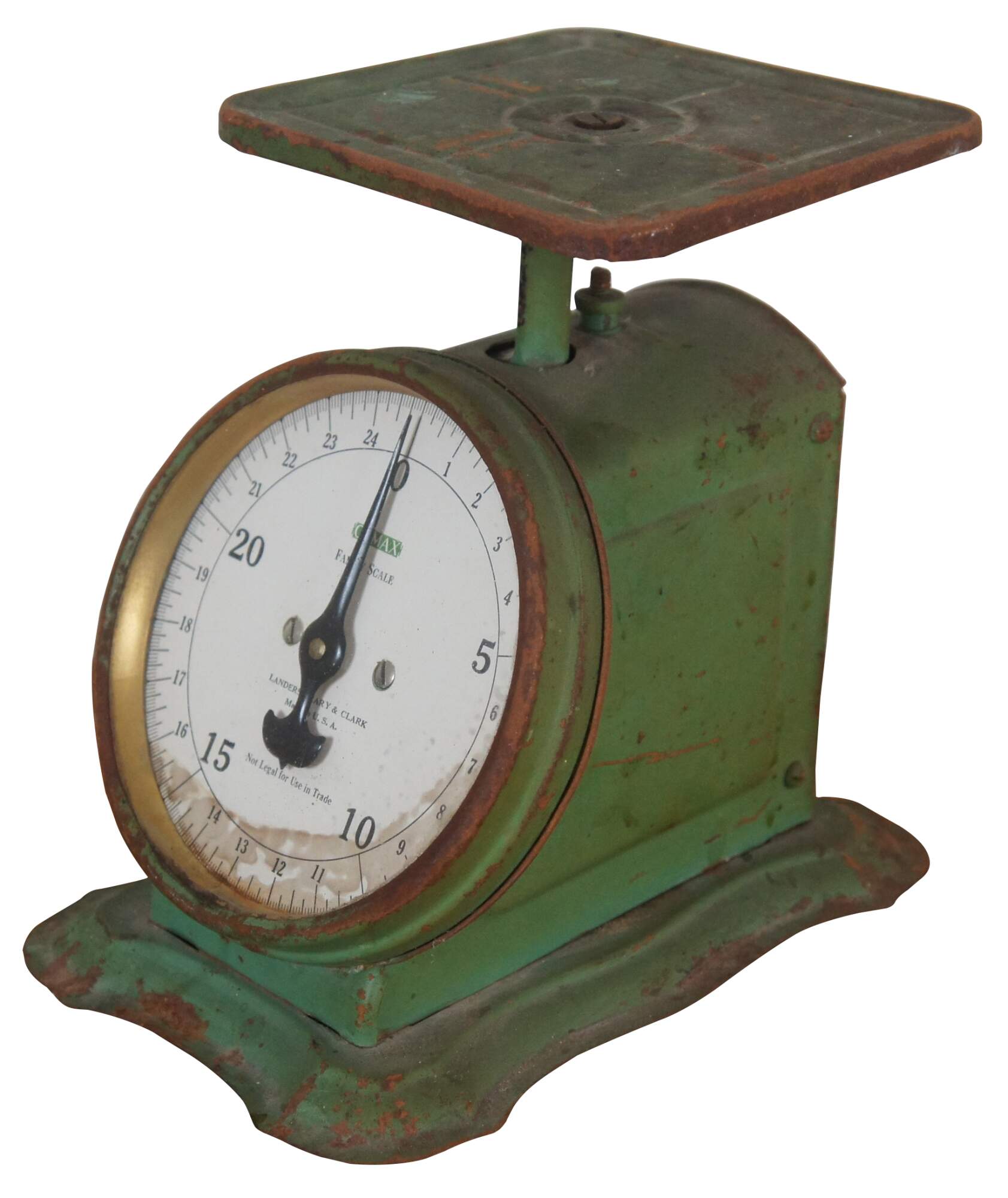 Antique Landers, Frary & Clark Climax Family Scale, marked as Not Legal for Use in Trade, painted green. Functional.