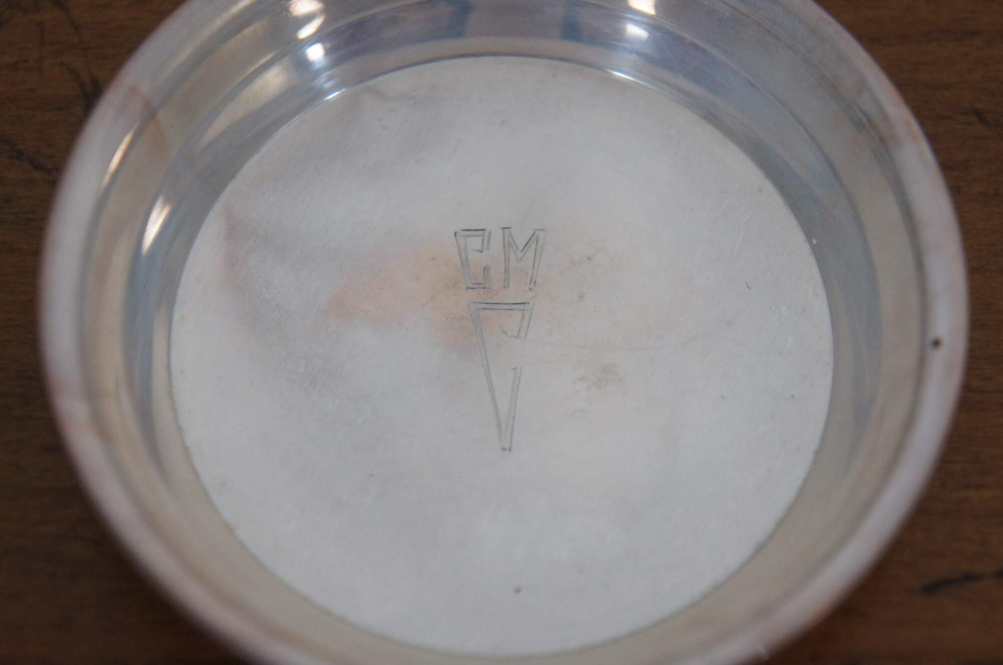 Set of eight vintage Webster Co sterling silver drink coasters engraved with the initials CMC. North Attleboro, MA - founded in 1869 by George K. Webster.