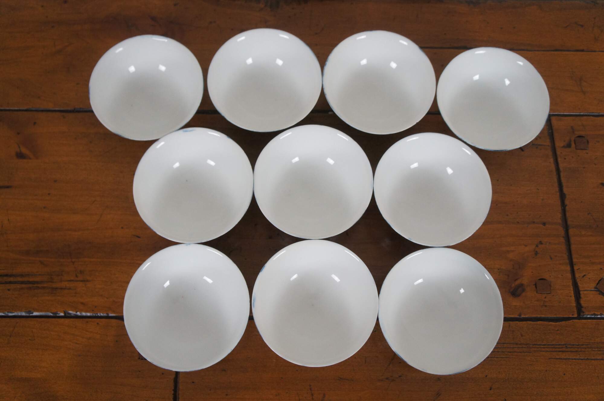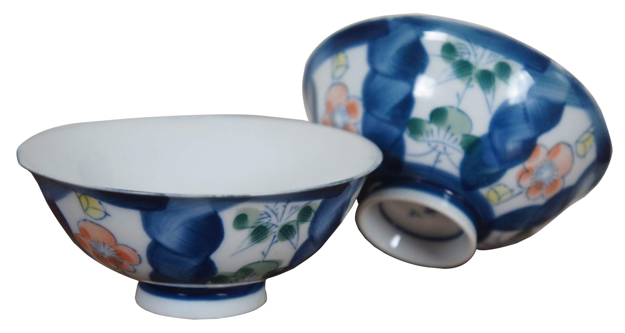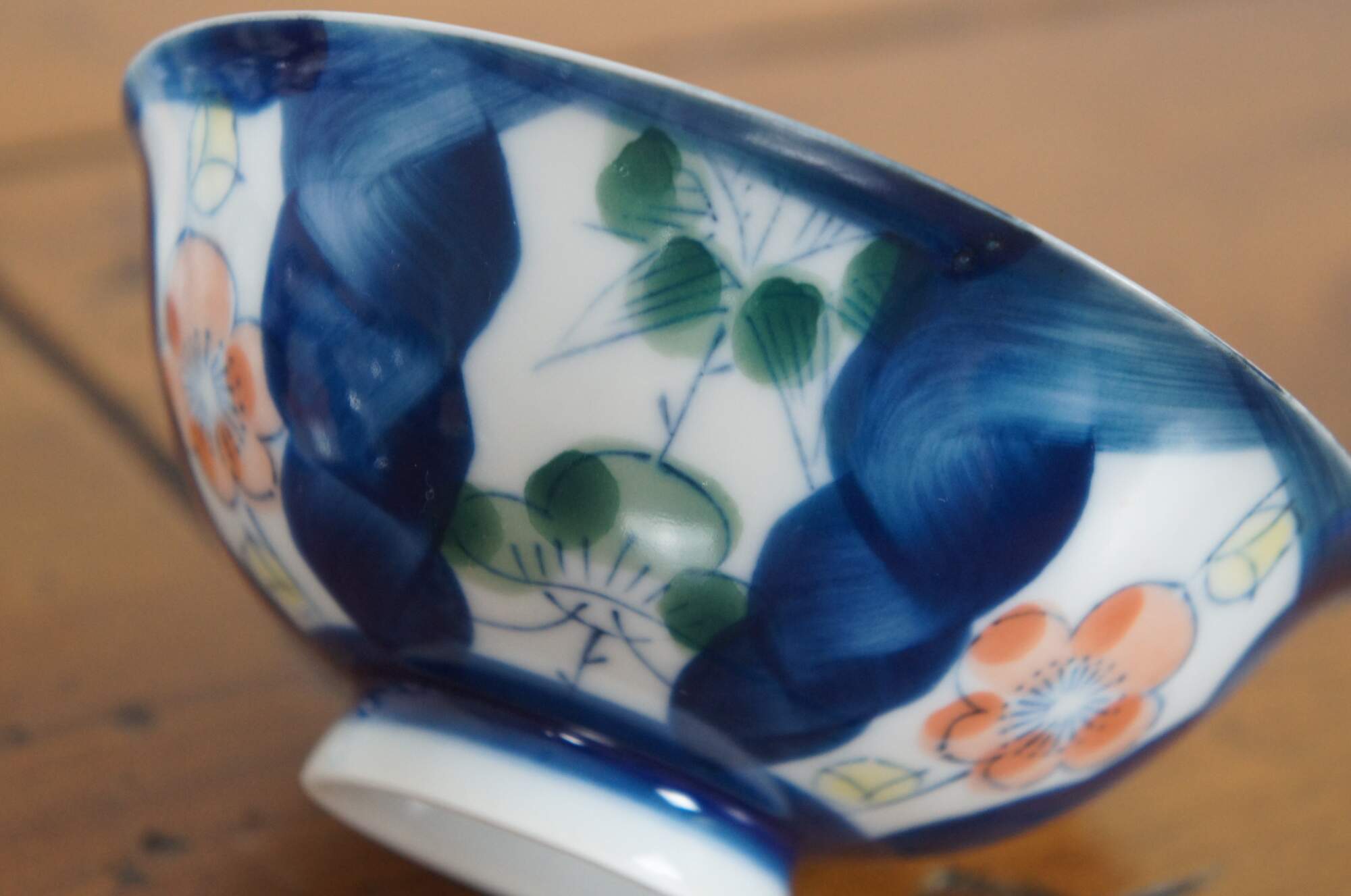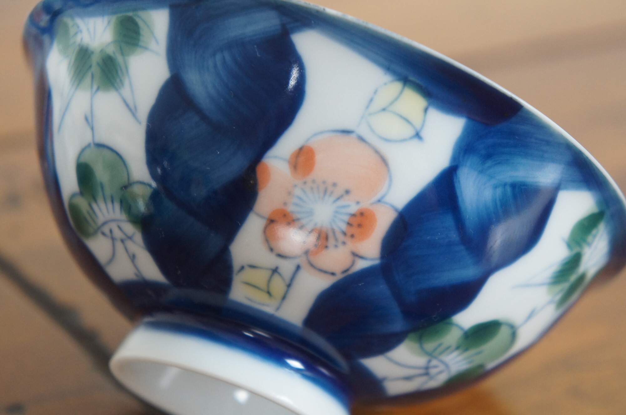 Vintage set of ten Japanese rice bowls painted with an imari / arita style with blue, peach and green florals.