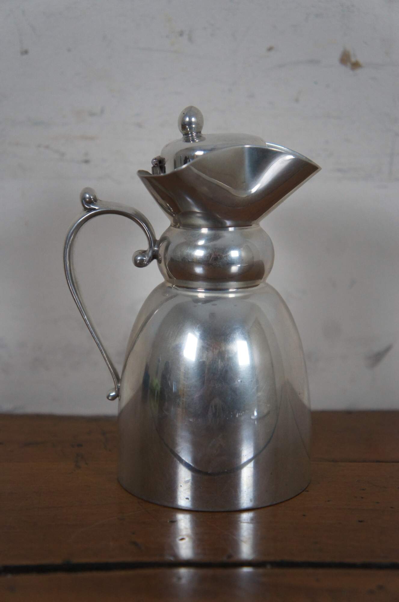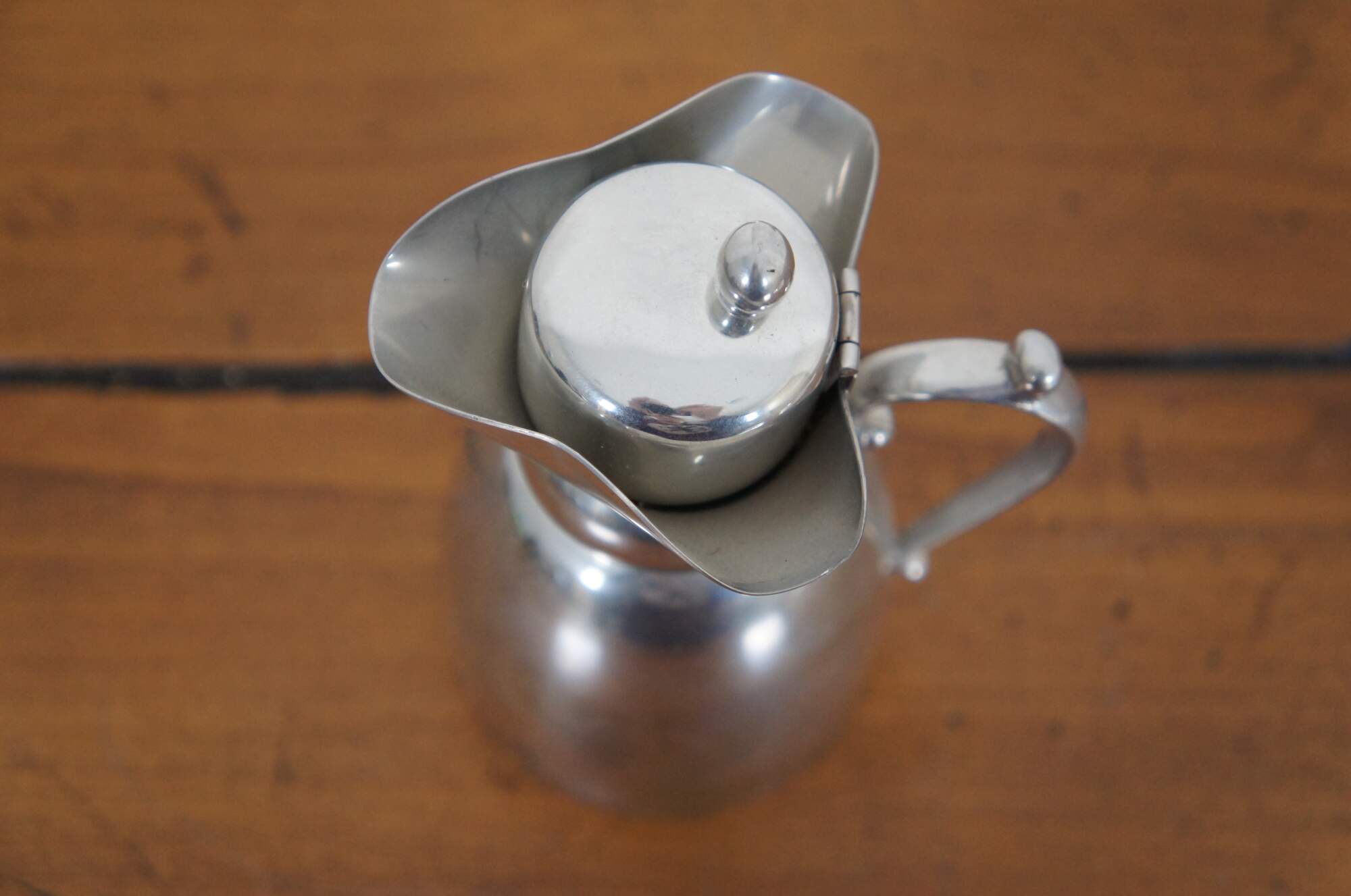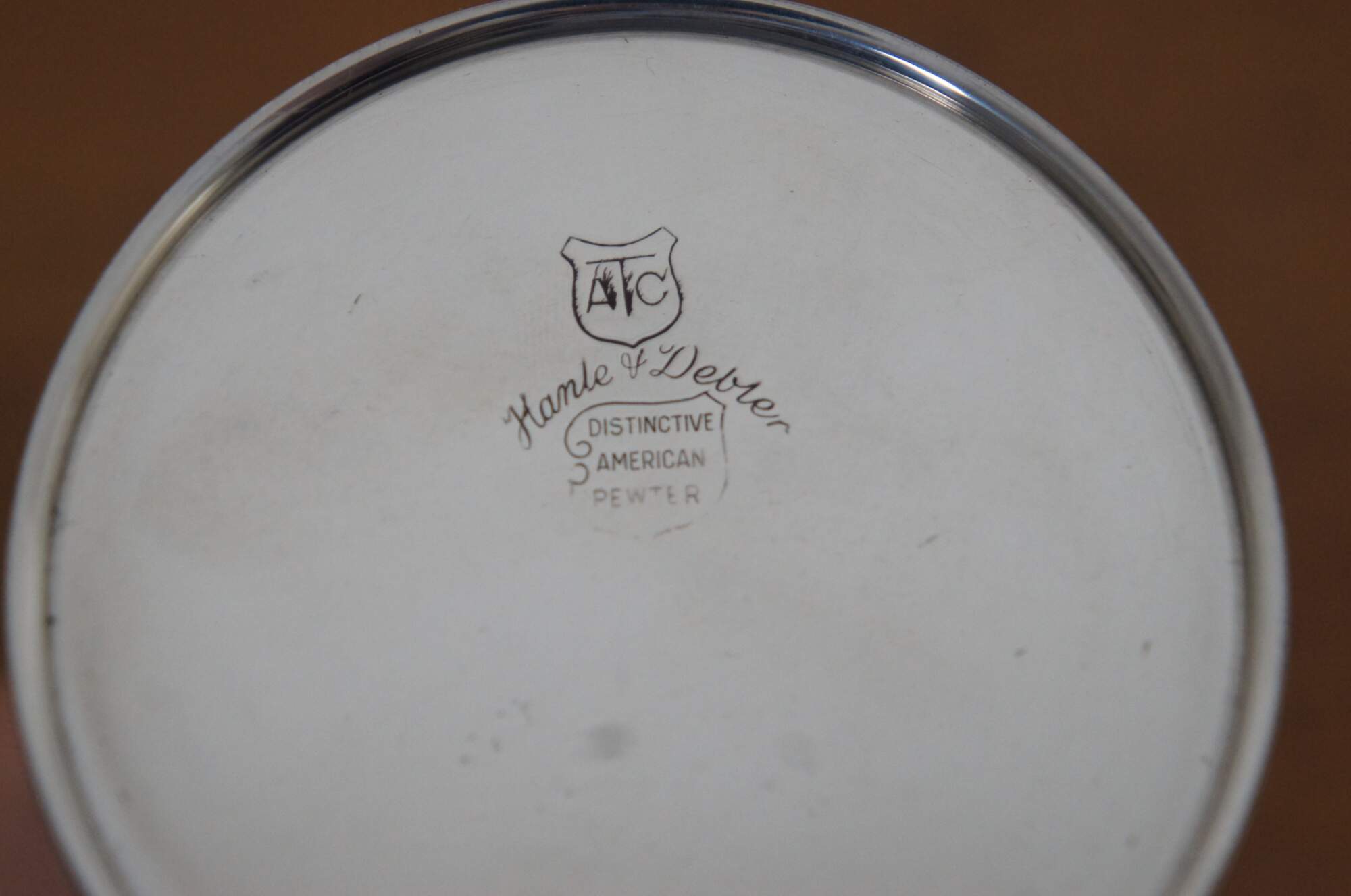 Vintage ATC Hanle & Debler Distinctive American Pewter cream or syrup pitcher and underplate.