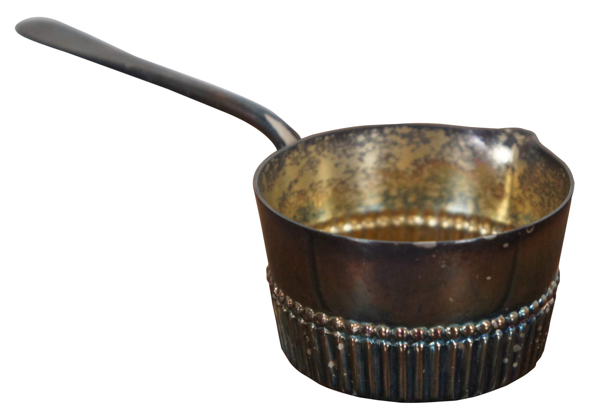 Early to mid 1800s sterling silver measuring scoop with spout by Taylor and Lawrie with fluted and beaded sides and small pour spout.. “Philadelphia, PA - Active ca. 1837-1850. Working silversmiths Robert H. Taylor and Robert D. Lawrie; Taylor was Scottish, Lawrie was Irish, hence the thistle and harp in their manufacturer's mark, often seen with other retailer's mark.”