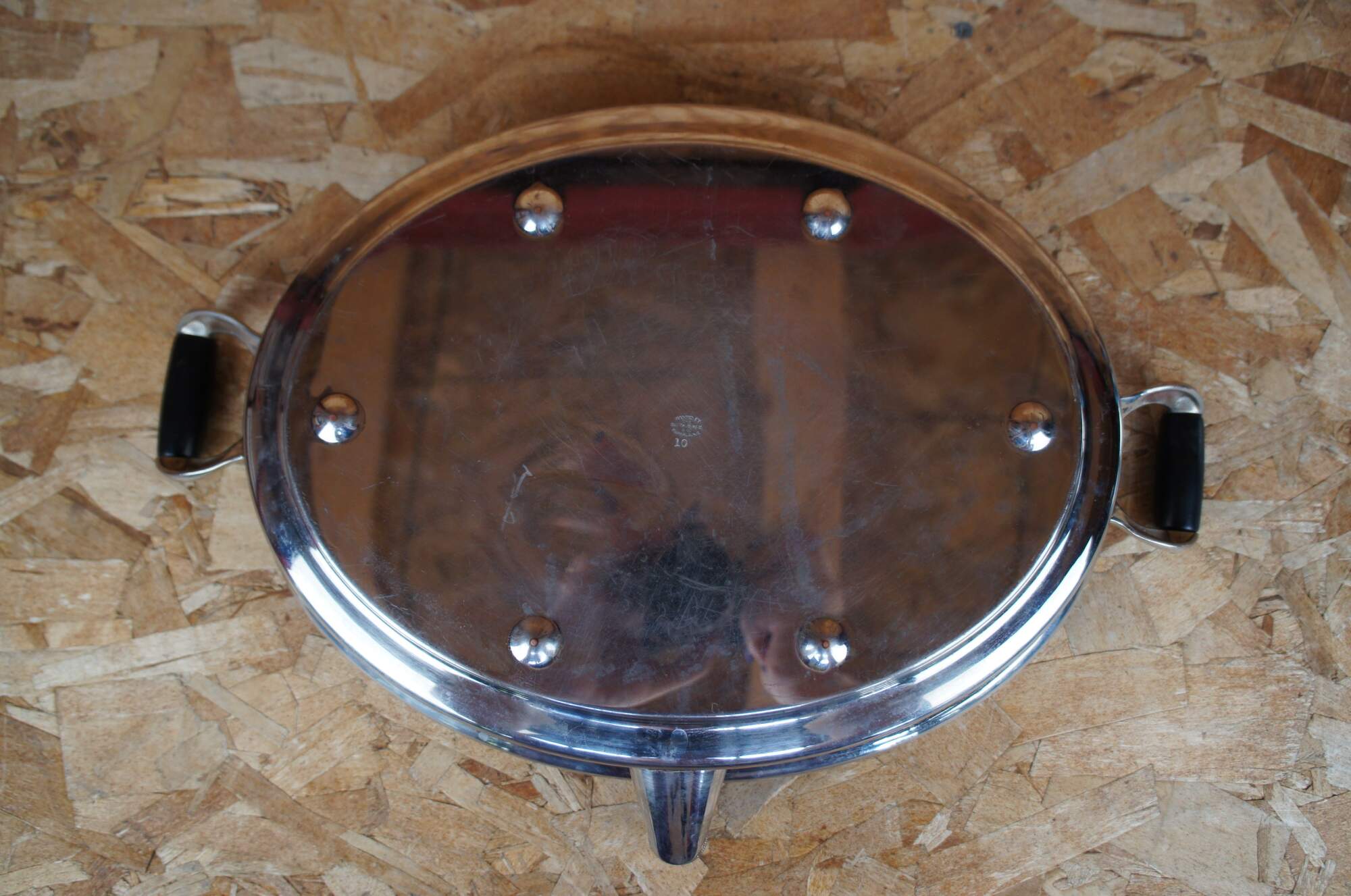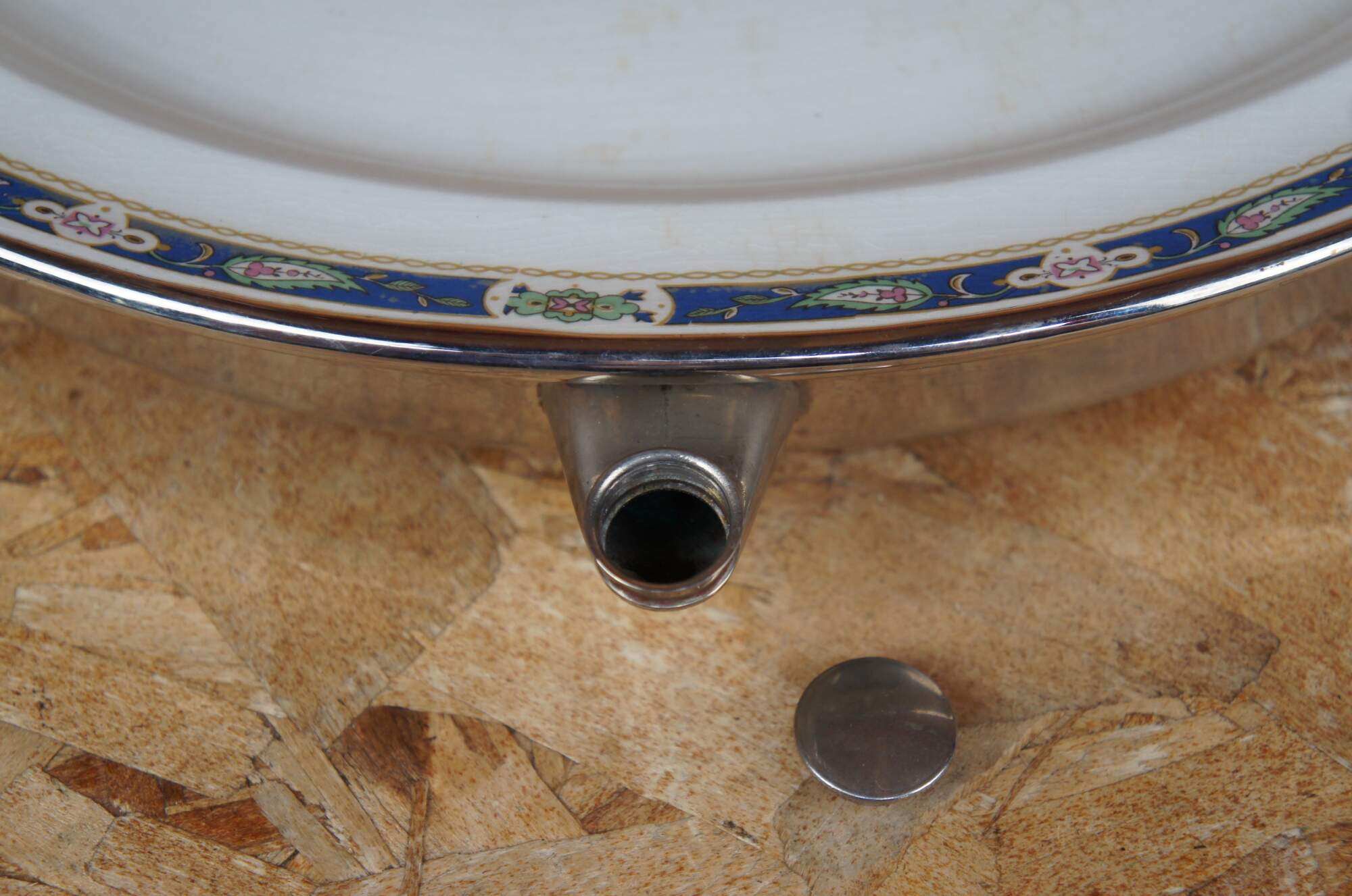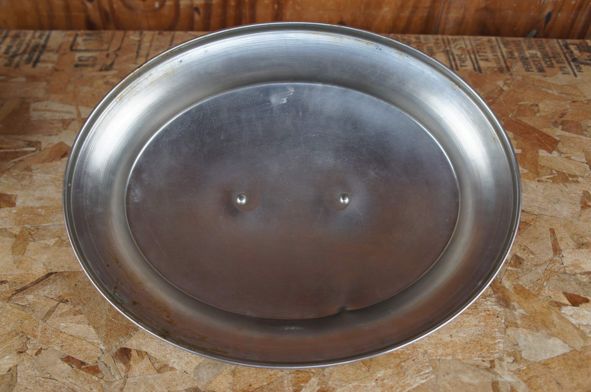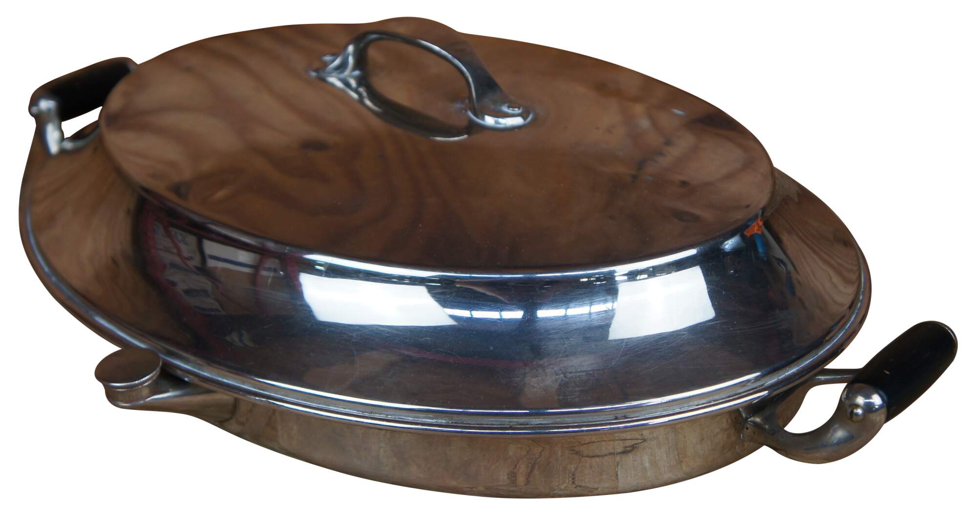 Antique silver plate covered warming platter / chafing dish featuring floral pattern made by Buffalo Manufacturing Company.