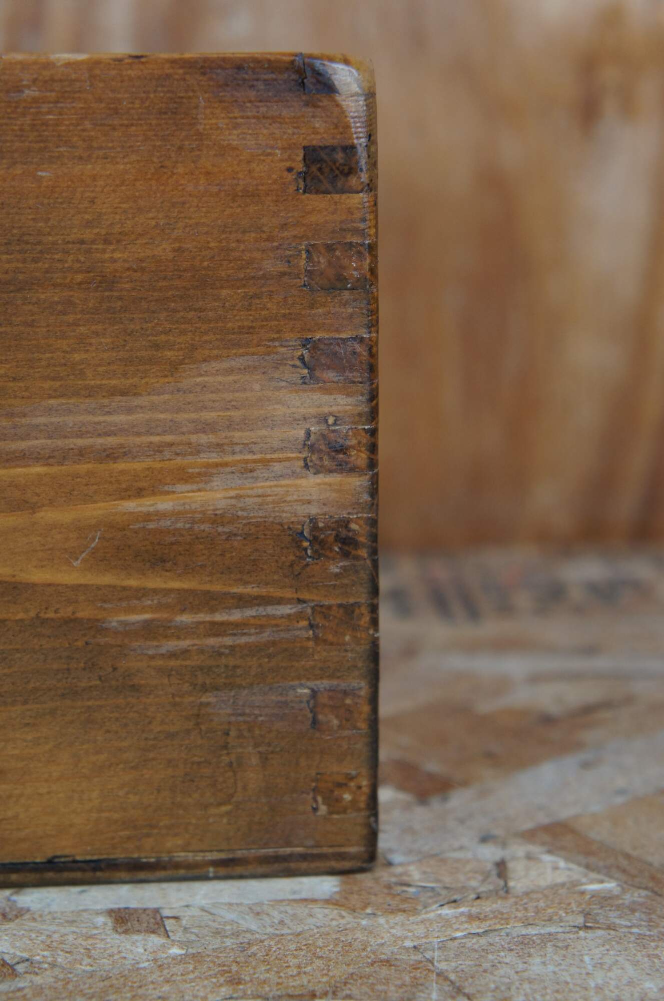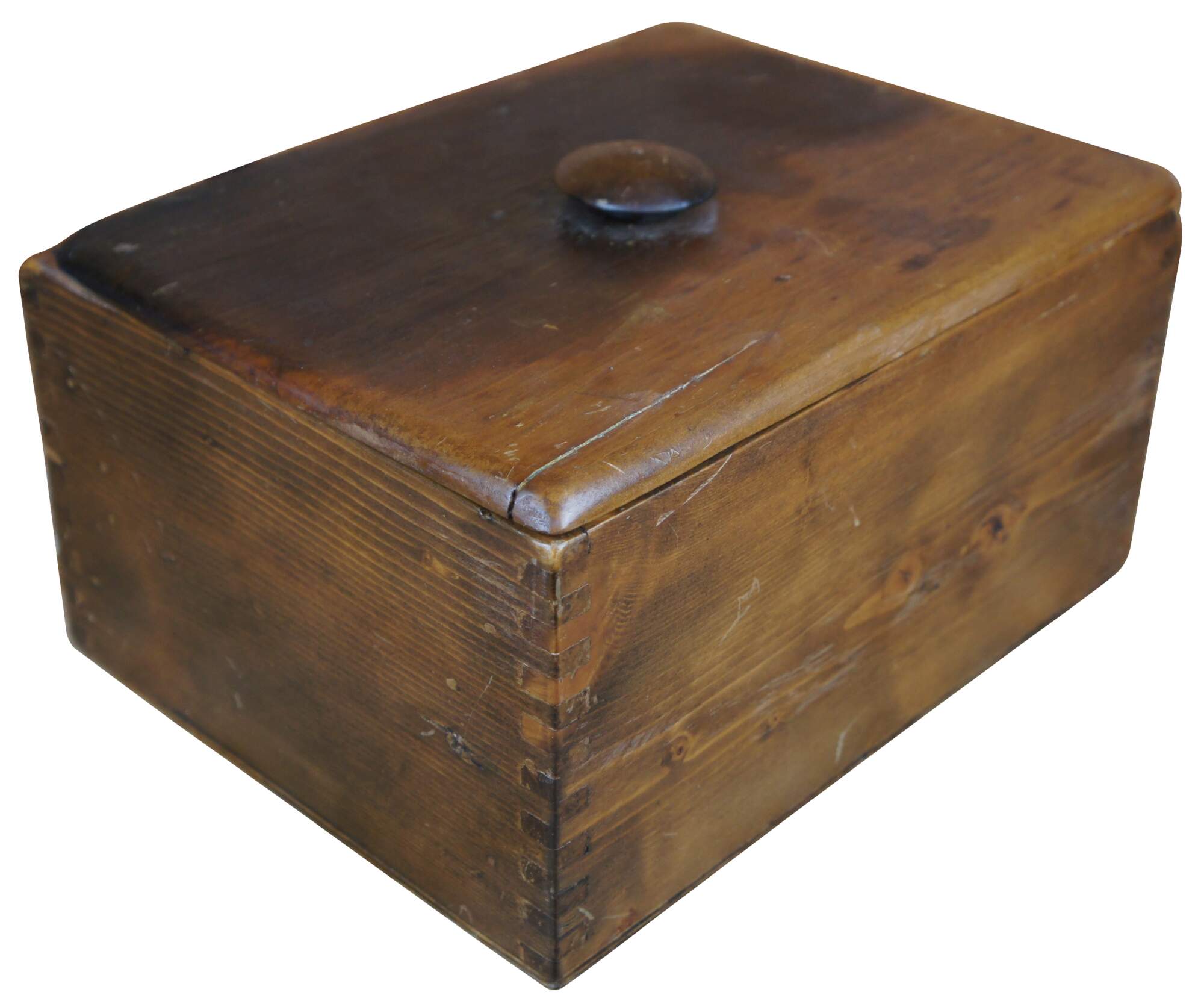 Antique pine keepsake storage tea caddy / candle or letter box featuring fingertailed joinery and detached lid with nob handle.