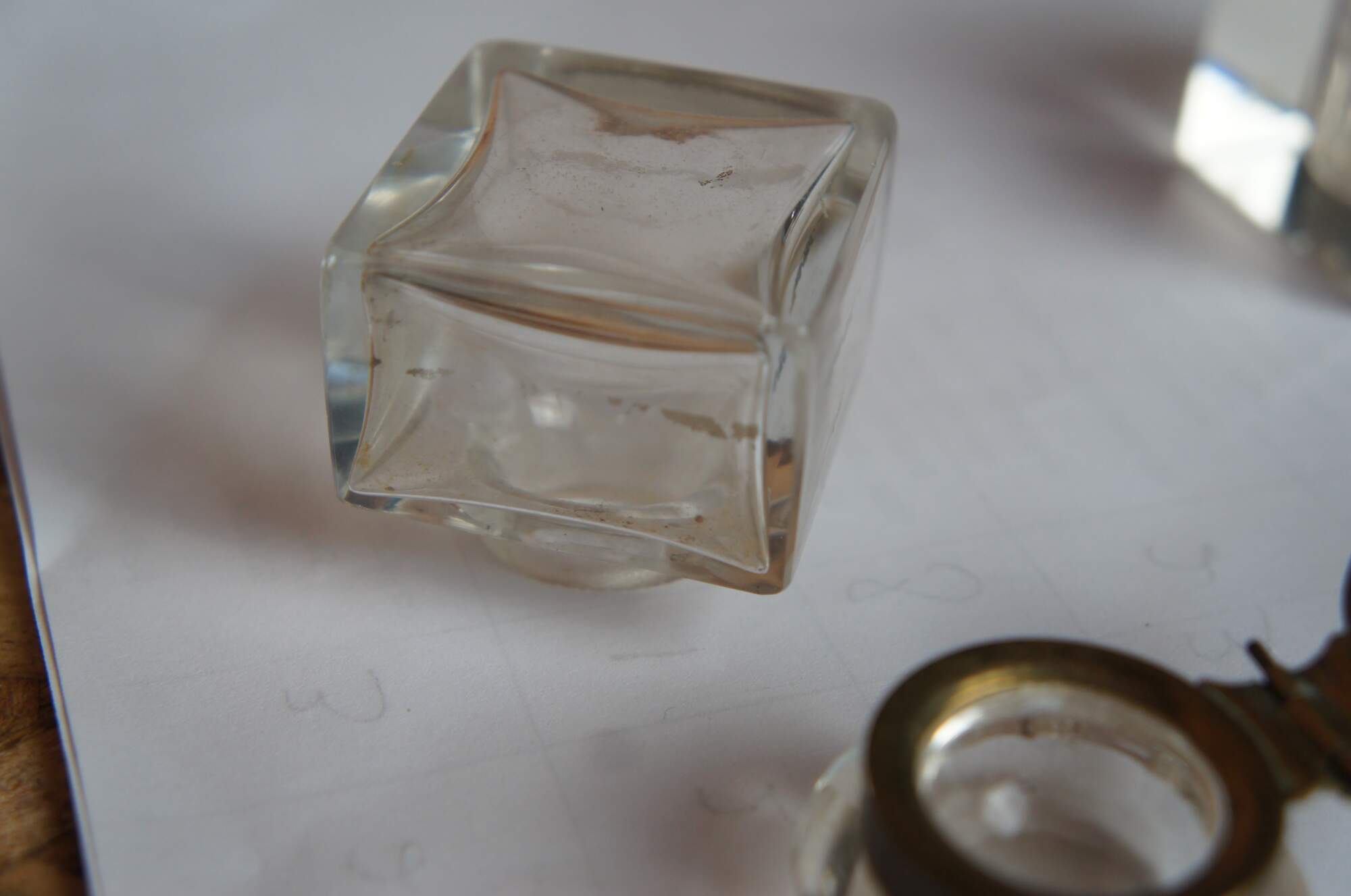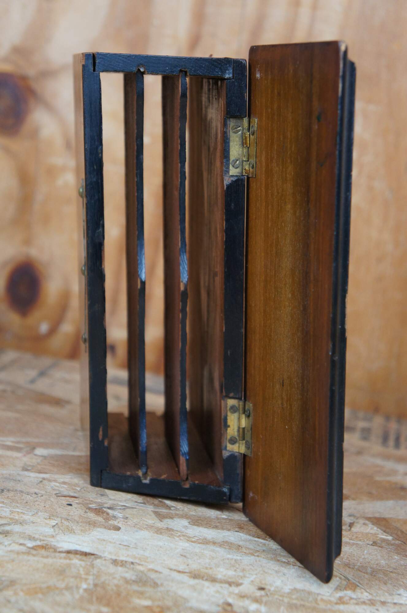 Antique 19th Century Victorian Walnut Double Inkwell Desk Letter Box Stand 11"