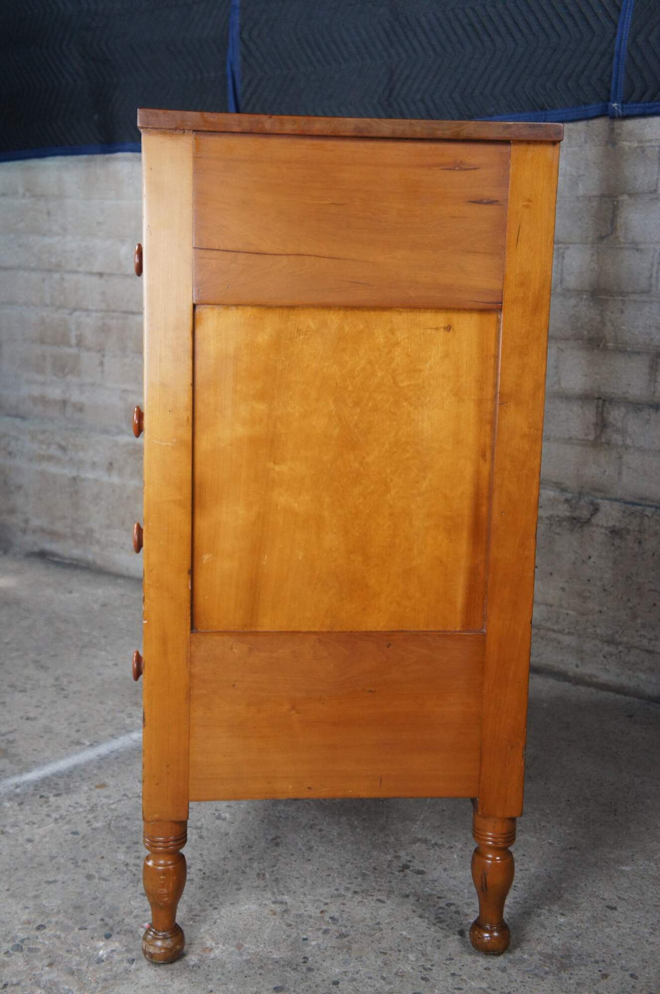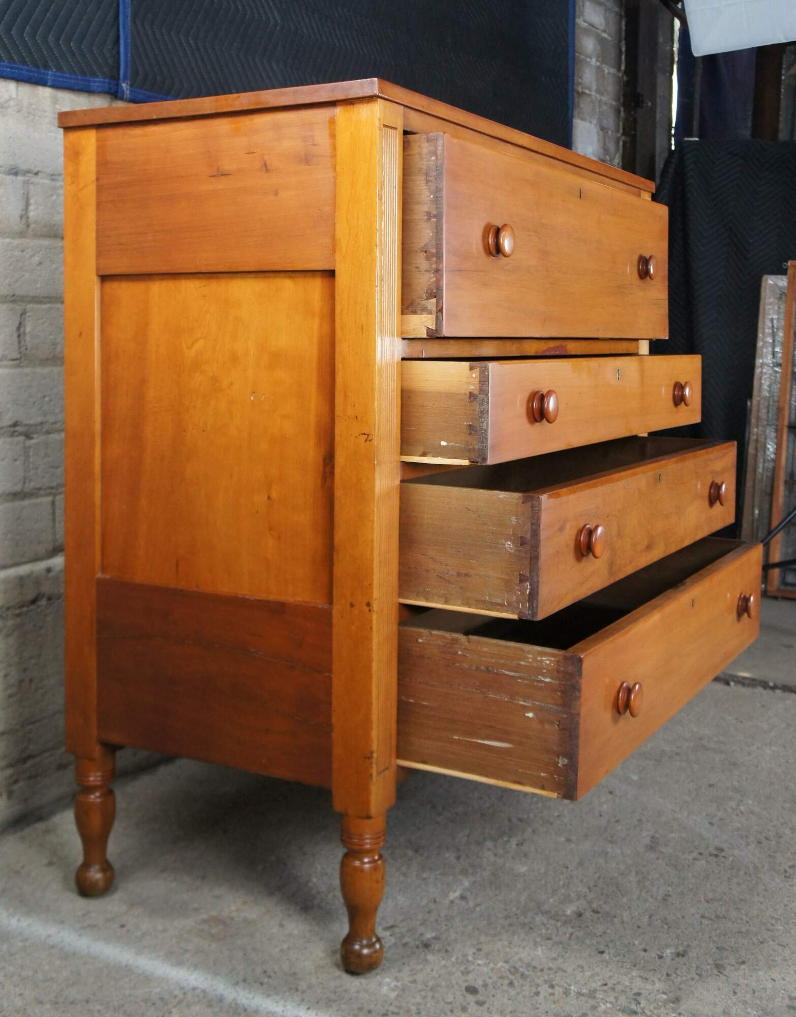 Impressive American tallboy dresser, circa 1840s (late Federal Era). A rectangular form made from solid cherry with four hand dovetailed drawers, fluted stiles and turned ribbed turnip feet. Includes lockable drawers and smooth lathed drawer pulls.