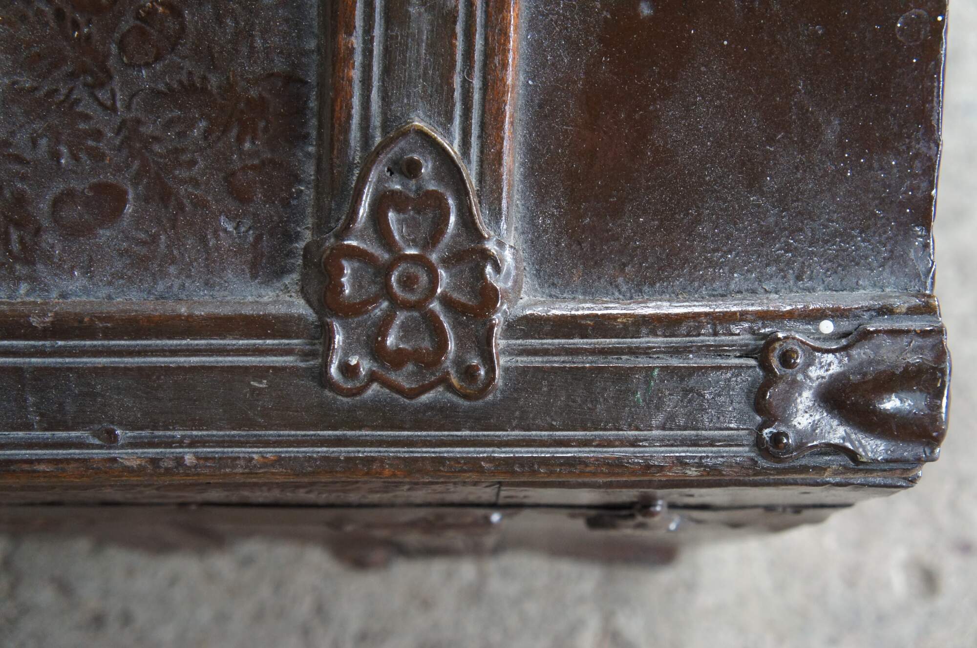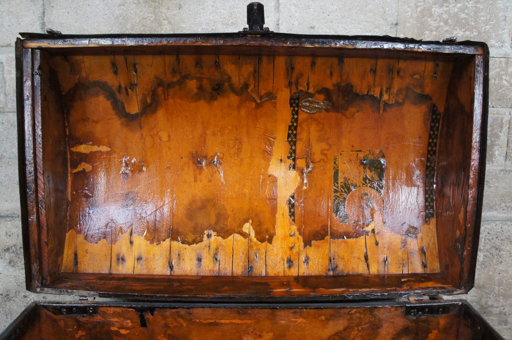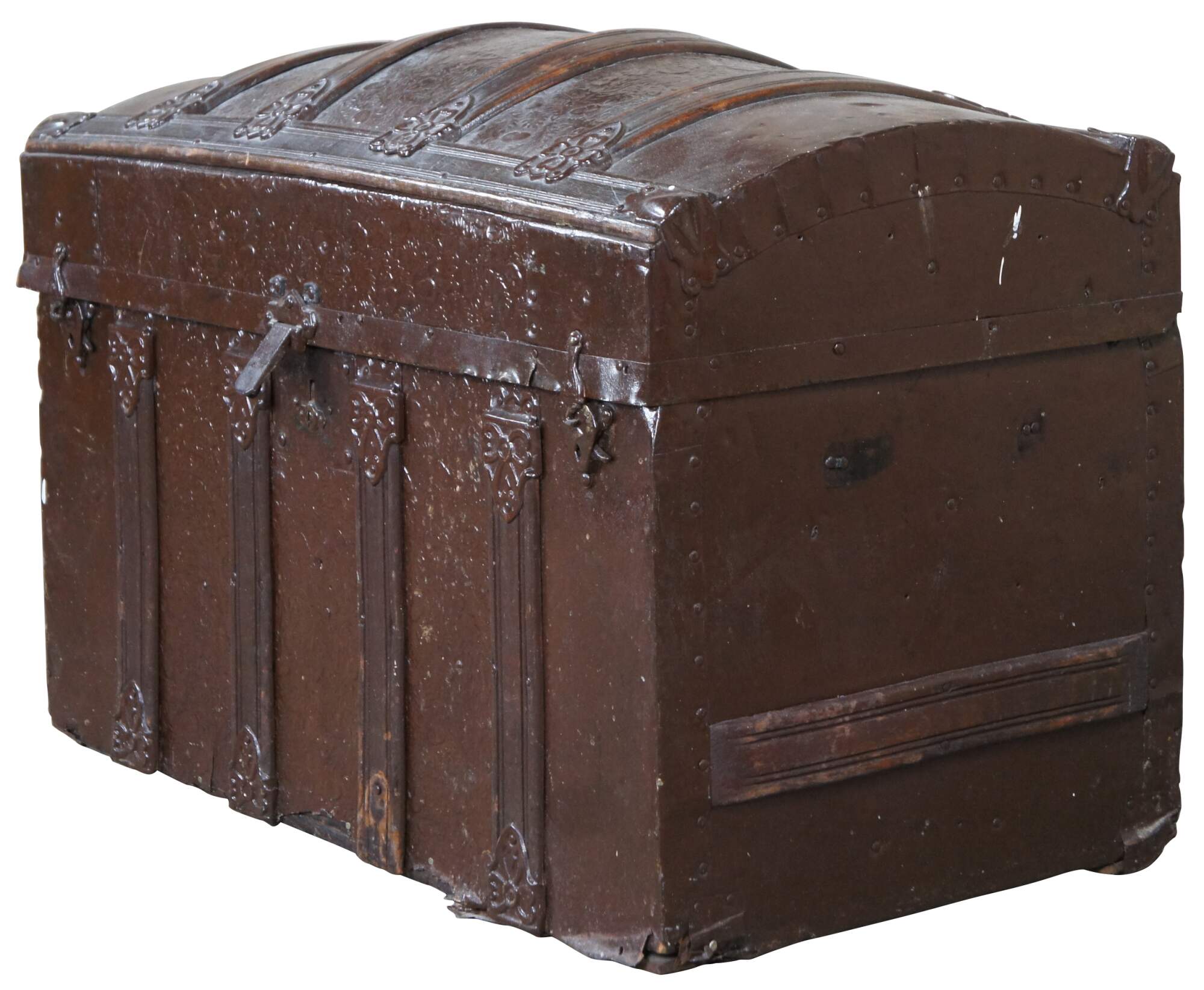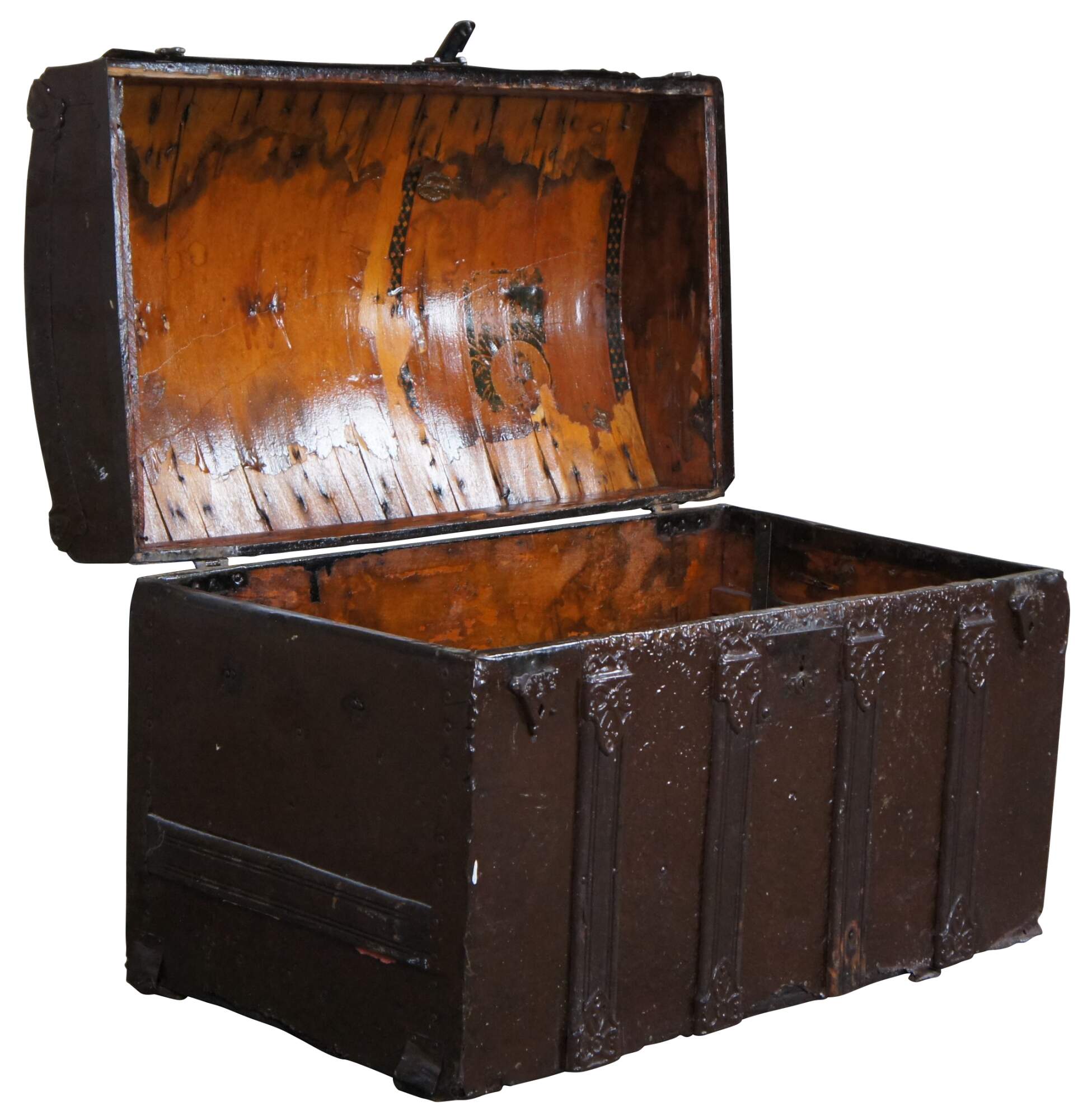 Victorian Dome top trunk. Presssed metal with banded oak top.