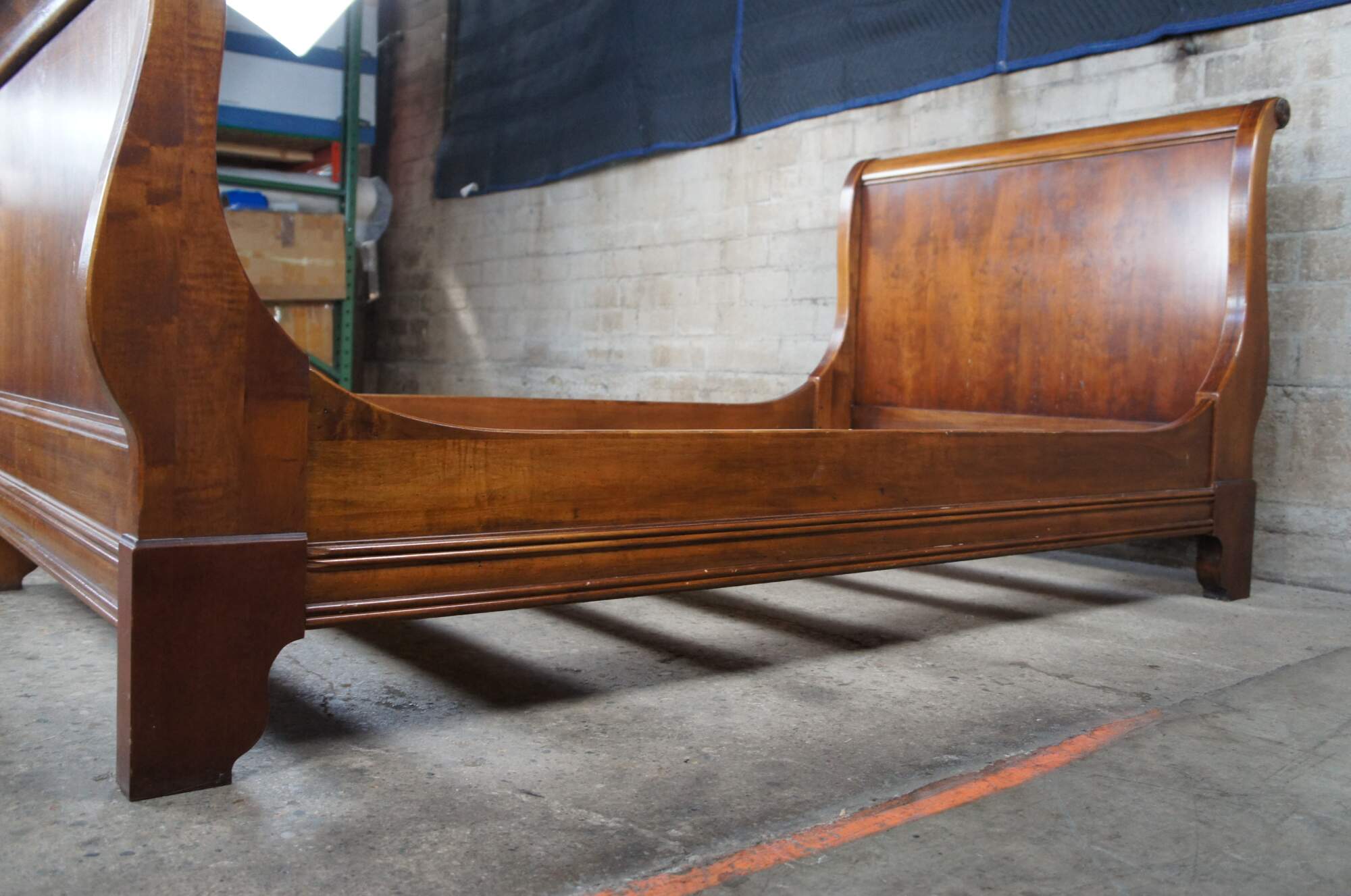 Late 20th century Louis Phillipe style twin sleigh bed. Made from cherry with classic form and floret medallions along the corners of the head and footboard.