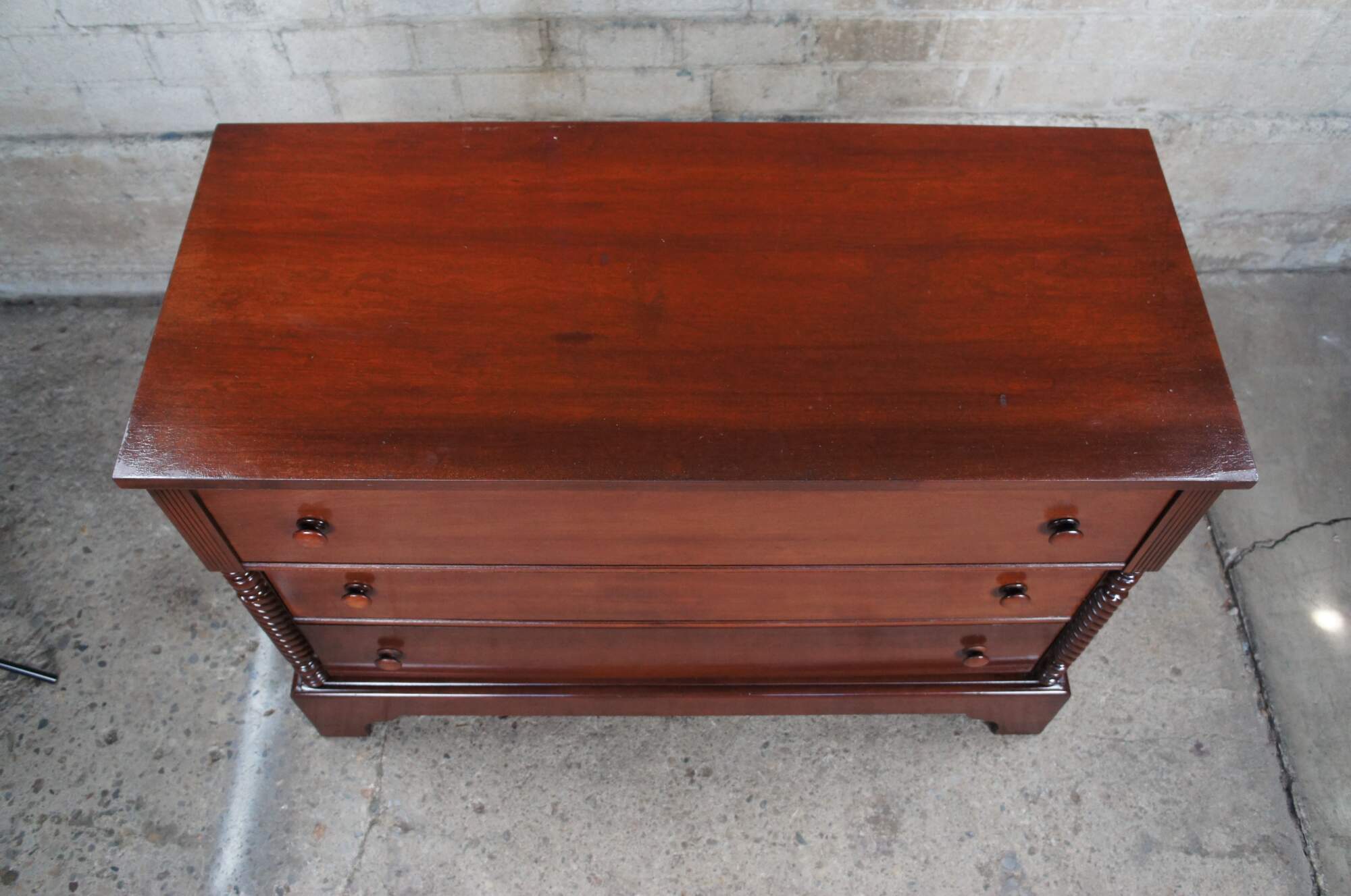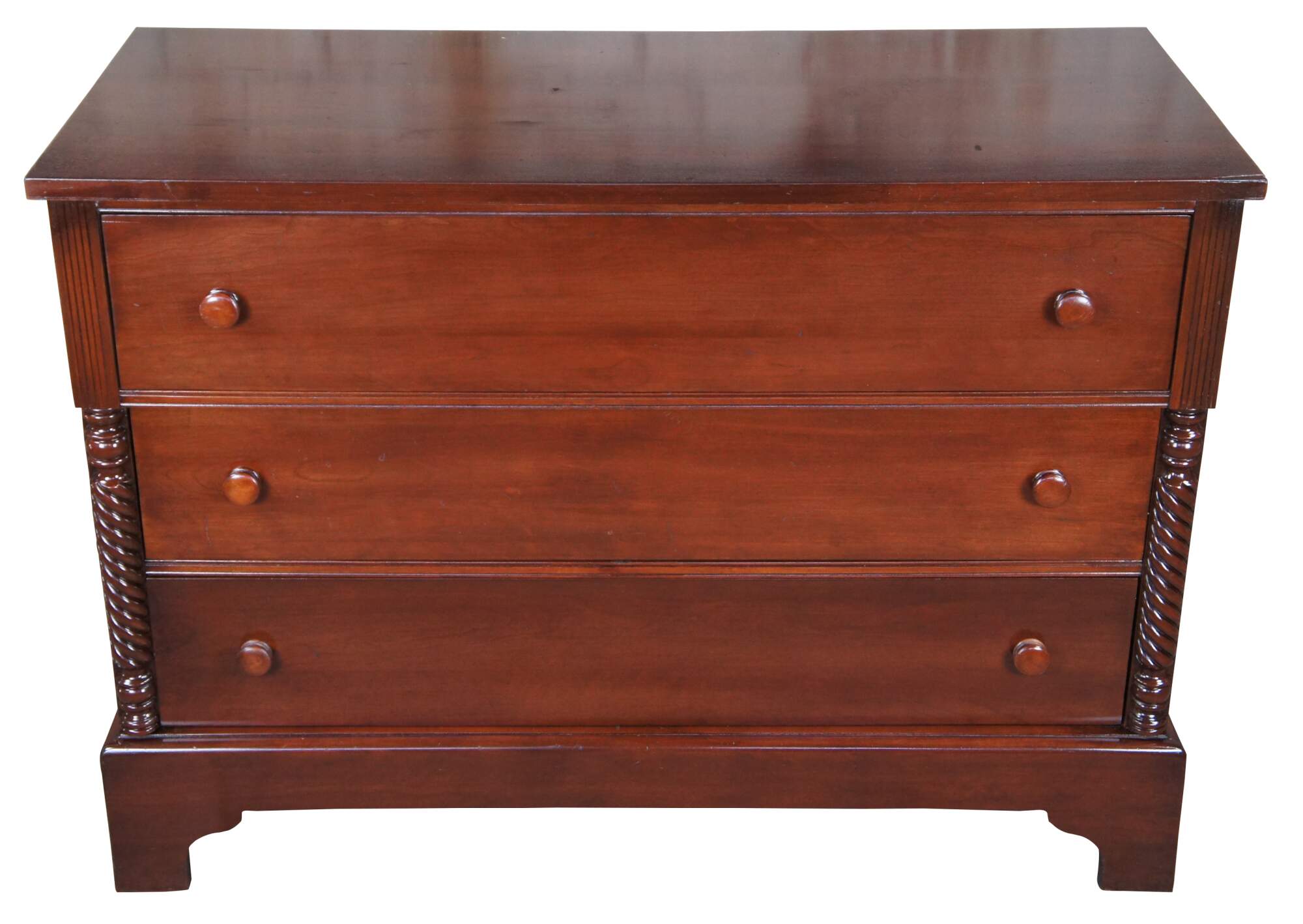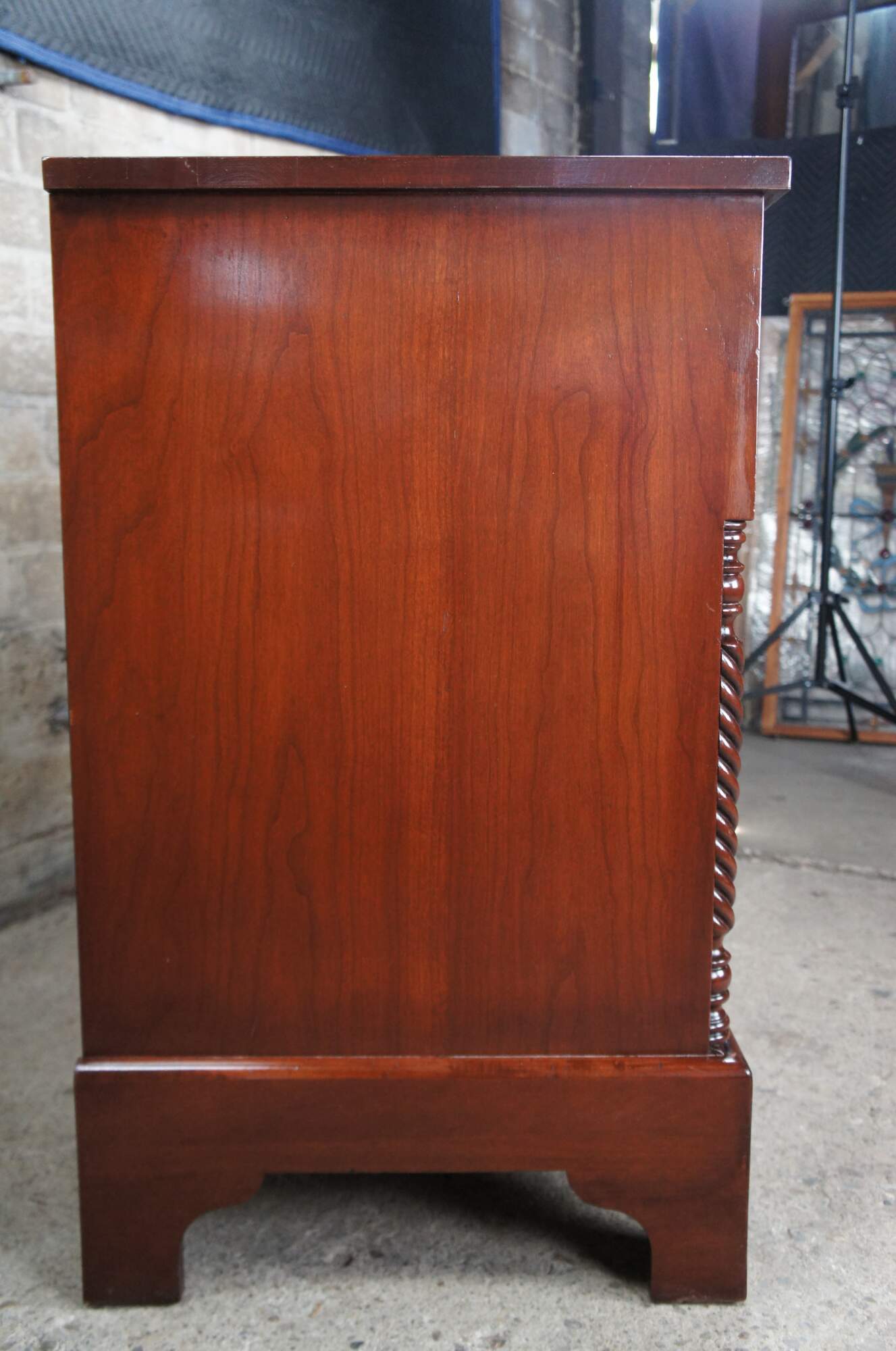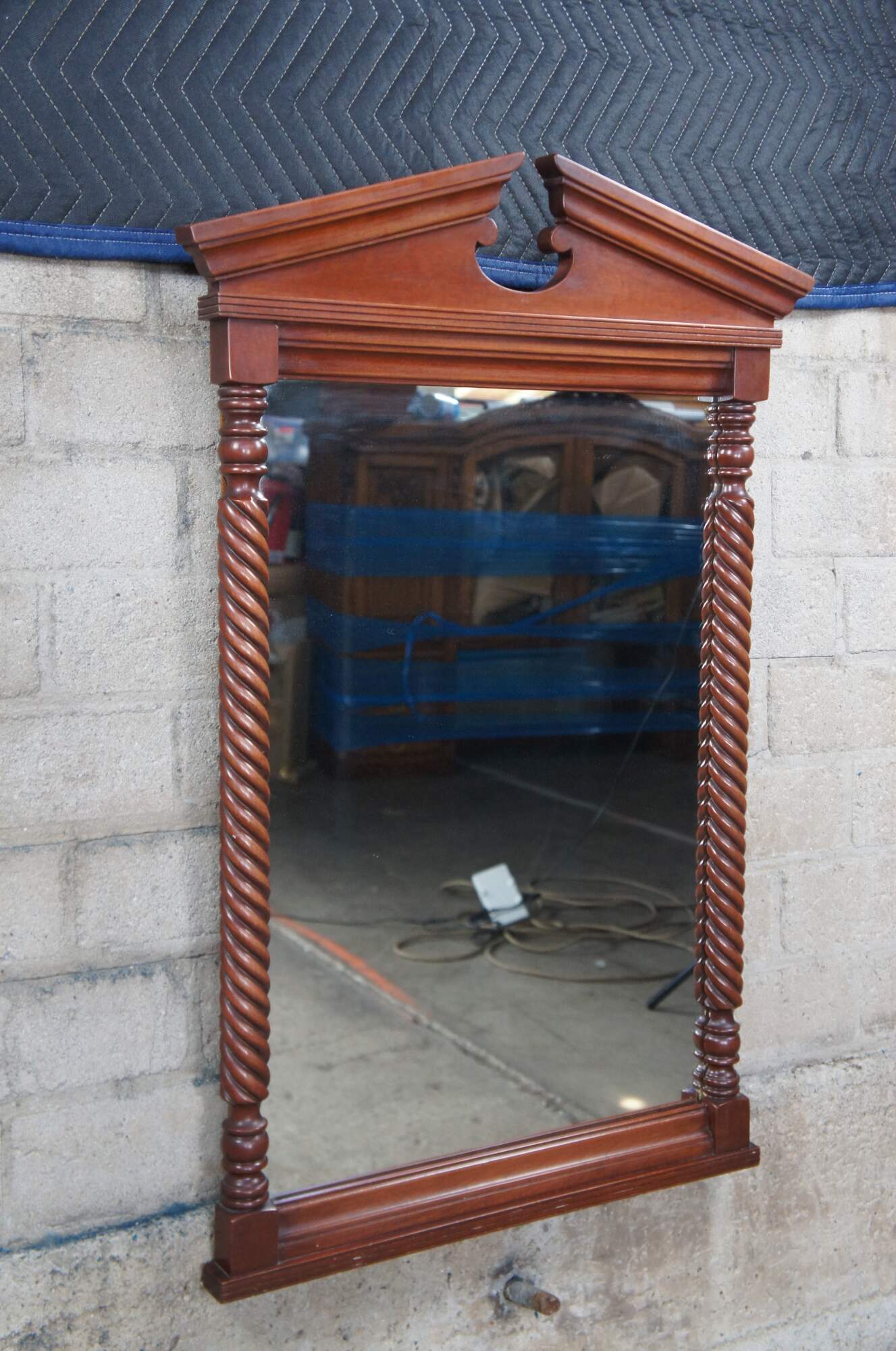 American Federal Revival Dresser & Mirror, circa first half 20th century. Marked "Cherry Styled by Park". Features a rectangular form lowboy chest of three drawers with half cut applied barley twist columns along the outer stiles. Includes matching mirror with open pediment. Made from solid cherry.