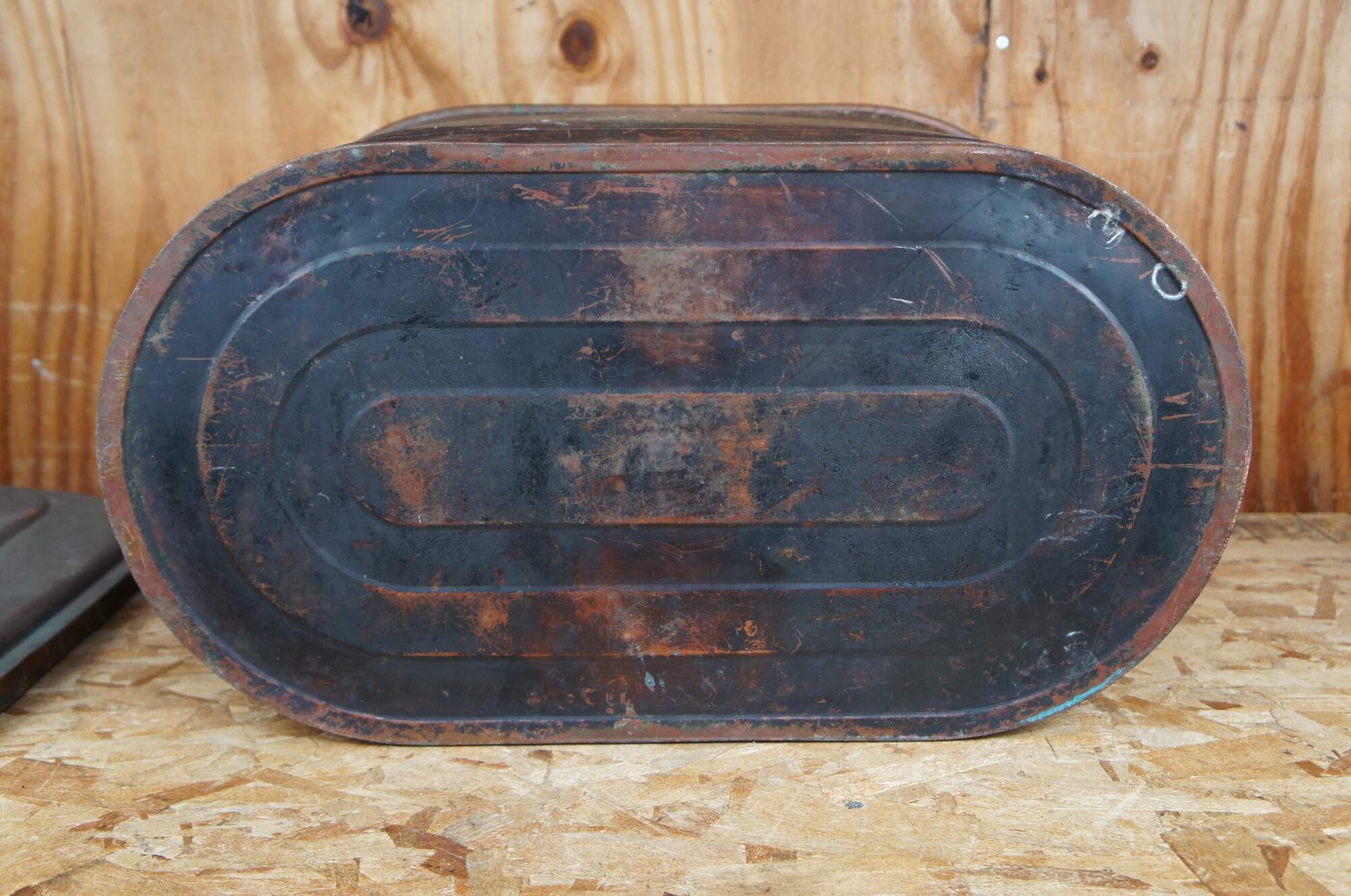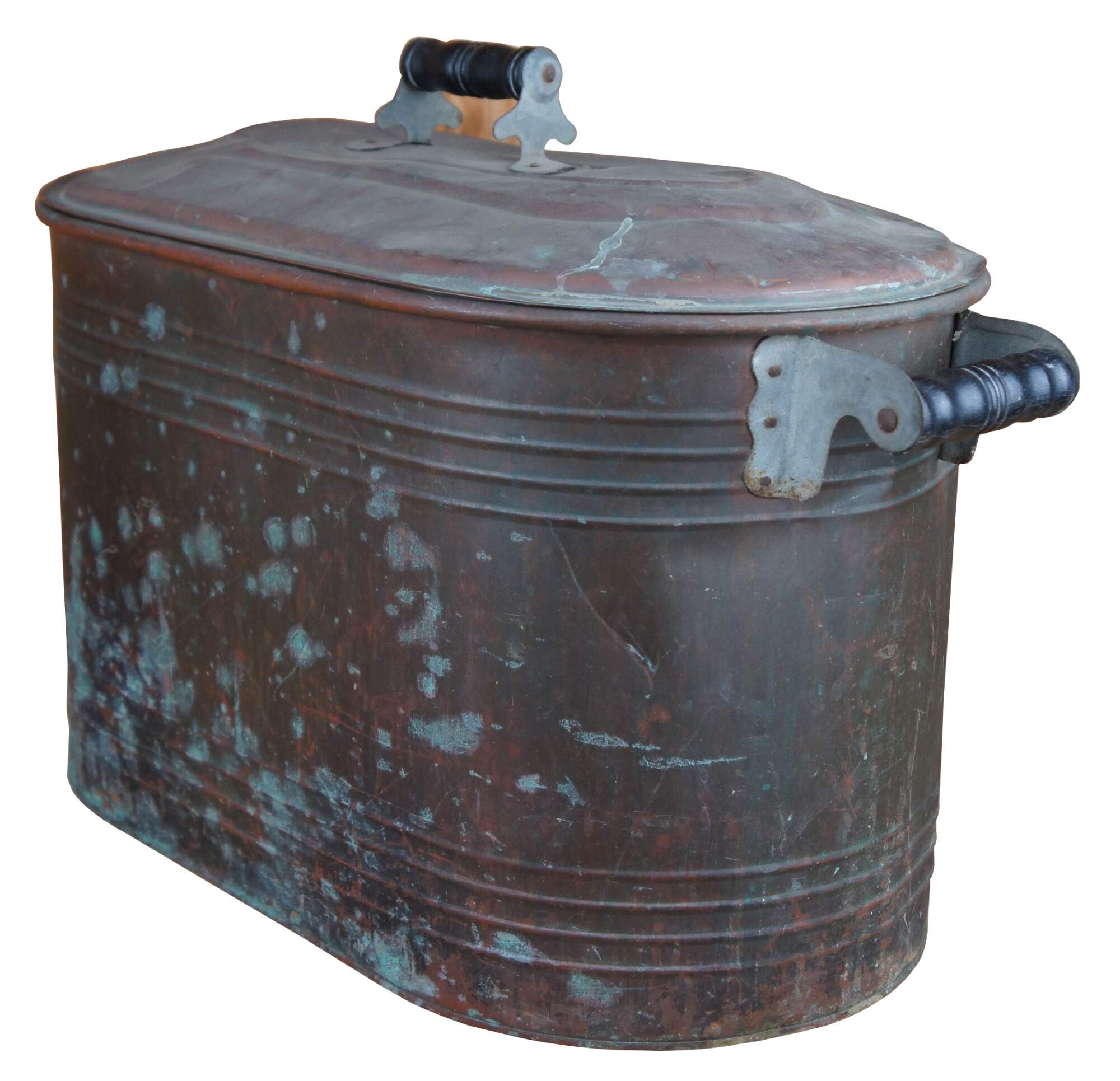 Antique Galvanized Copper Boiler Wash Tub Farmhouse Fireplace Coal Log Bin Lid