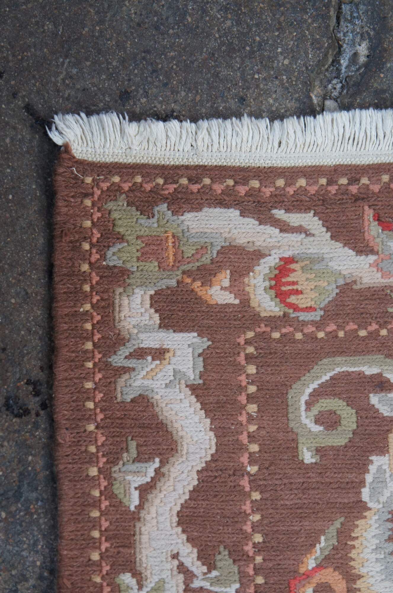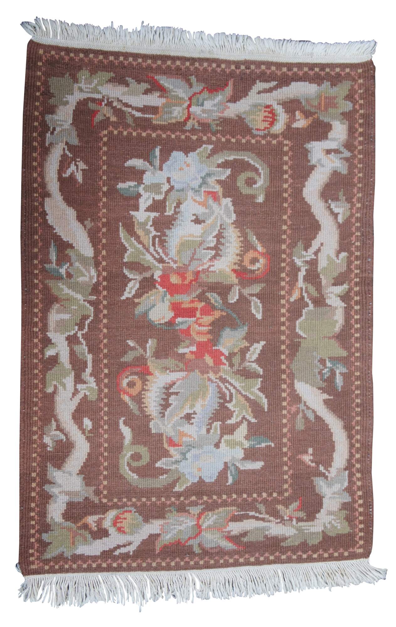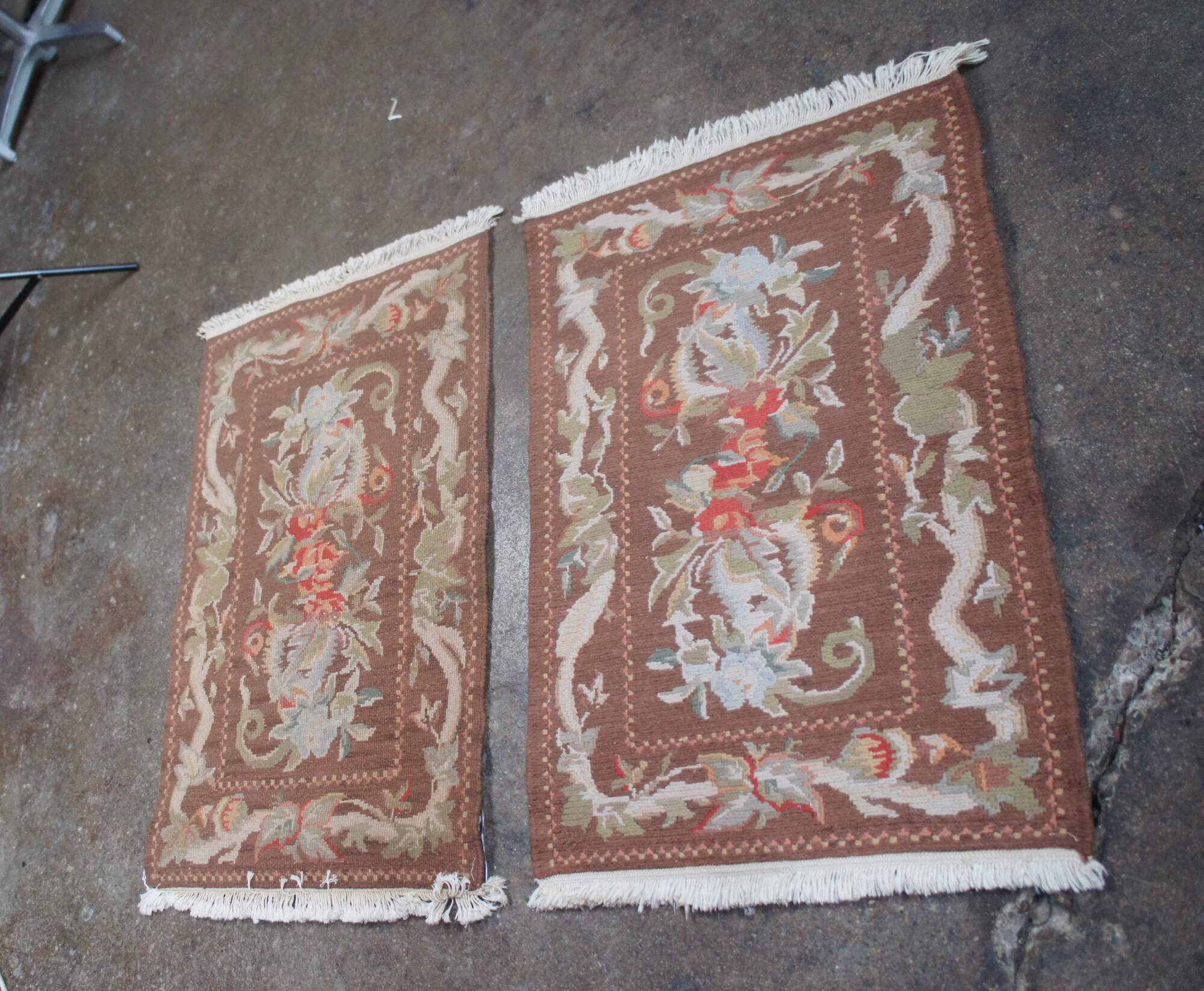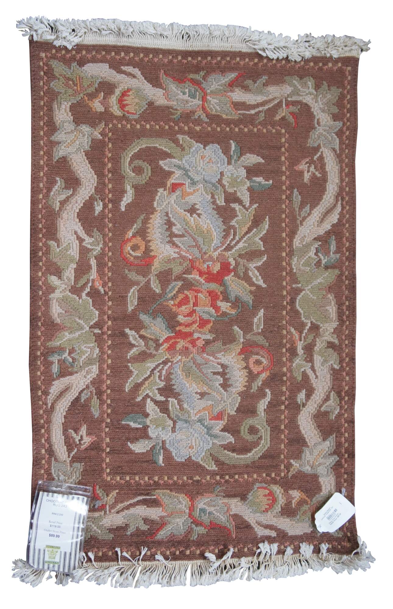 Pair of Ballard Designs "Chocolat Fleur" floral area rugs.