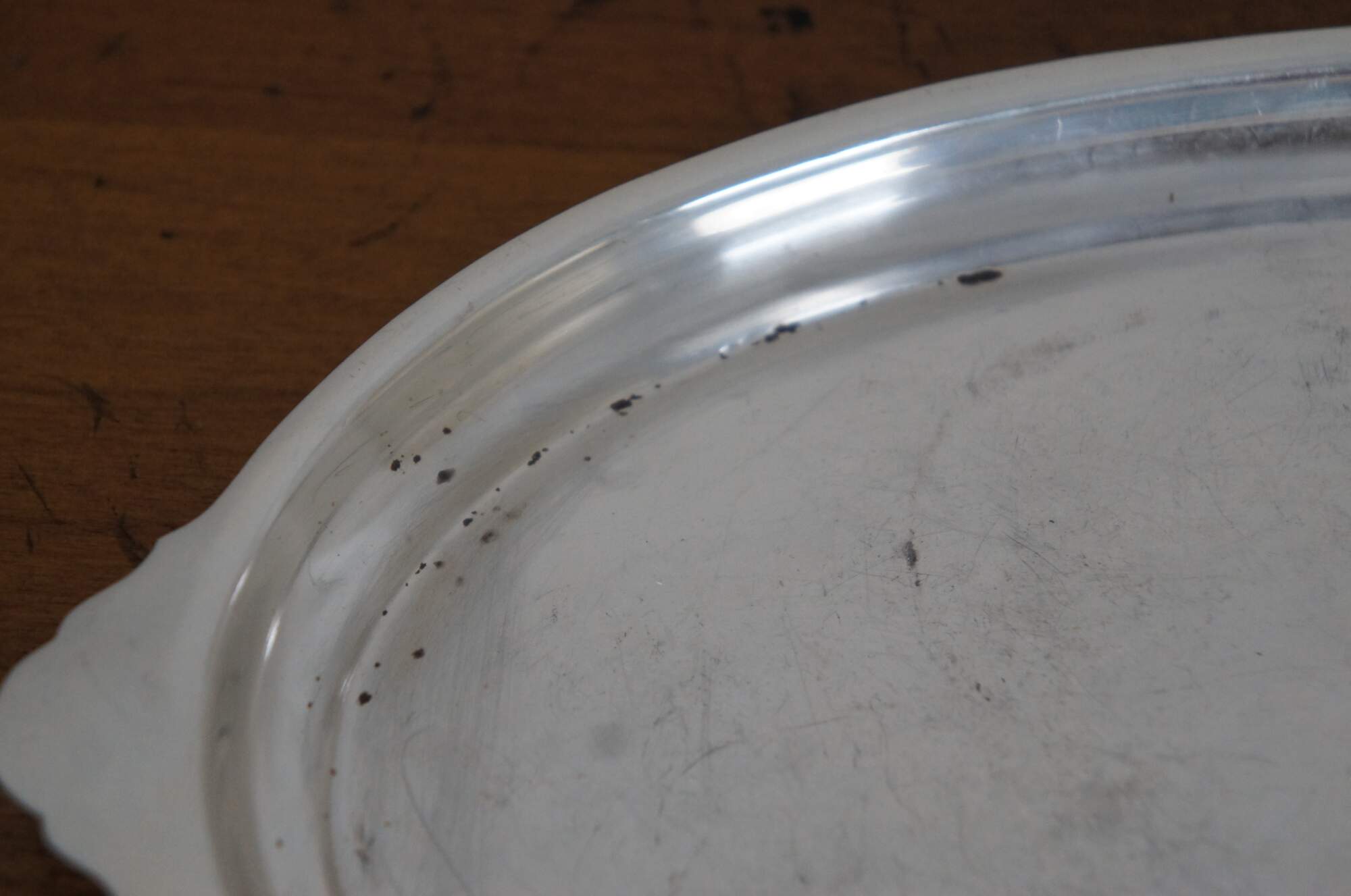 Vintage S. Kirk & Son number 150 sterling silver handled oval bread or bar tray. “Samuel Kirk (February 15, 1793 - July 6, 1872) was an American silversmith, active in Baltimore, Maryland, and best known for his introduction of repoussé to the United States. He engaged in various partnerships with his sons under the names of S. Kirk and Son and S. Kirk and Sons. In 1979 S. Kirk & Son was purchased by the Stieff Company, which renamed itself Kirk Stieff.