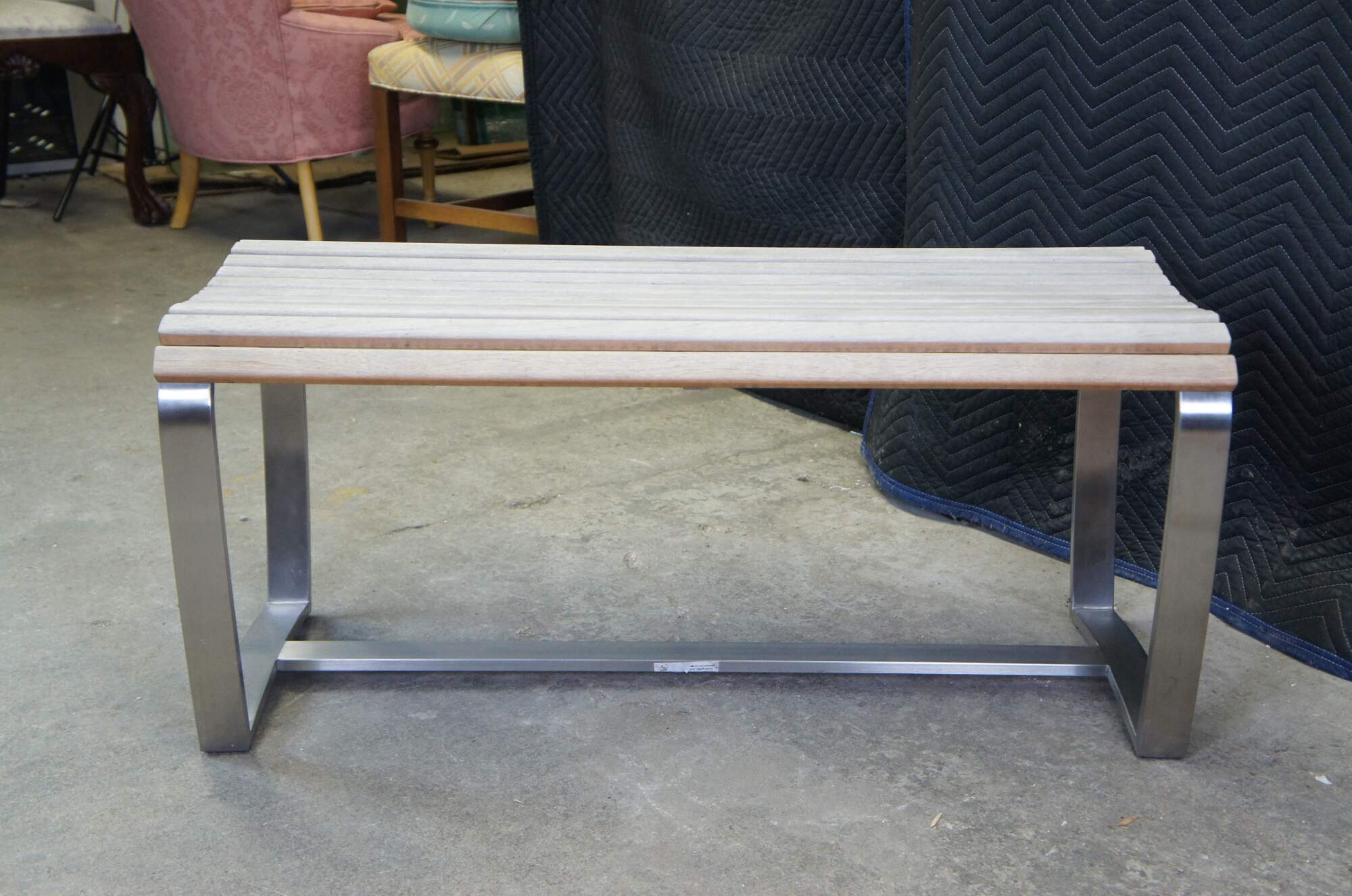 Sculpted in hand-rubbed teak and brushed stainless steel, the sinuous lines of Tres Chic redefine the allure of contemporary design. The recurring horizontal motif imparts a clean, sophisticated Pan Asian vibe to the collection.