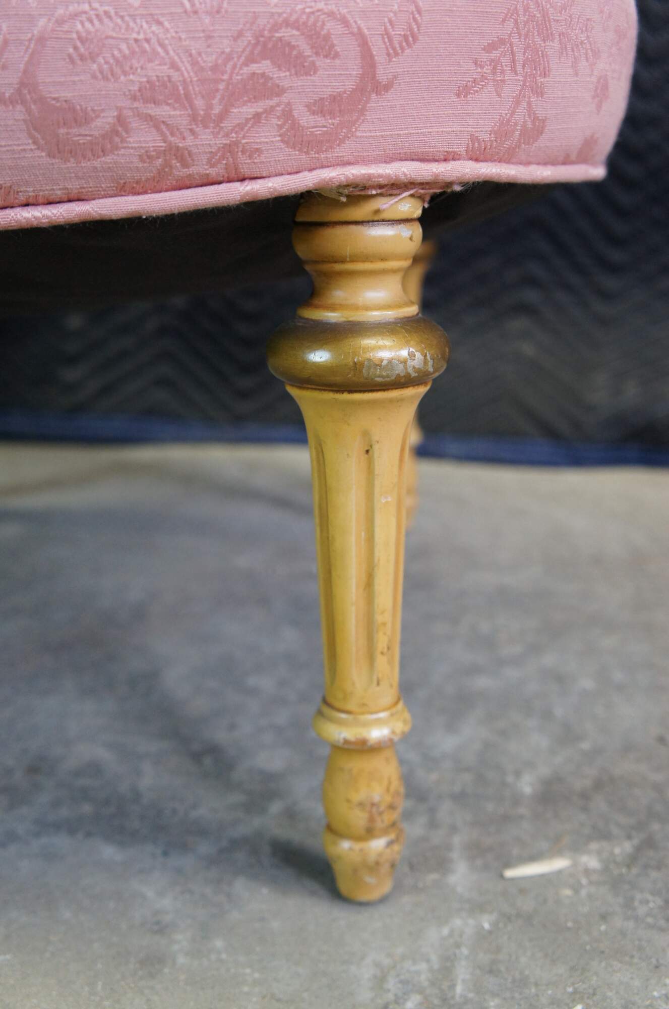 Antique Robert W Irwin French Provincial Channel Back Vanity Chair Pink Brocade
