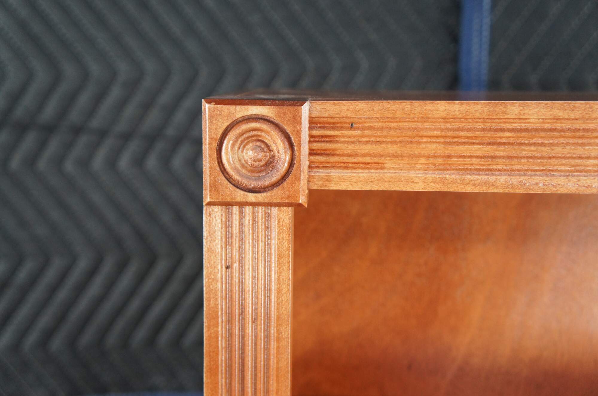 A vintage bookcase in Victorian manner. Tall and slender, finished in pine. Features seven adjustable shelves, fluted stiles and circular medallions.