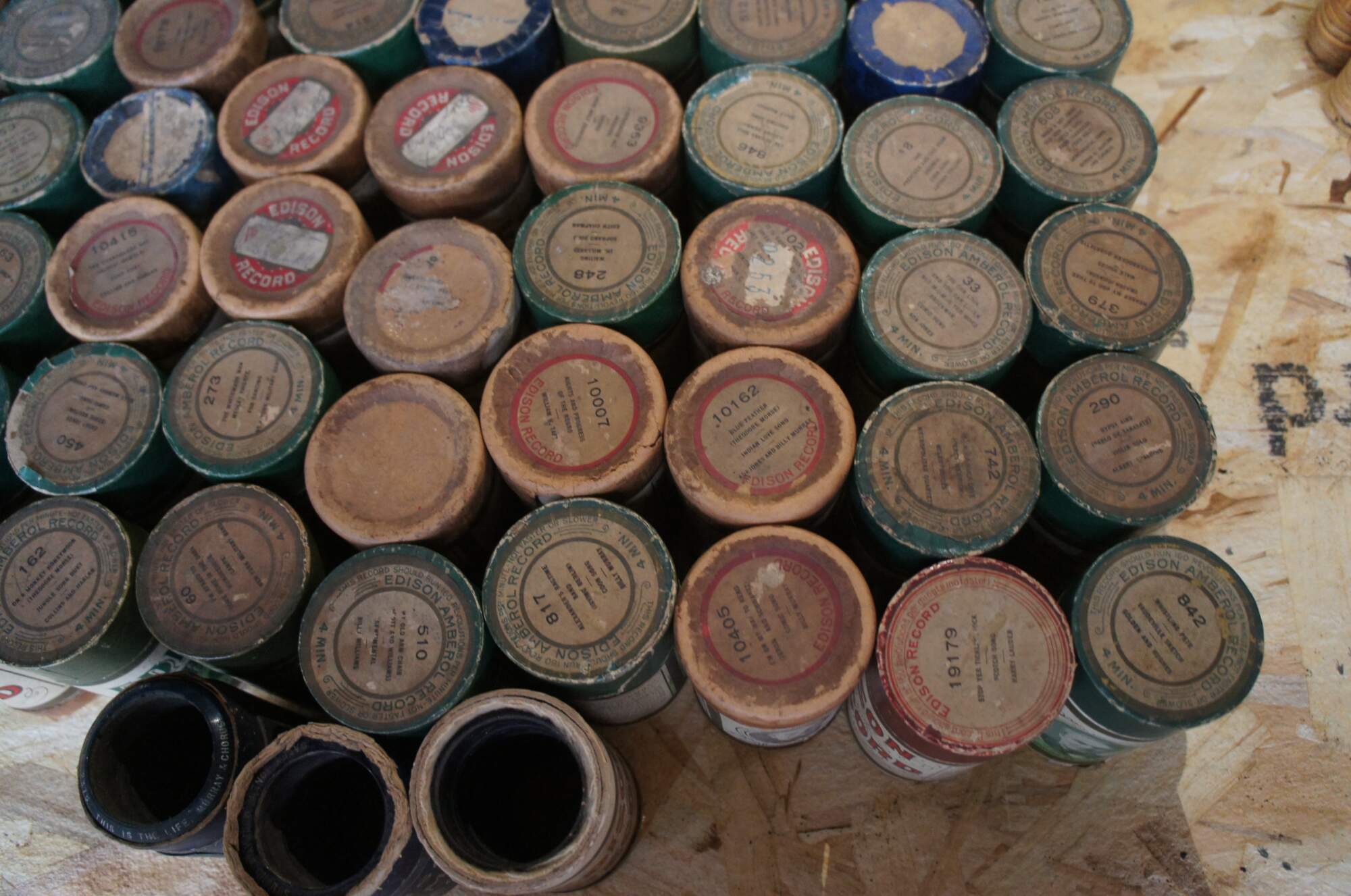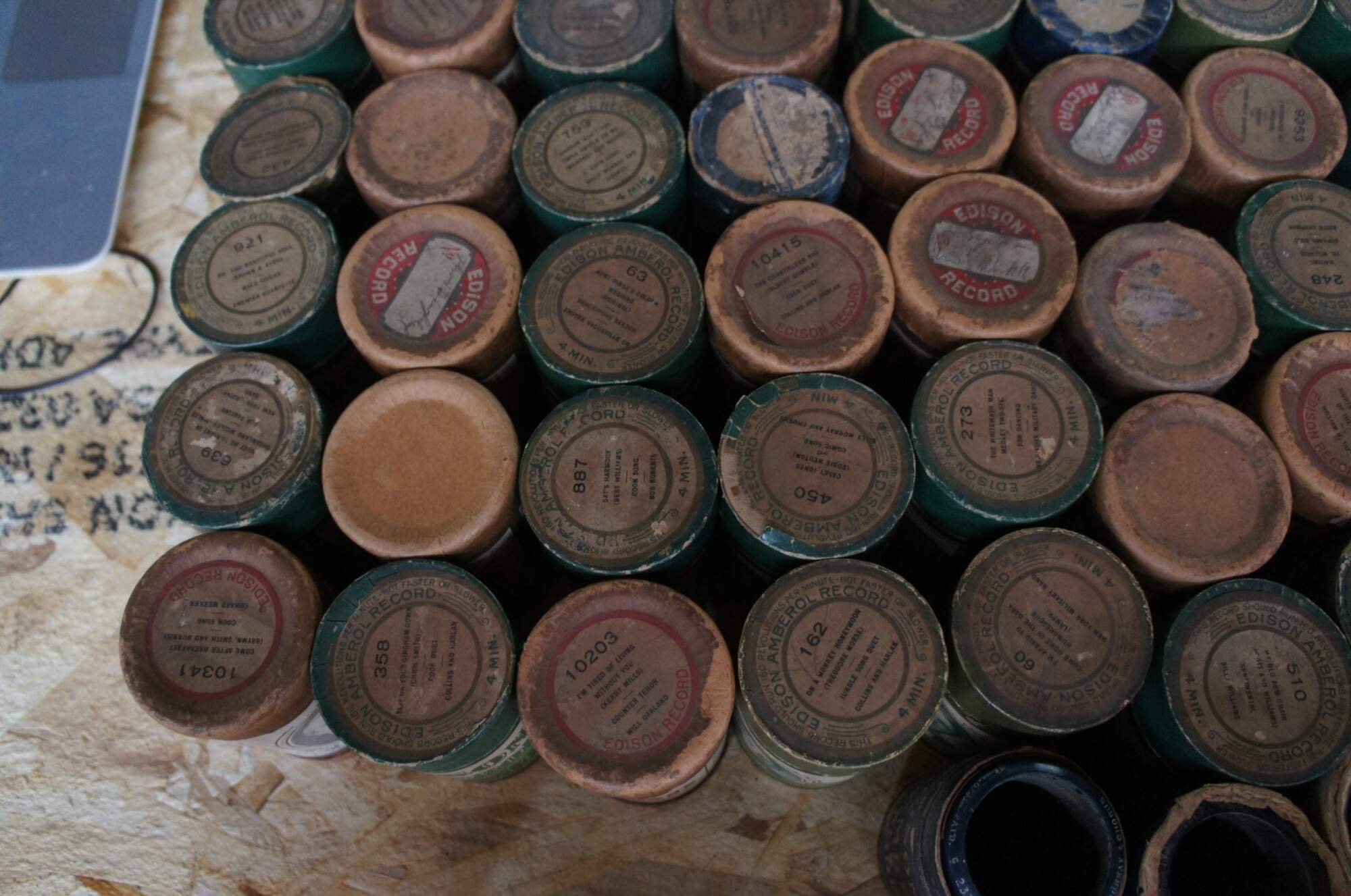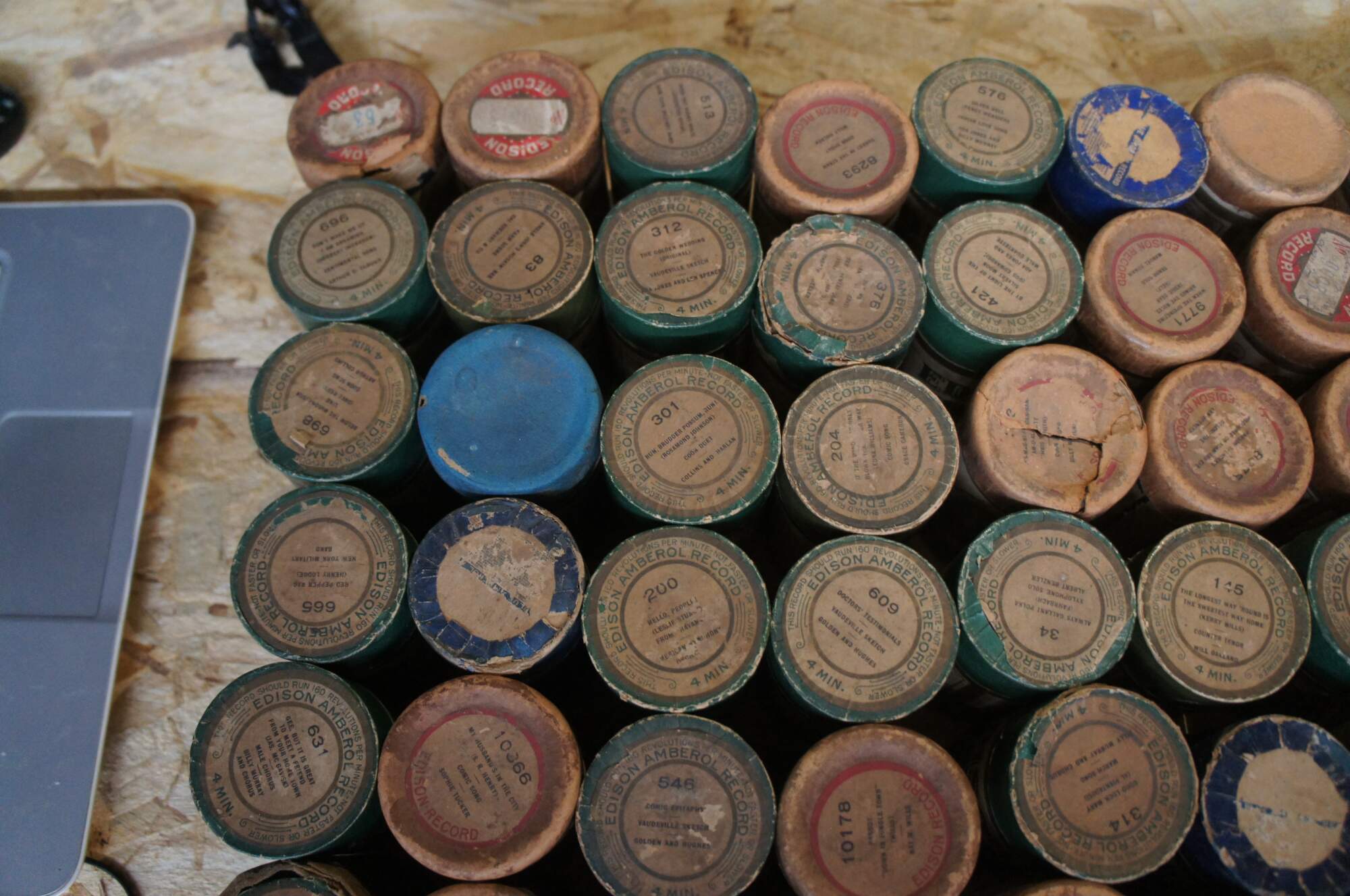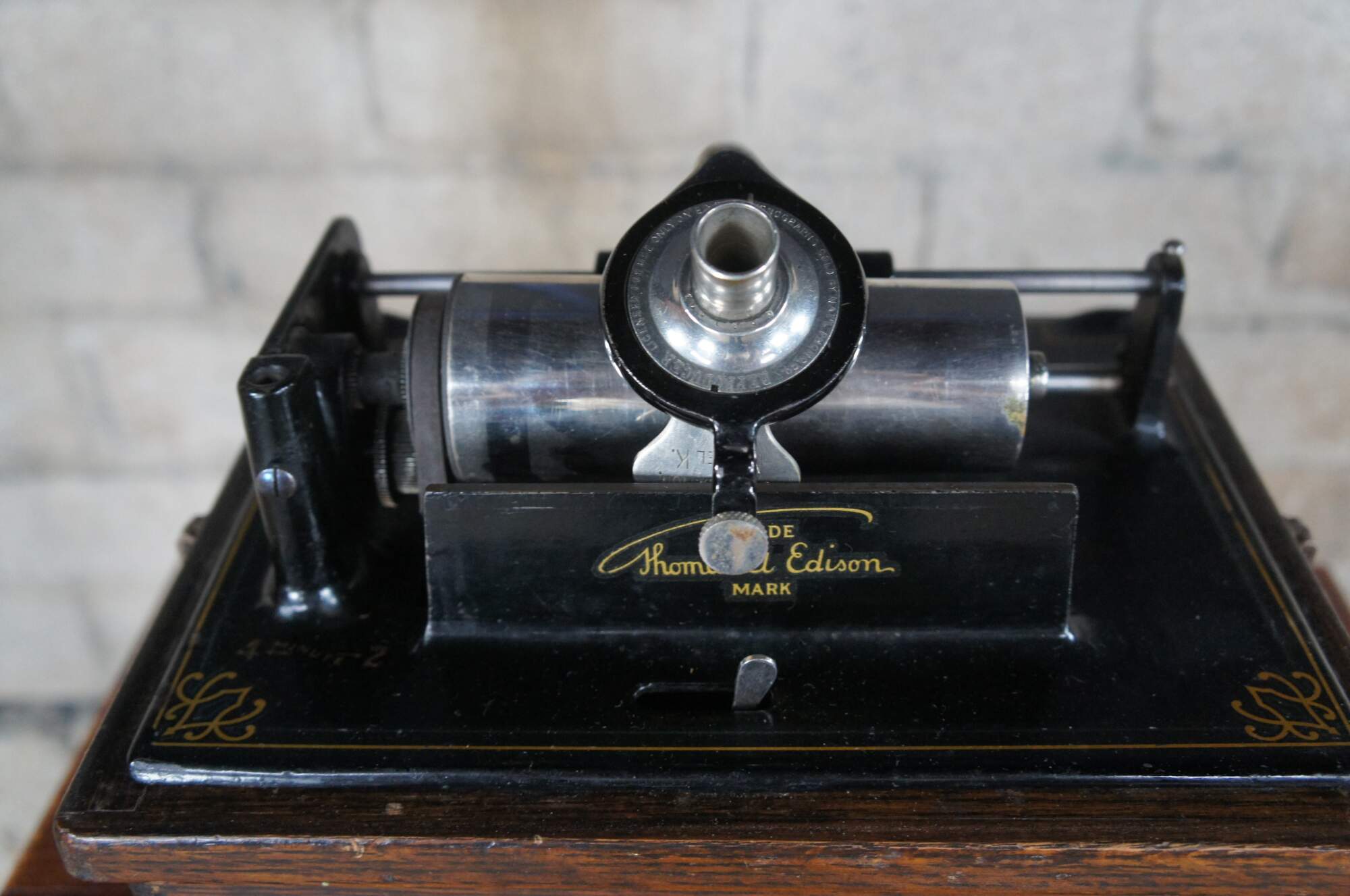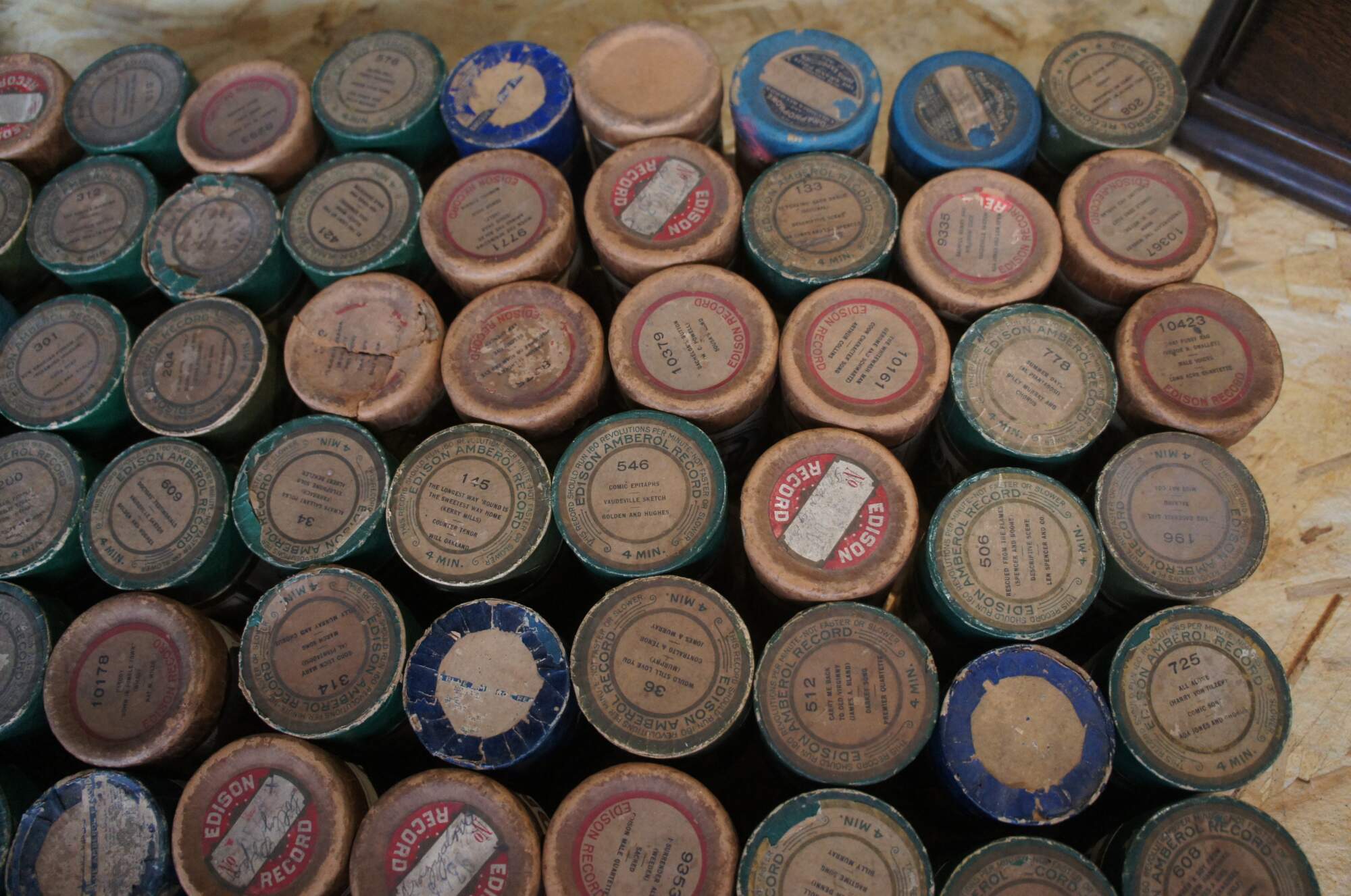 Good Antique Condition; Missing mount for horn. The male tip of the horn appears to be bent where it would connect to the phonograph receiver. Otherwise, unit is in working condition. Did not open or test all cylinders, some are brittle / broken. Majority are operable.