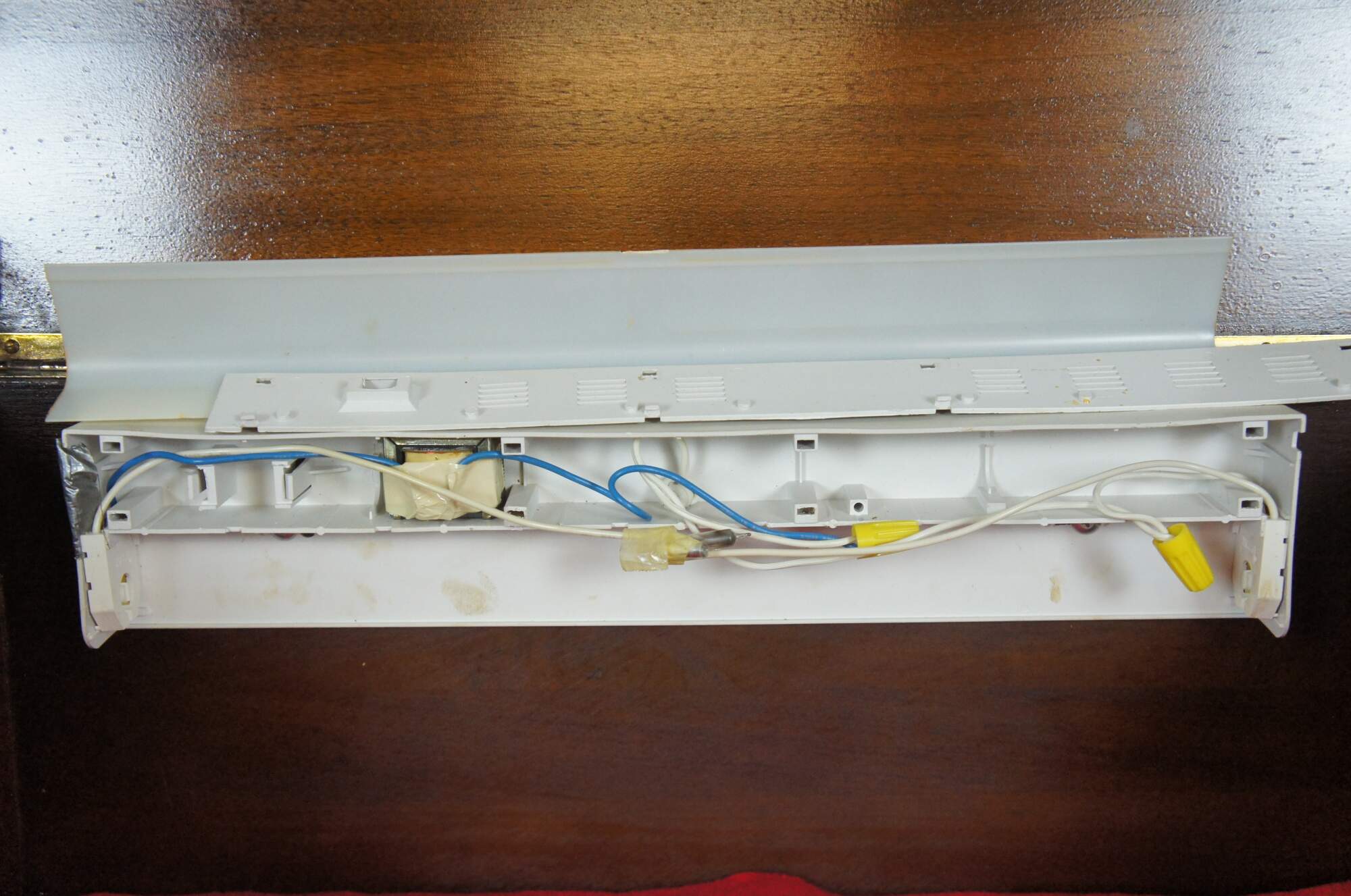 Good Overall – Marks and scrapes to finish, light needs rewiring, slide hinge slightly askew/does not slide smoothly