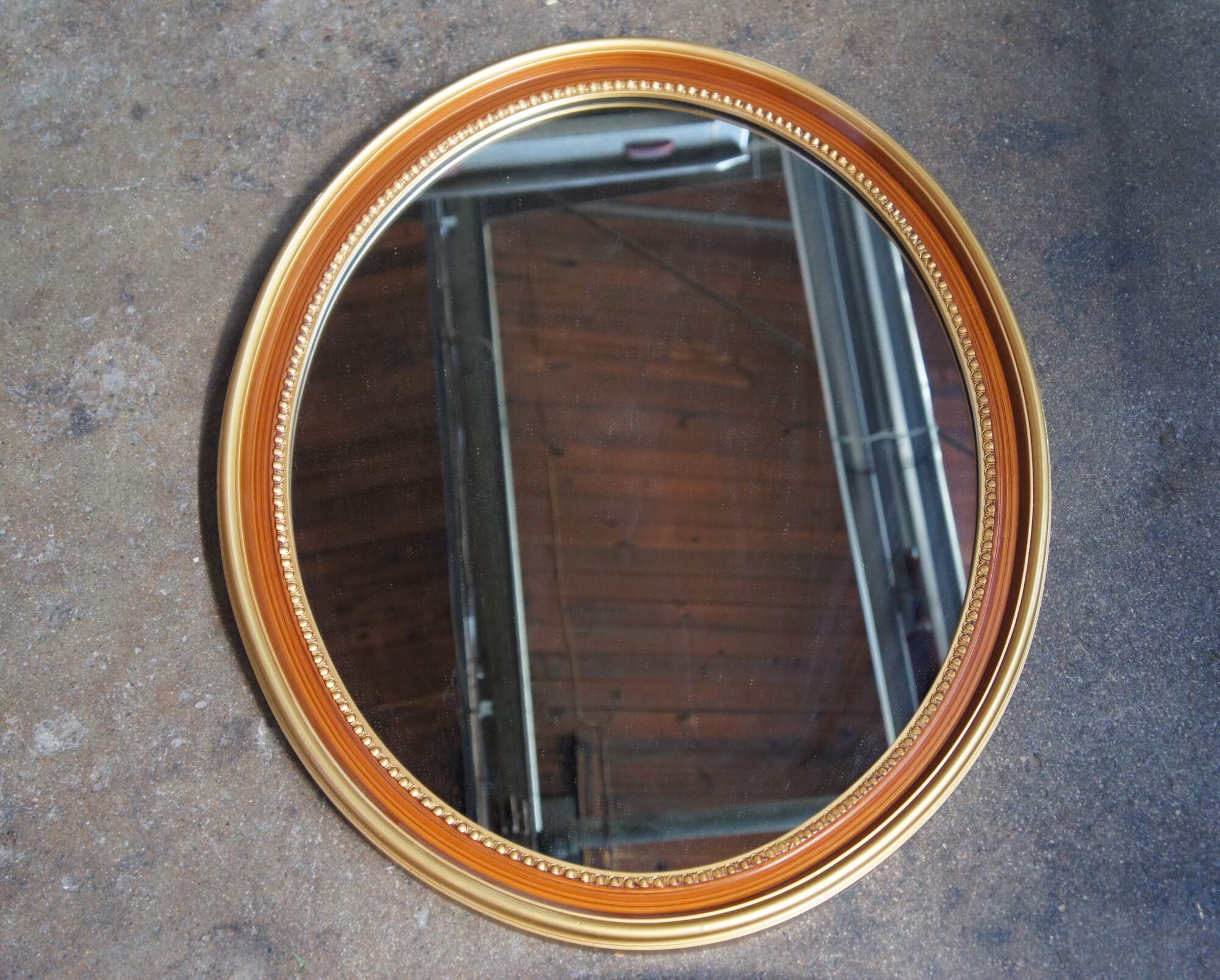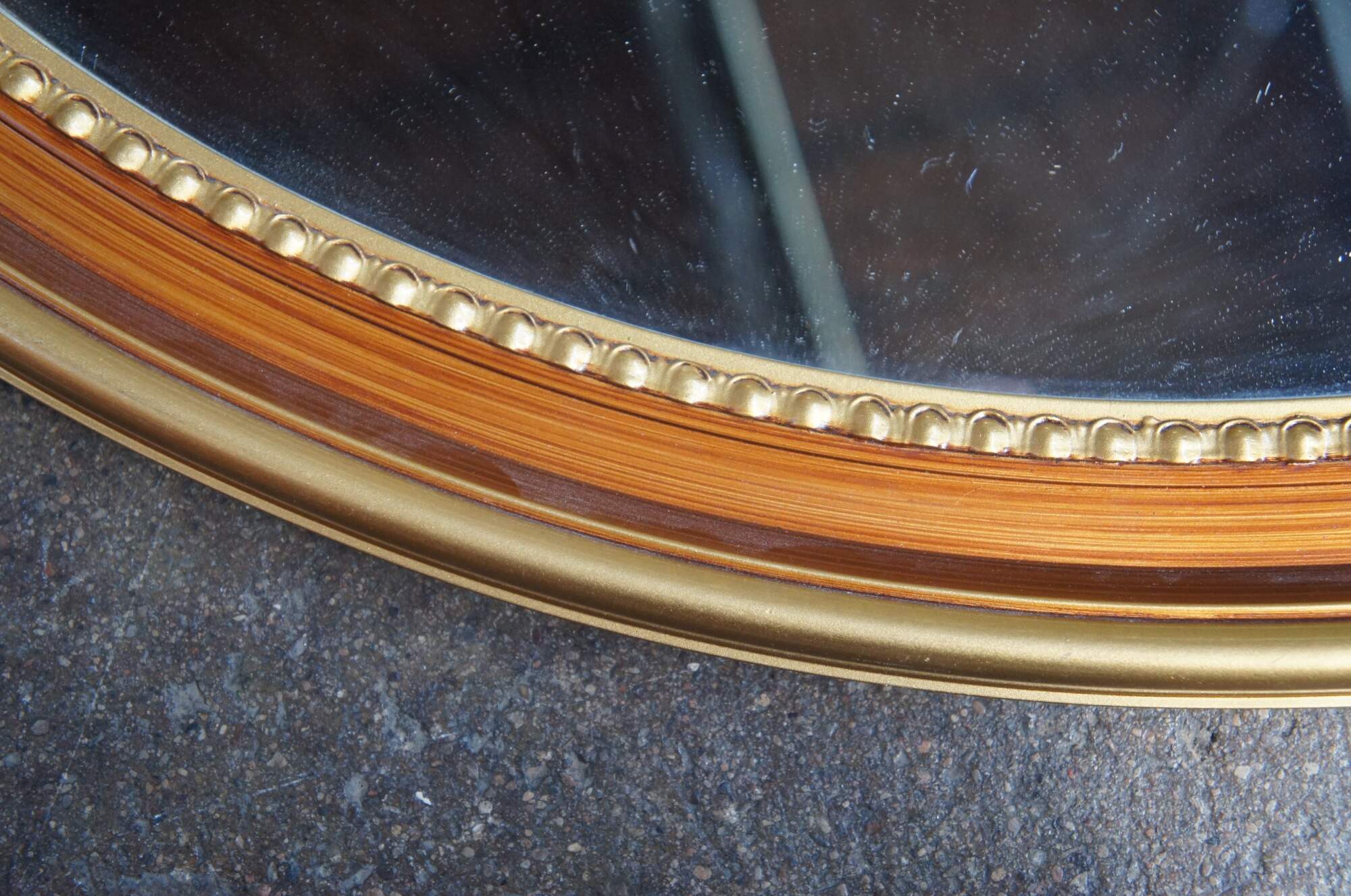 2 vintage oval wall or vanity mirrors featuring a painted grain with gold gilded and beaded accents.